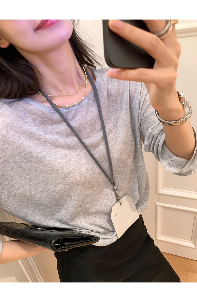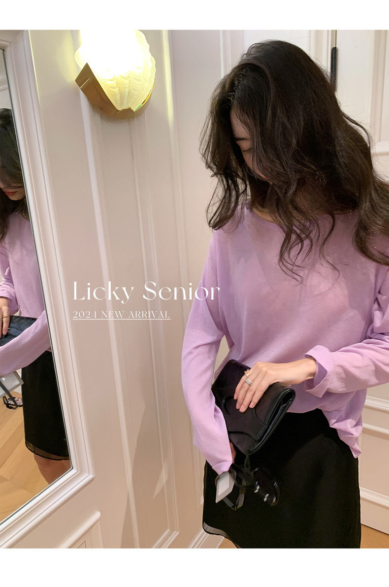 한국식 콘트라스트 텐셀 니트 셔츠 여성용 긴팔 티셔츠 느슨한 얇은 마이크로 투명 종이 셔츠스토어 가기