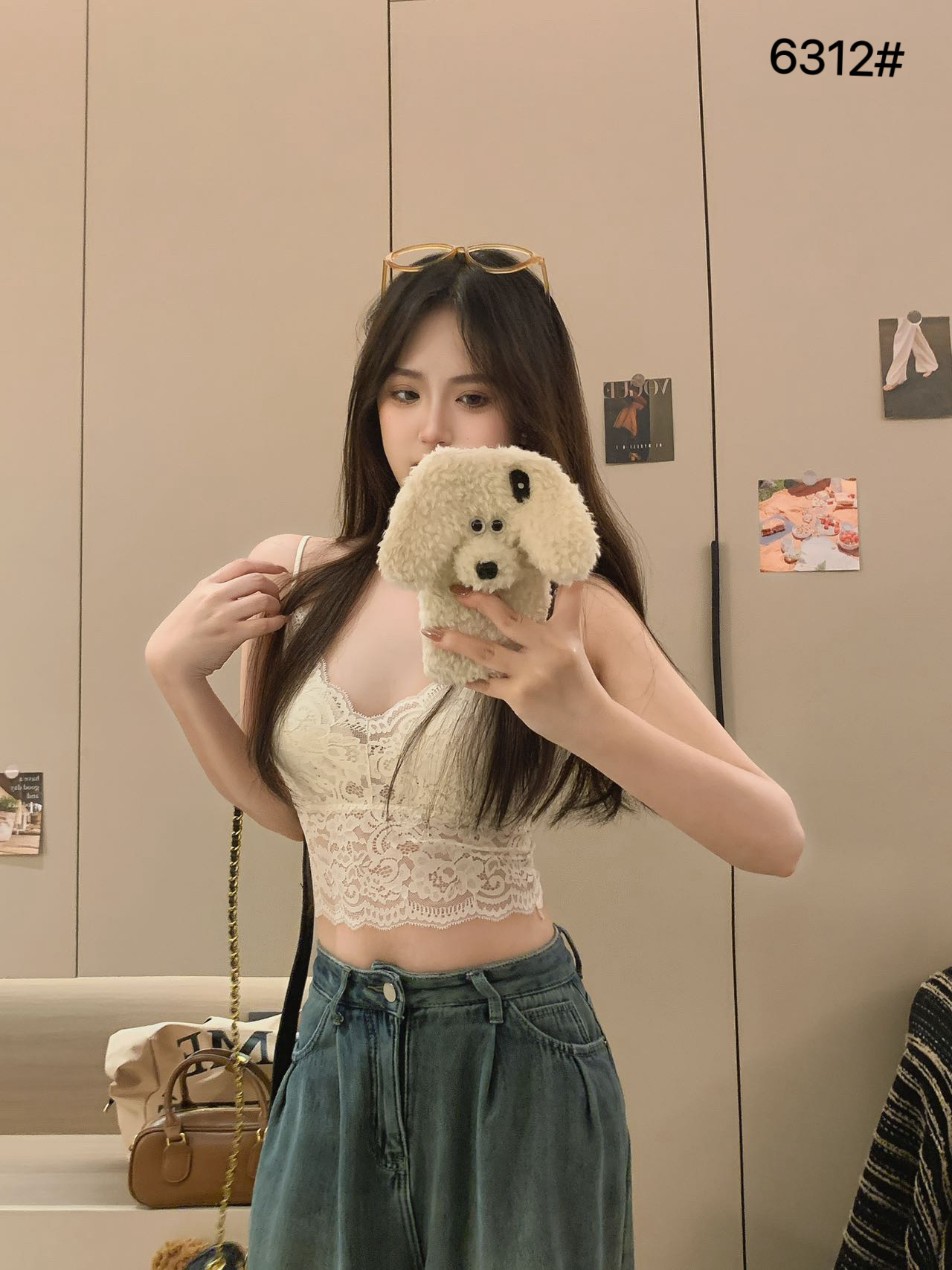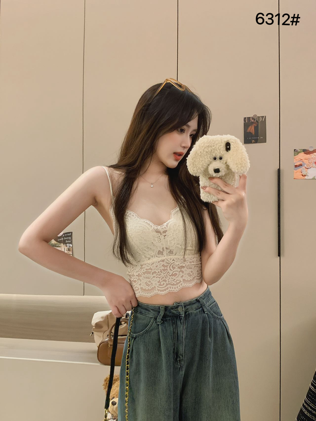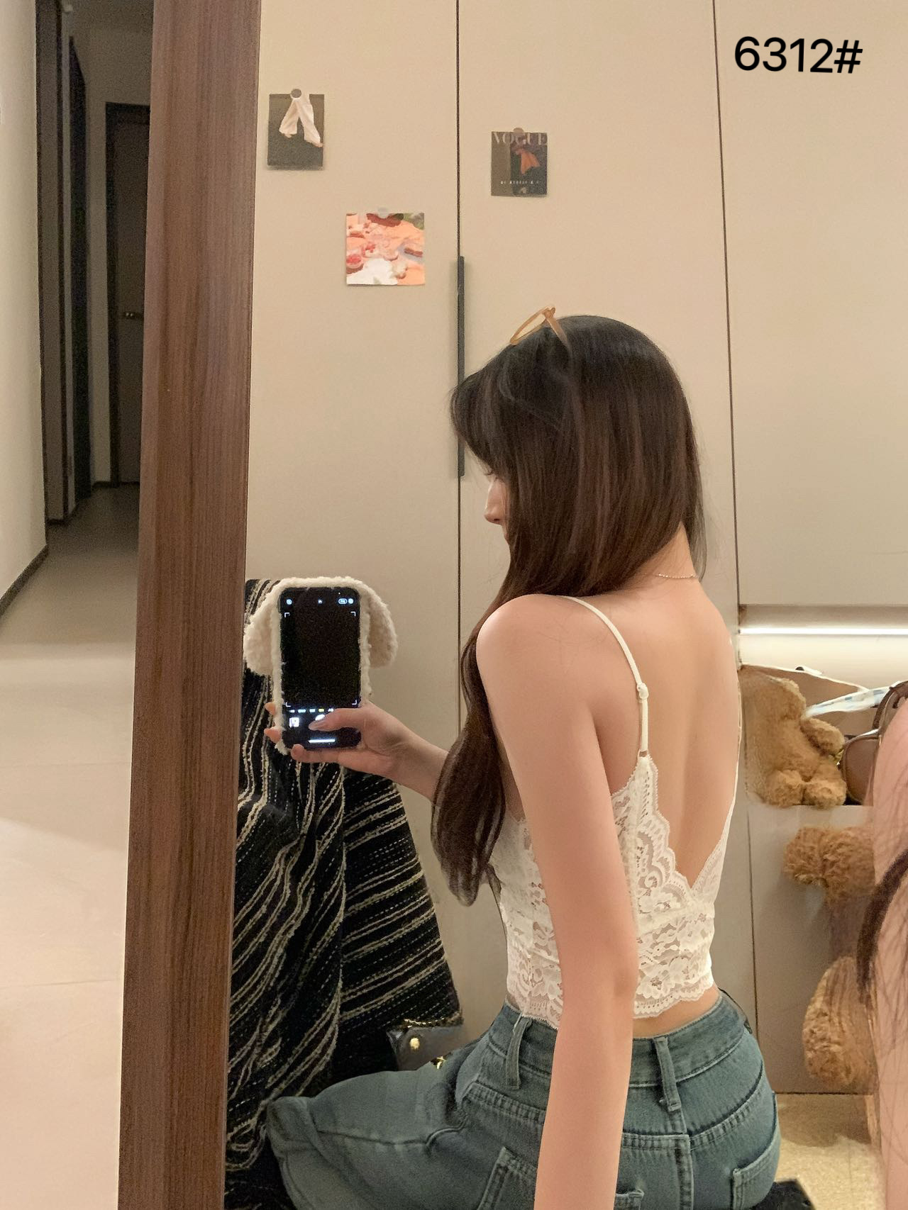 6312 라이브 방송 새로운 섹시한 레이스 조끼 여성용 와이어 프리 딥 V 통기성 슬링 아름다운 등 도매스토어 가기