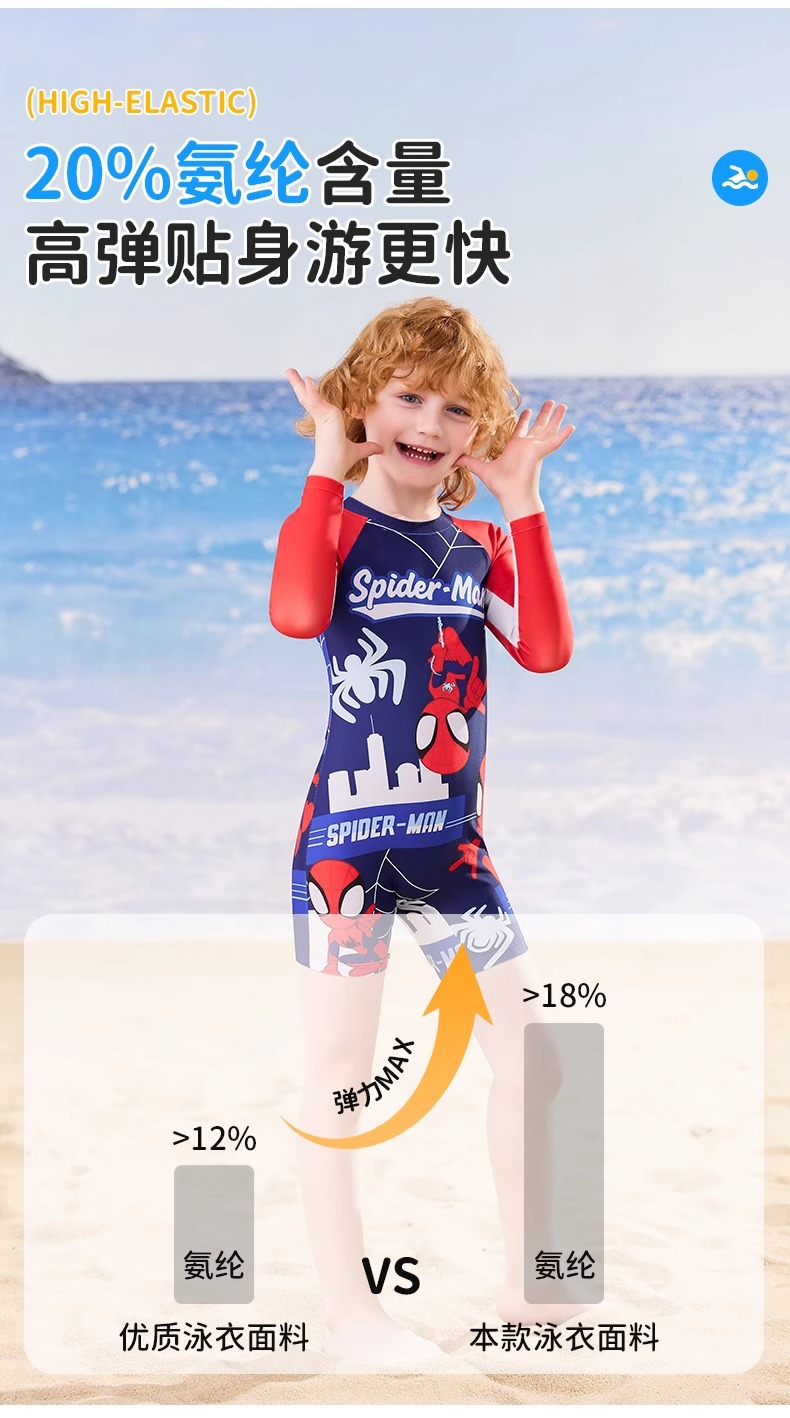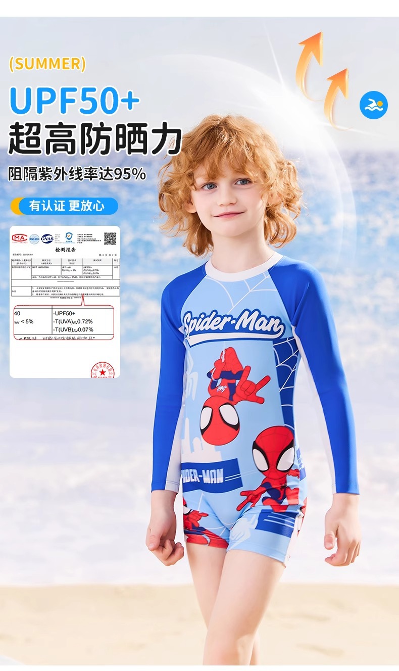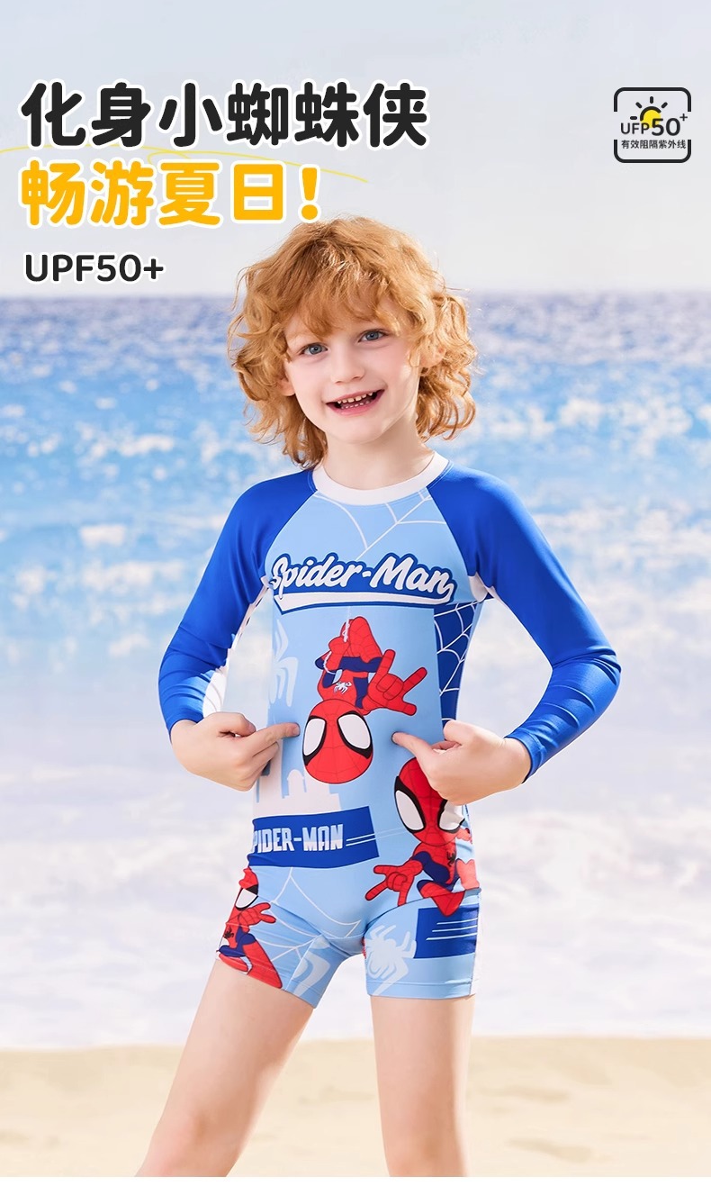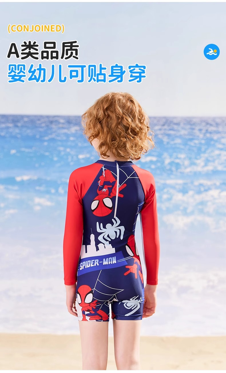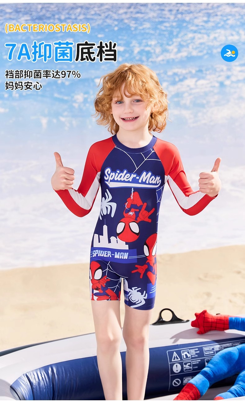 디즈니 어린이 수영복 소년 원피스 긴팔 속건성 자외선 차단제 2025 새로운 중대형 어린이 소년 및 청소년 수영