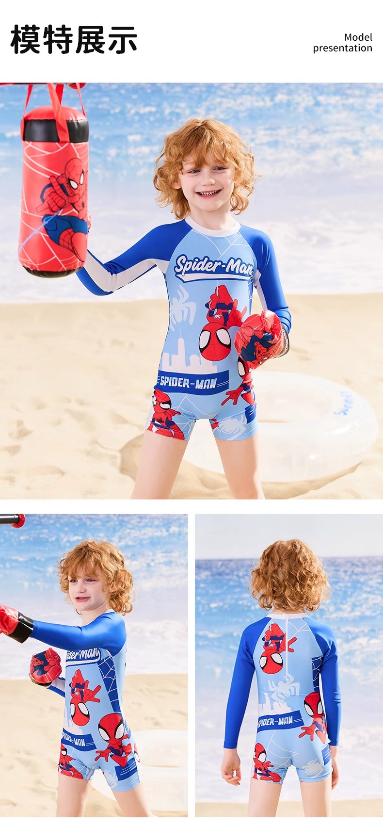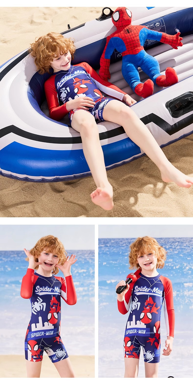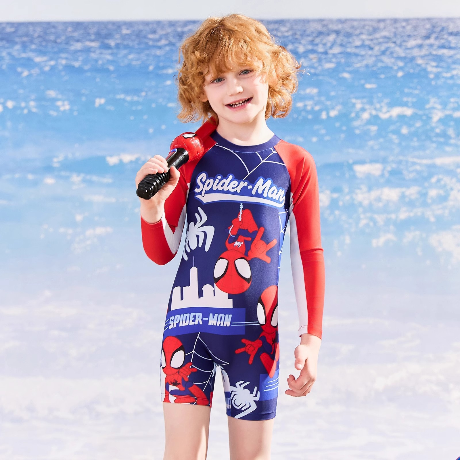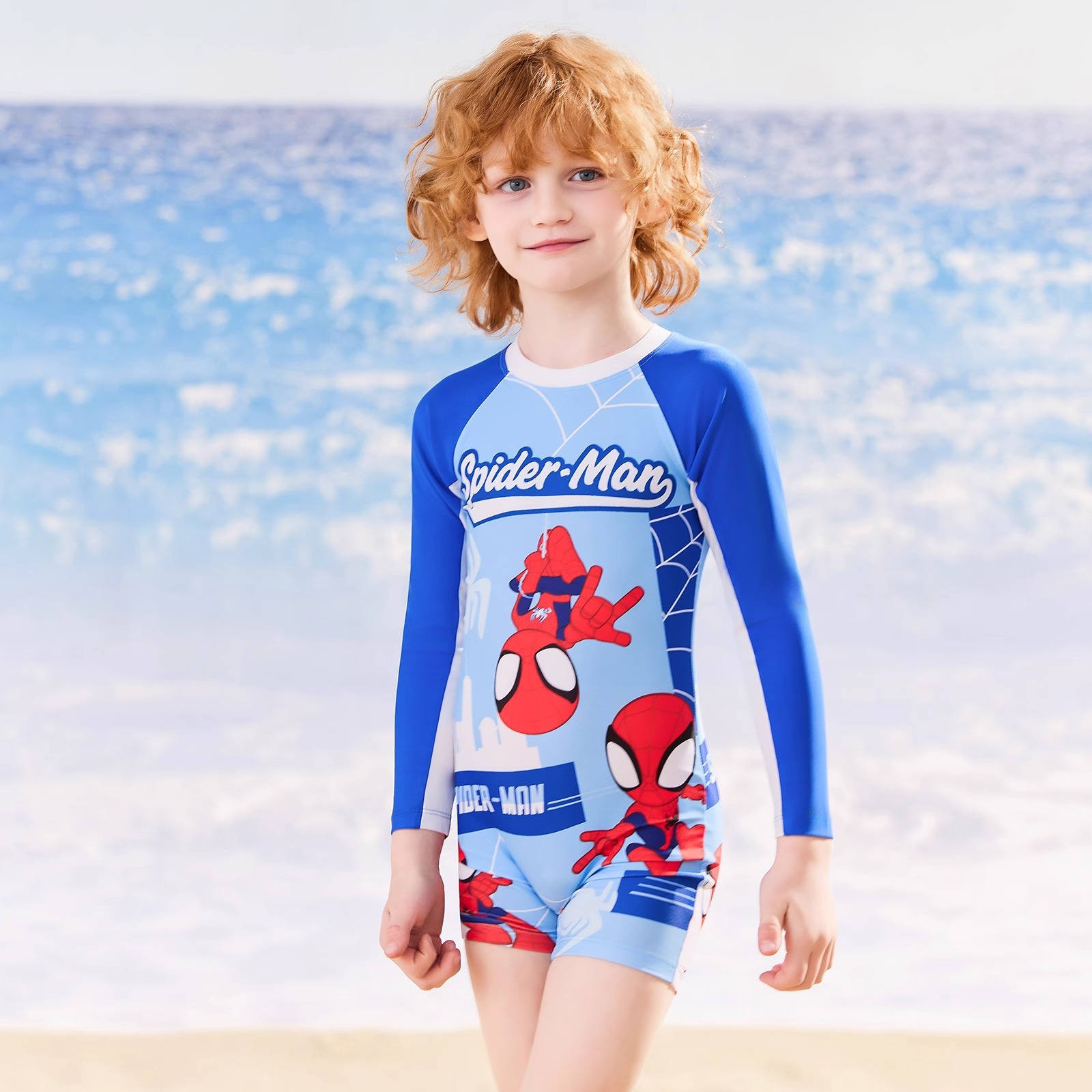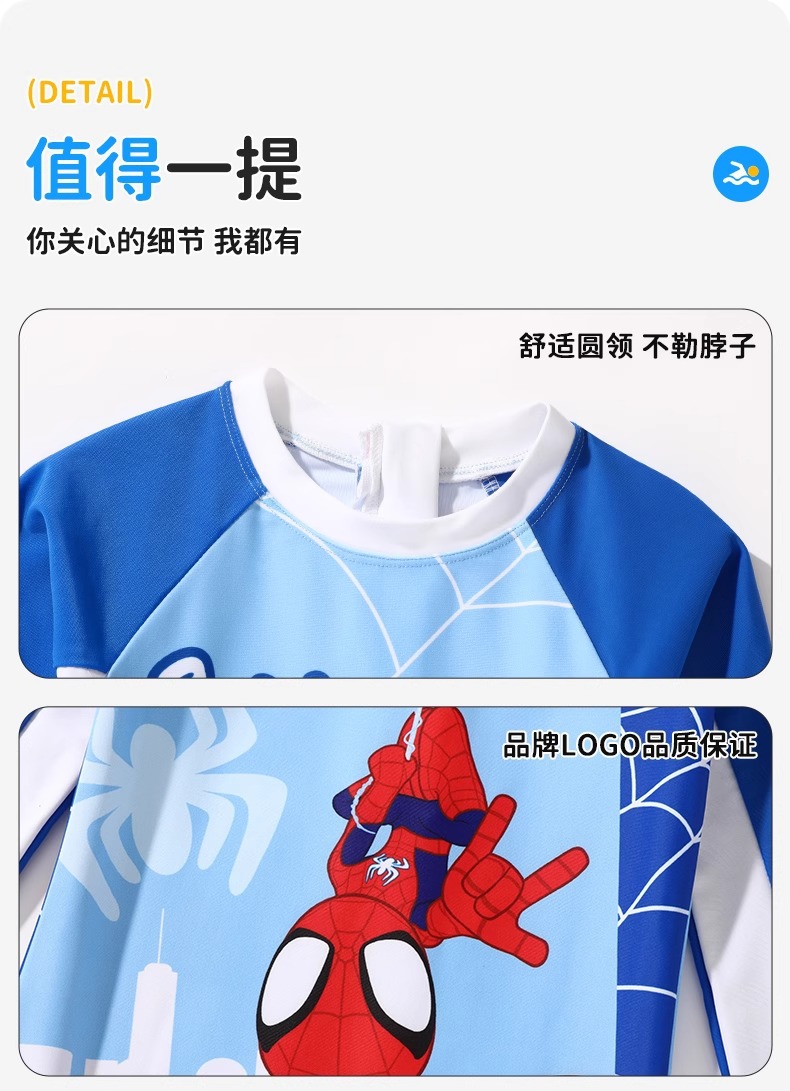 디즈니 어린이 수영복 소년 원피스 긴팔 속건성 자외선 차단제 2025 새로운 중대형 어린이 소년 및 청소년 수영