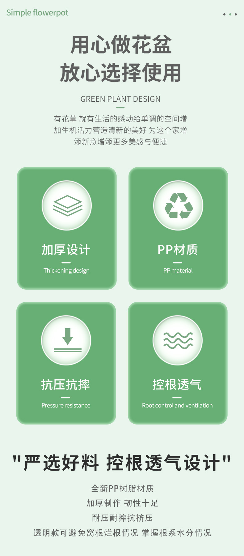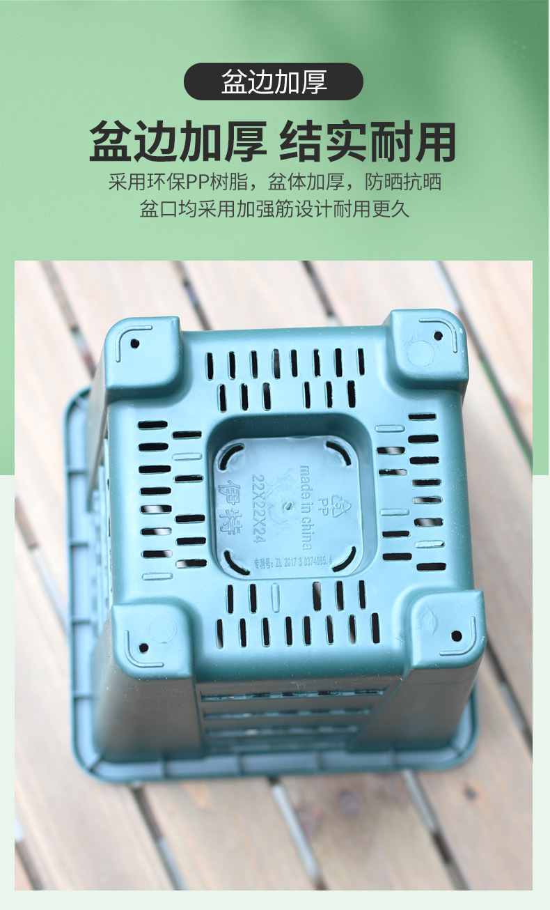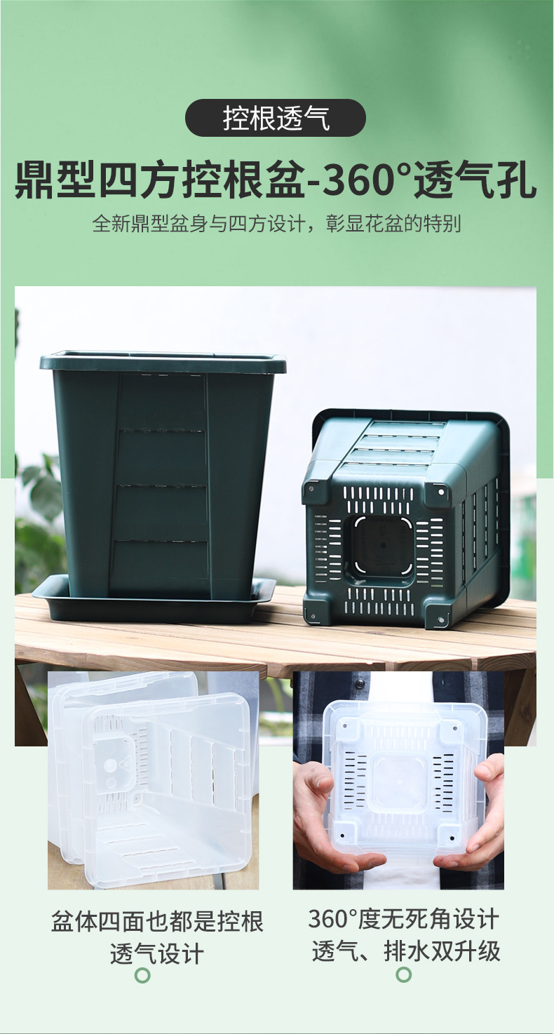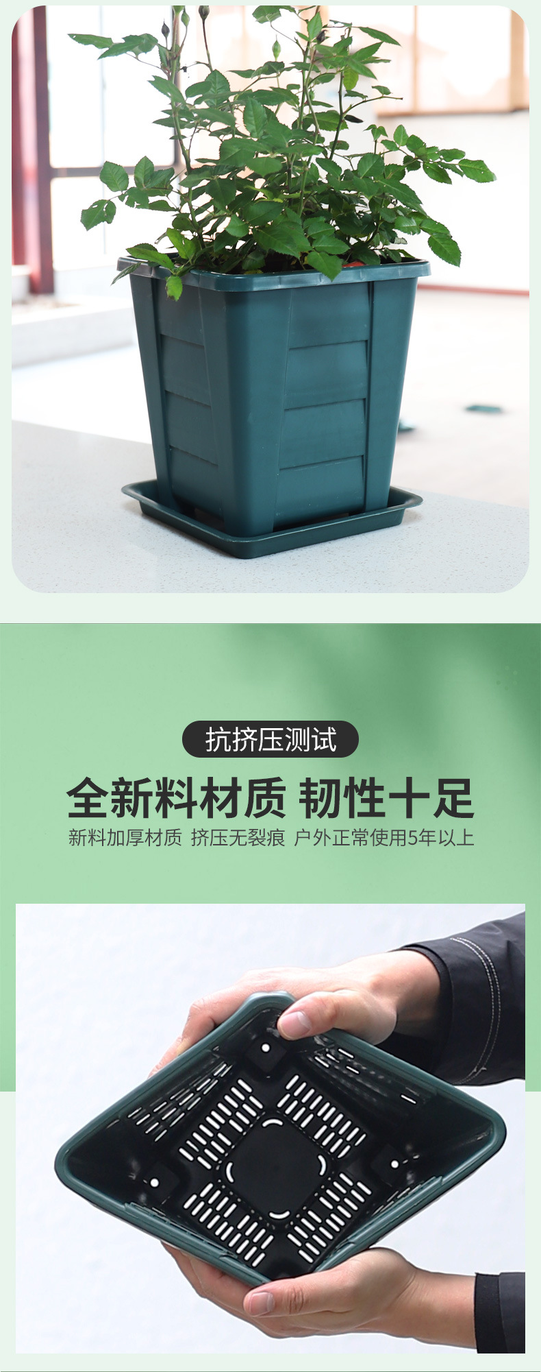 두꺼운 수지 친환경 사각형 입 다공성 통기성 배수 뿌리 제어 화분 발코니 심기 다육 장미 녹색 식물 화분
