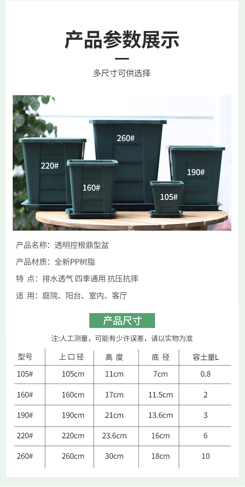 두꺼운 수지 친환경 사각형 입 다공성 통기성 배수 뿌리 제어 화분 발코니 심기 다육 장미 녹색 식물 화분스토어 가기
