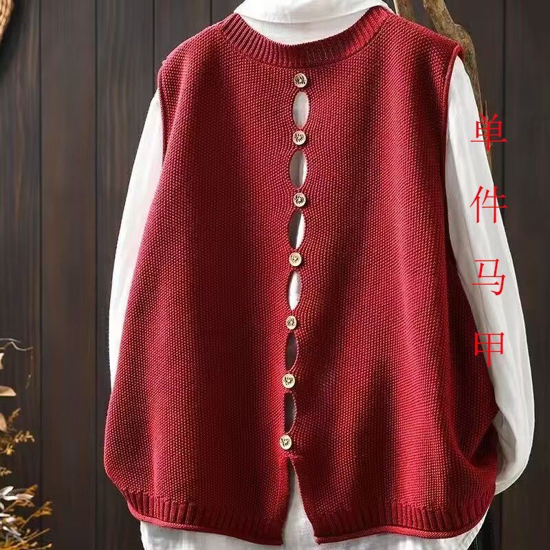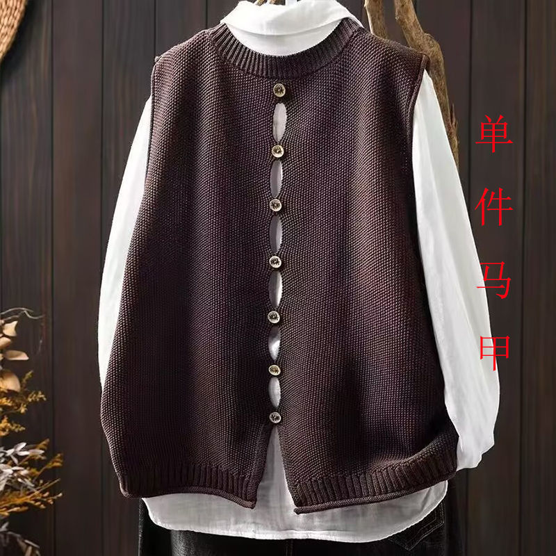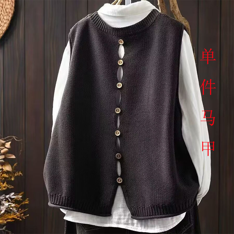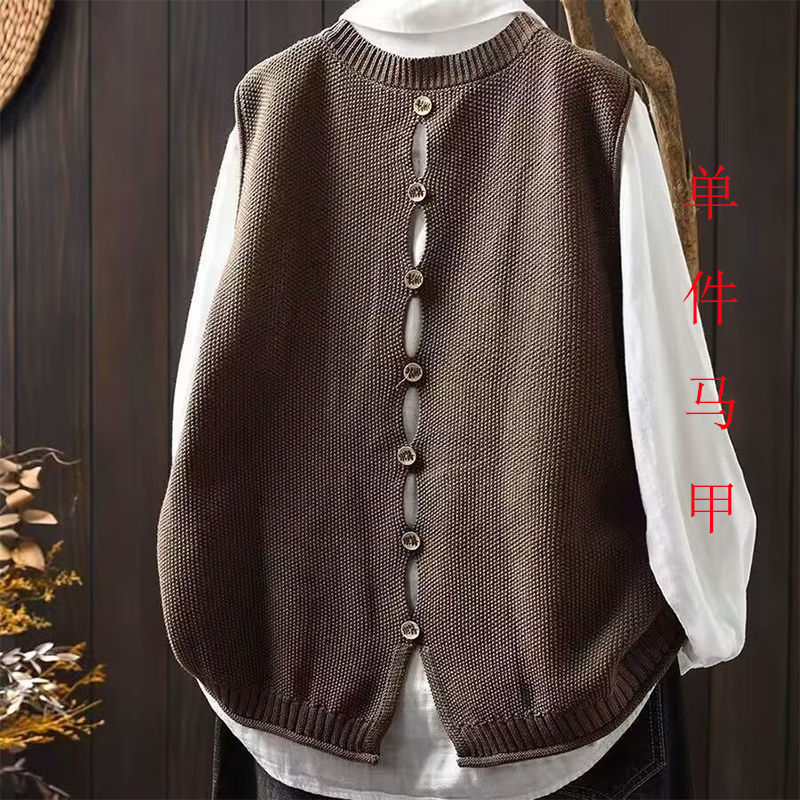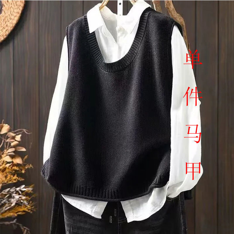 봄과 가을 겉옷 라운드 넥 솔리드 컬러 니트 조끼 여성 복고풍 느슨한 민소매 조끼 레이어 짧은 스웨터 조끼스토어 가기