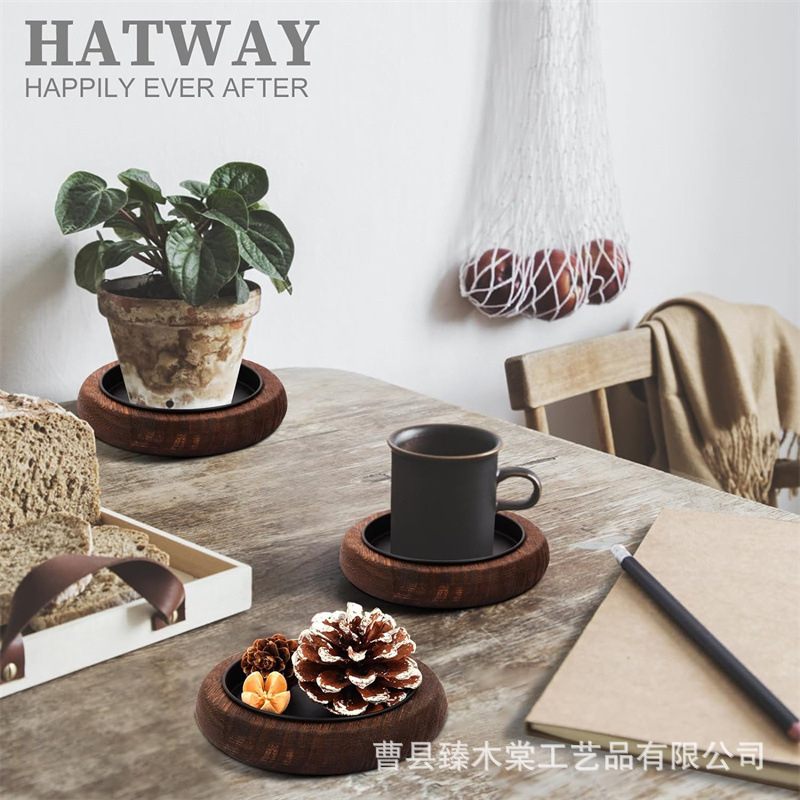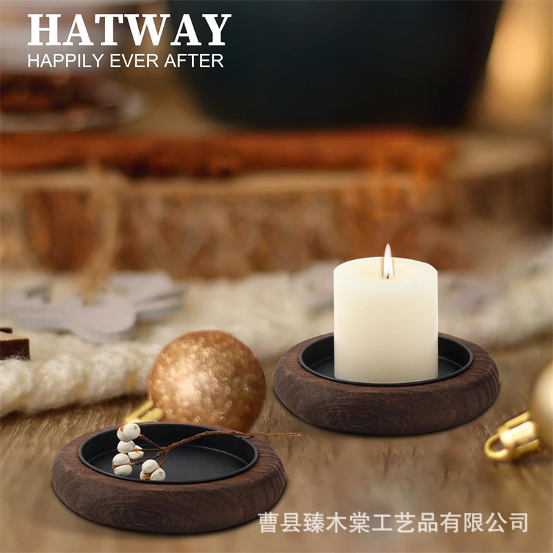 크리 에이 티브 단단한 나무 촛불베이스 거실 테이블 촛대 홀더 트레이 라운드 워터 컵 베이스 장식 장식품