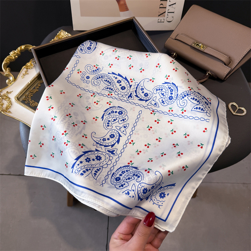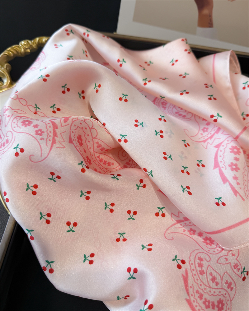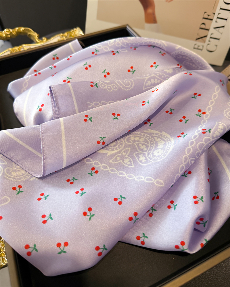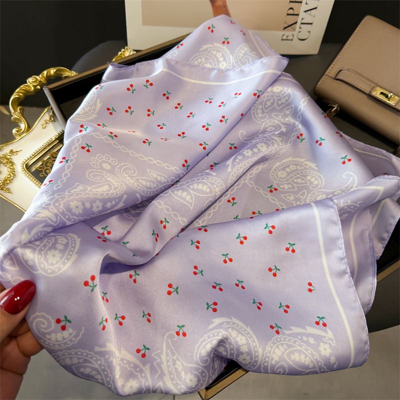 보라색 스카프 체리 꿈 인쇄 실크 스카프 광장 스카프 고급 감각 목도리 태양 보호 목 작은 광장 스카프 여성용 스카프