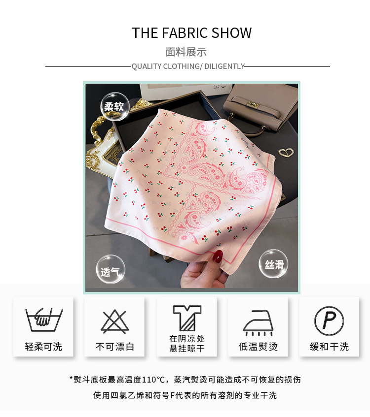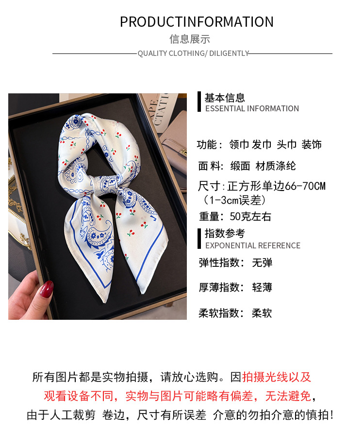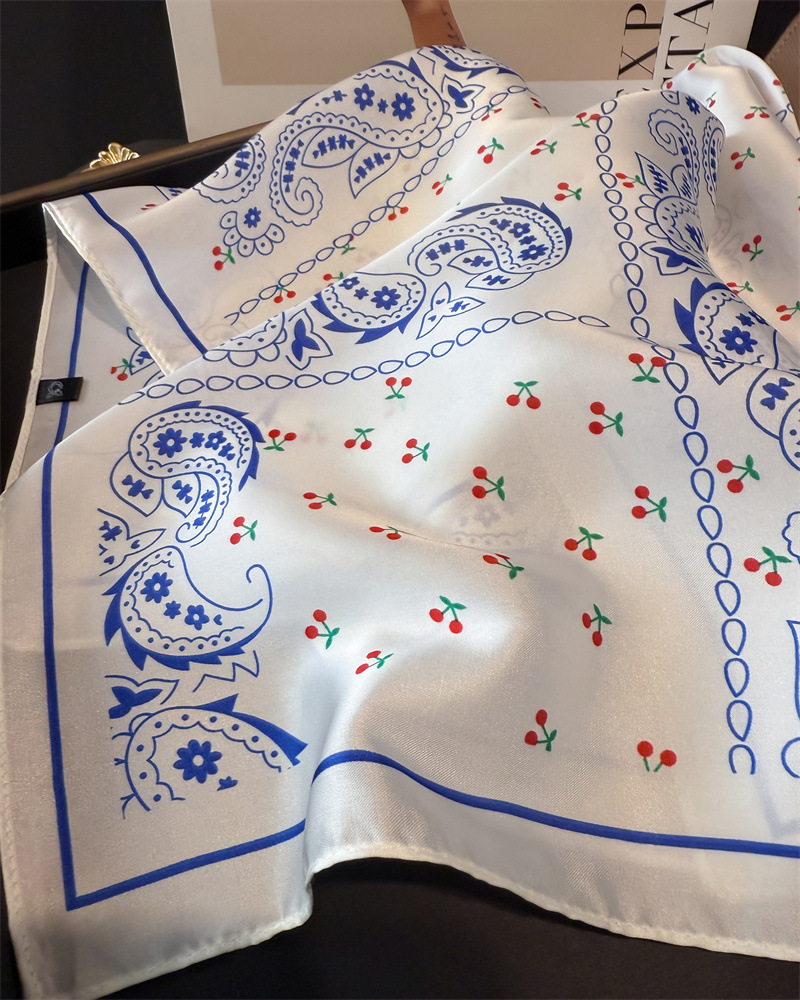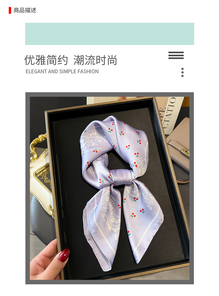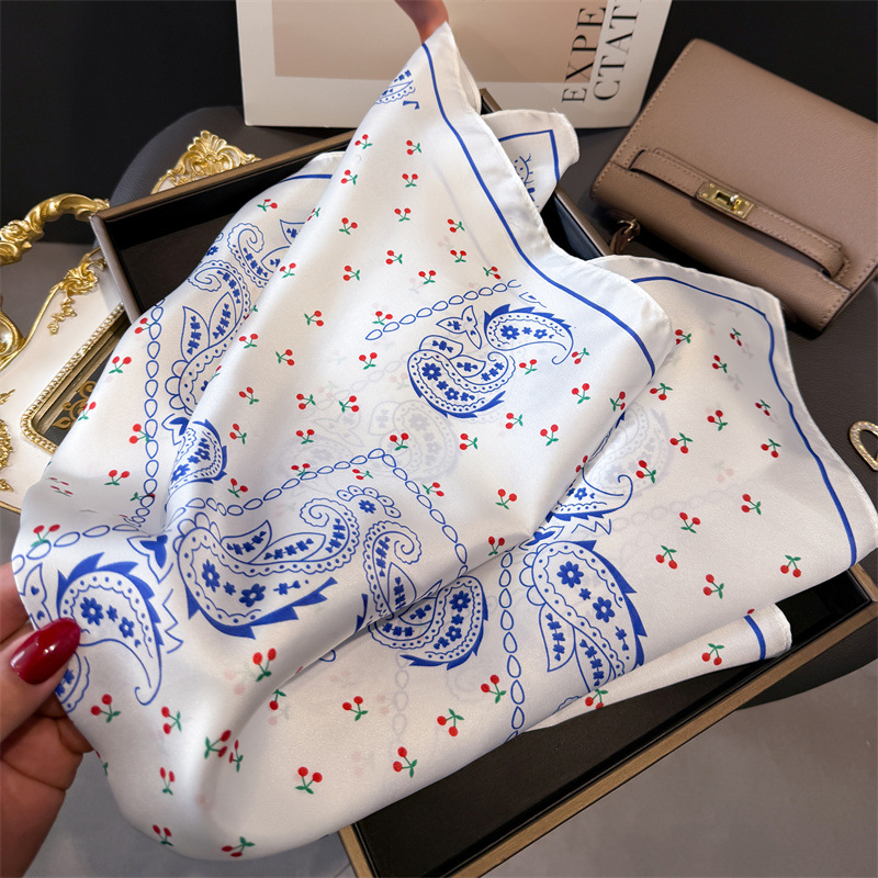 보라색 스카프 체리 꿈 인쇄 실크 스카프 광장 스카프 고급 감각 목도리 태양 보호 목 작은 광장 스카프 여성용 스카프