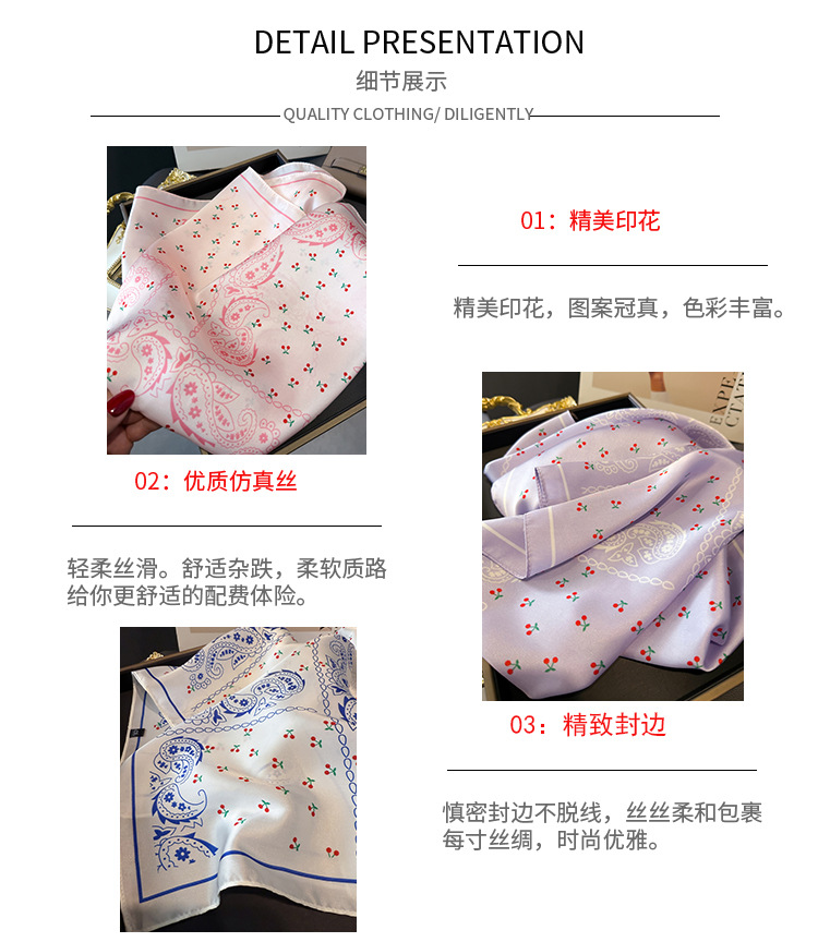 보라색 스카프 체리 꿈 인쇄 실크 스카프 광장 스카프 고급 감각 목도리 태양 보호 목 작은 광장 스카프 여성용 스카프스토어 가기
