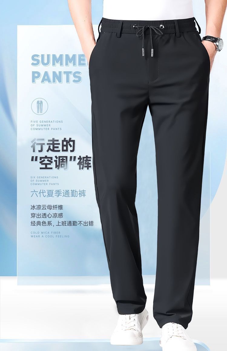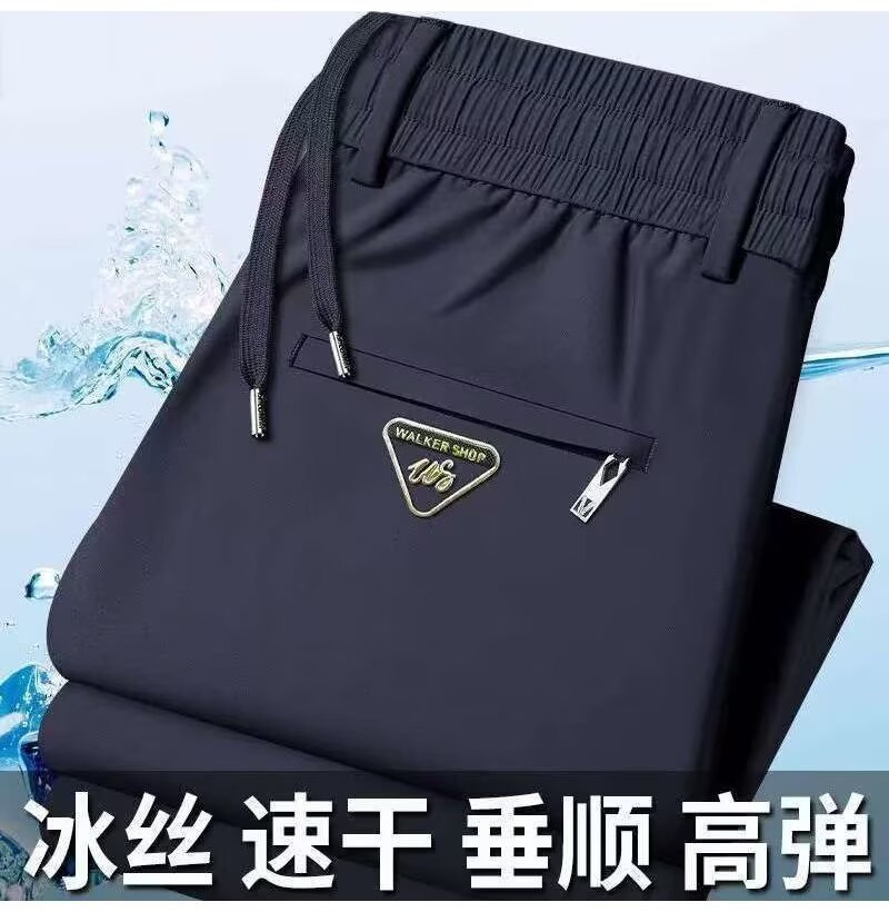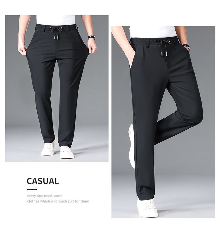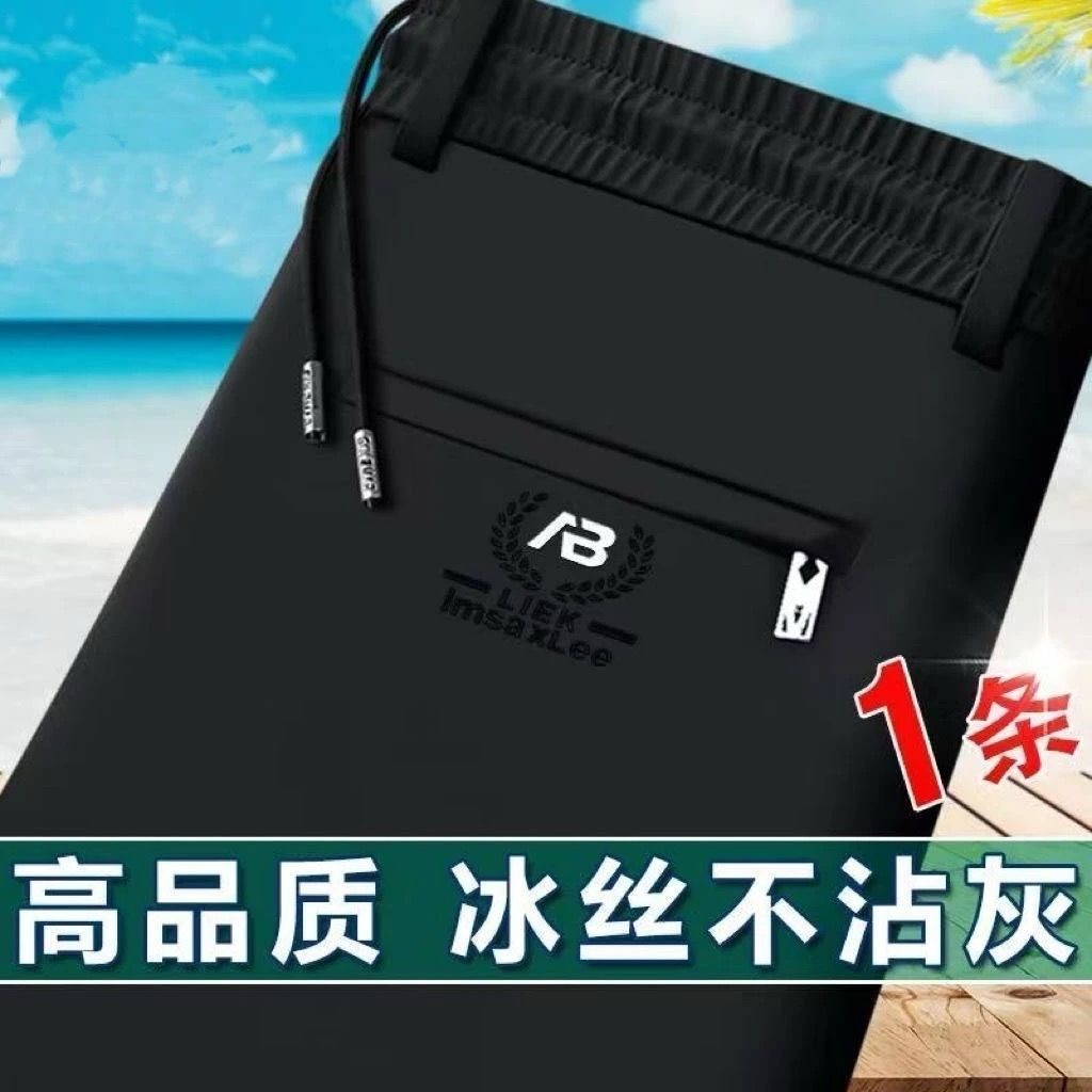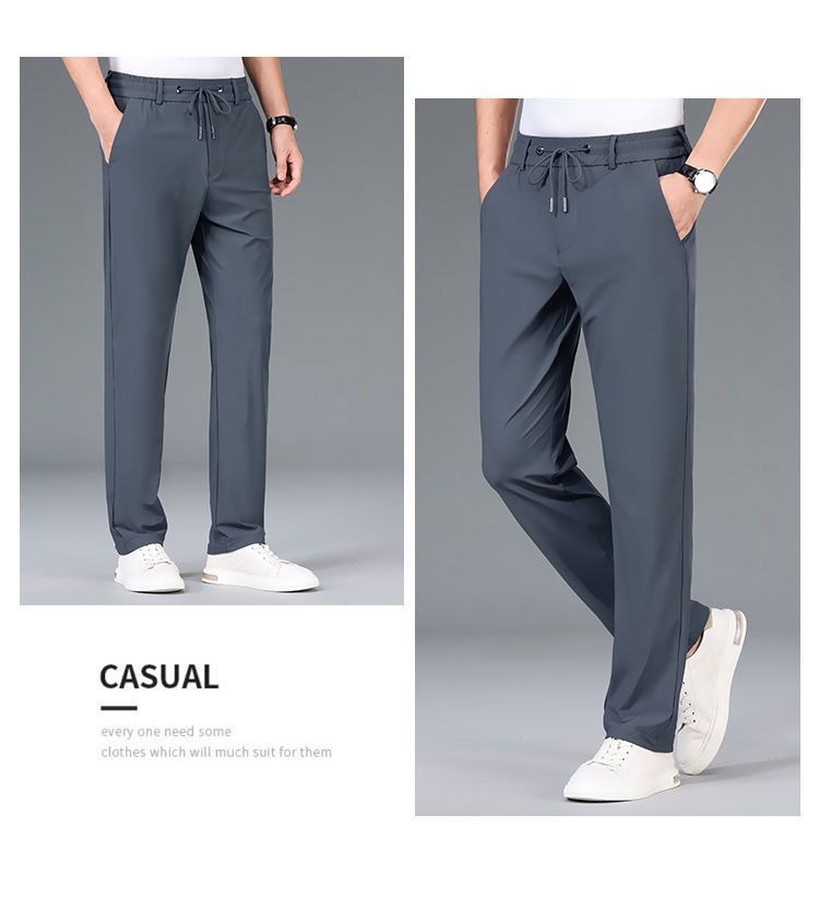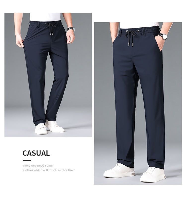 아이스 실크 캐주얼 바지 남성 여름 얇은 대형 느슨한 통기성 스트레이트 비즈니스 바지 탄성 속건 스포츠 바지스토어 가기