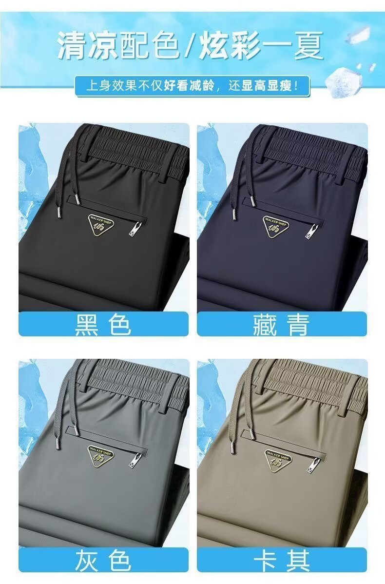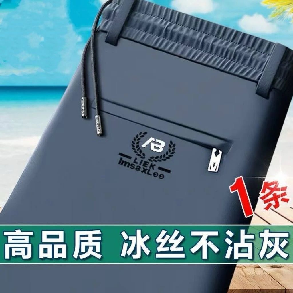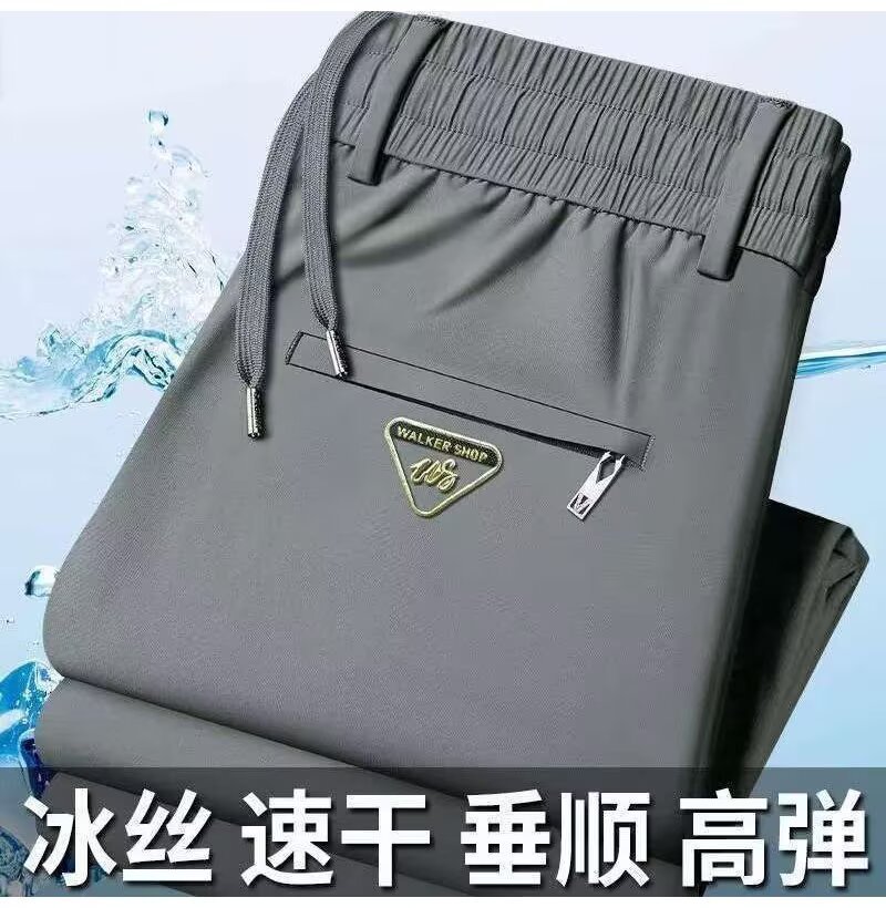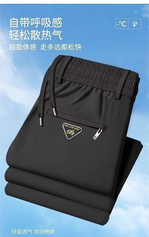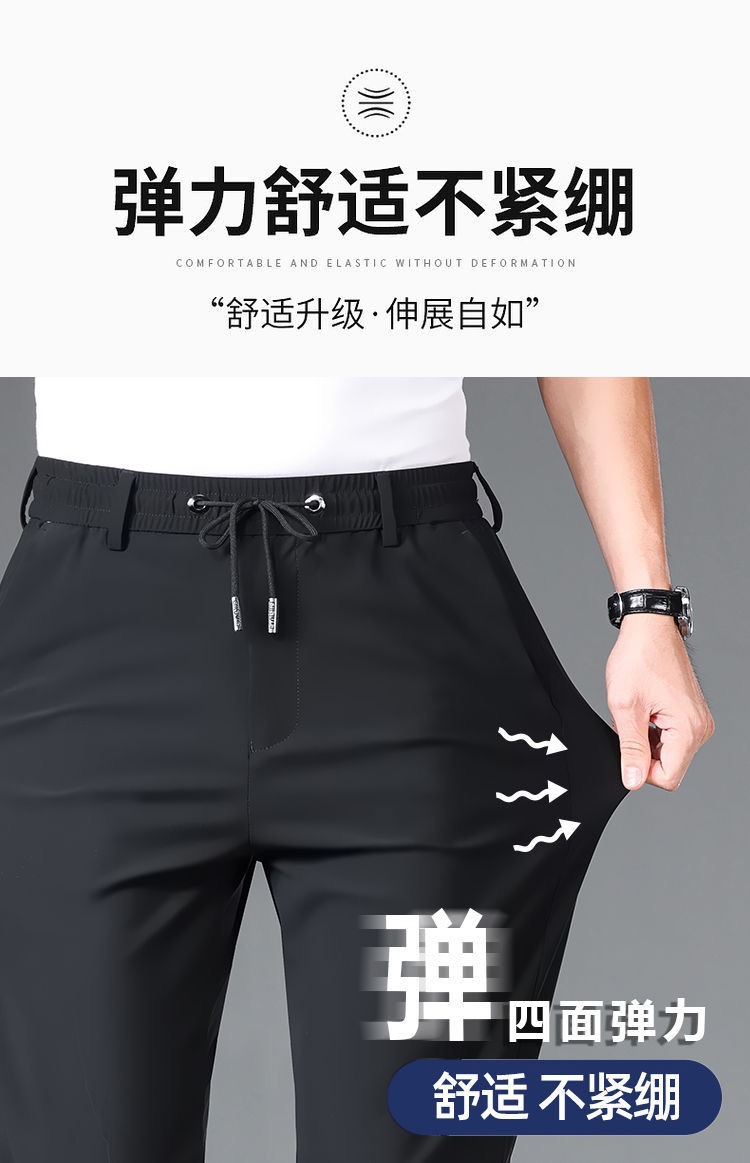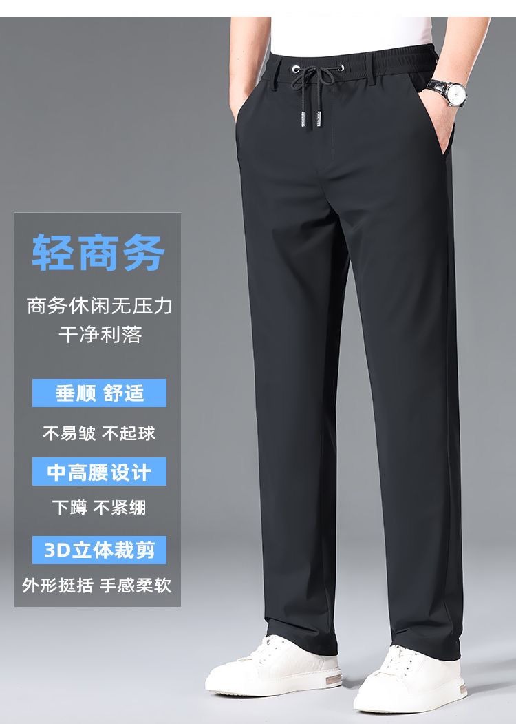 아이스 실크 캐주얼 바지 남성 여름 얇은 대형 느슨한 통기성 스트레이트 비즈니스 바지 탄성 속건 스포츠 바지스토어 가기
