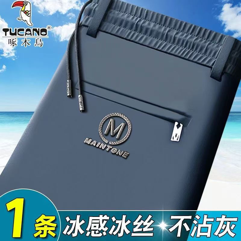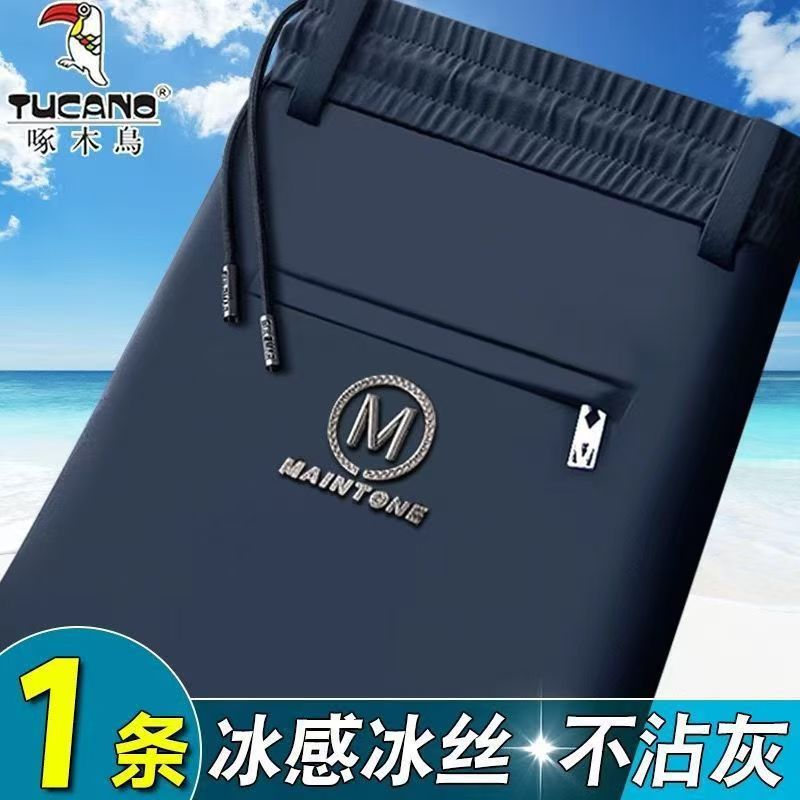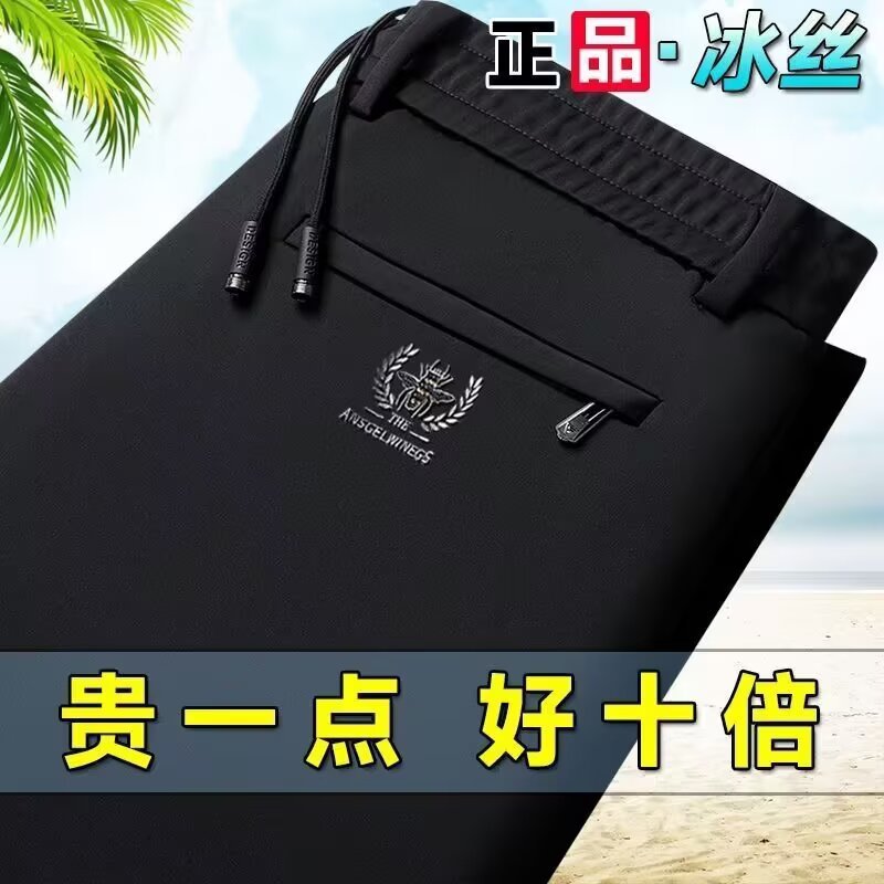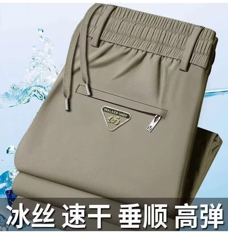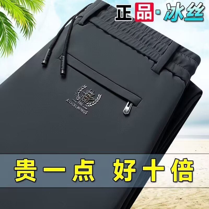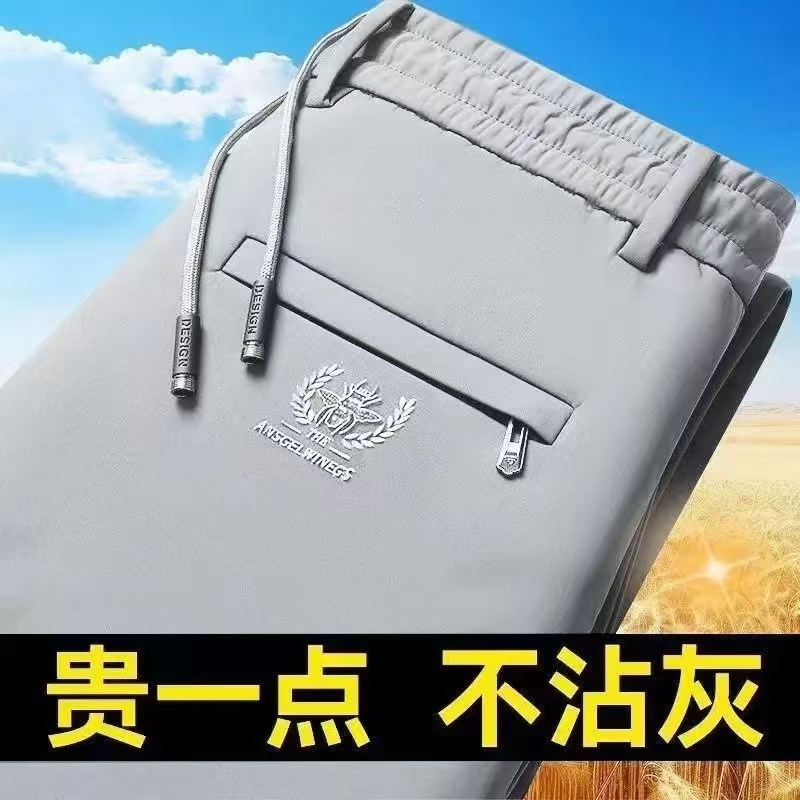 아이스 실크 캐주얼 바지 남성 여름 얇은 대형 느슨한 통기성 스트레이트 비즈니스 바지 탄성 속건 스포츠 바지스토어 가기