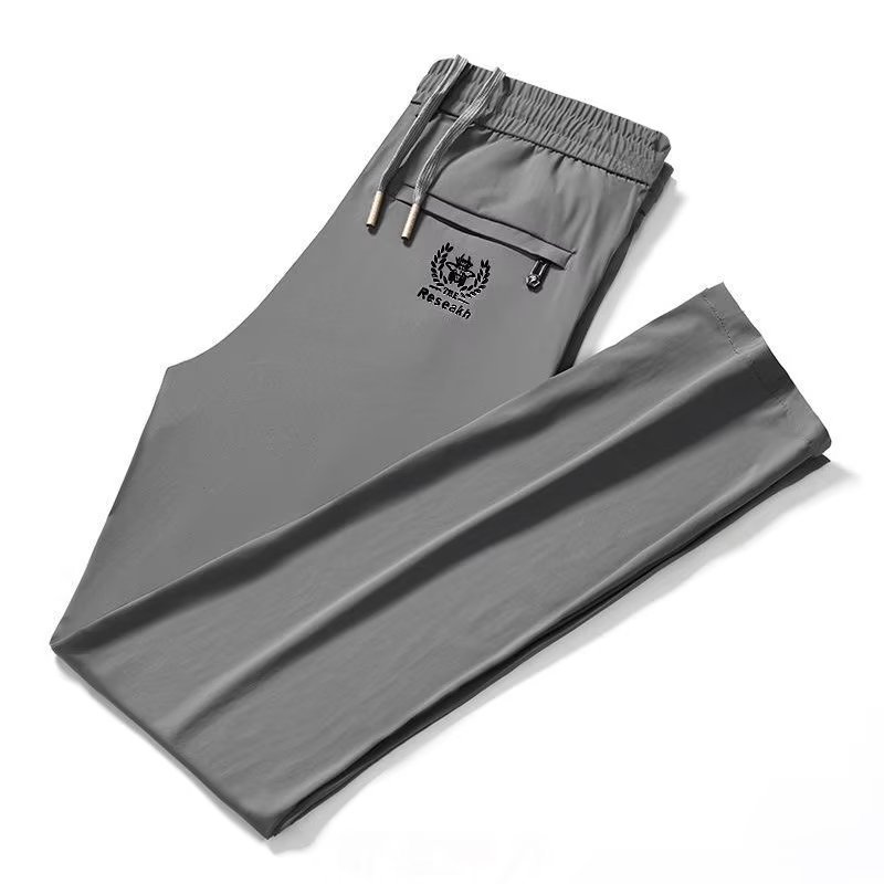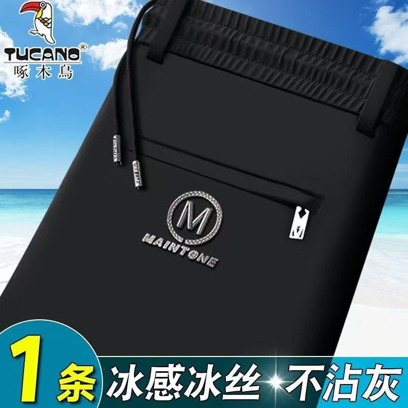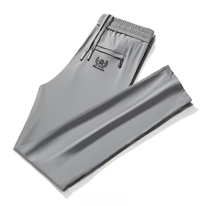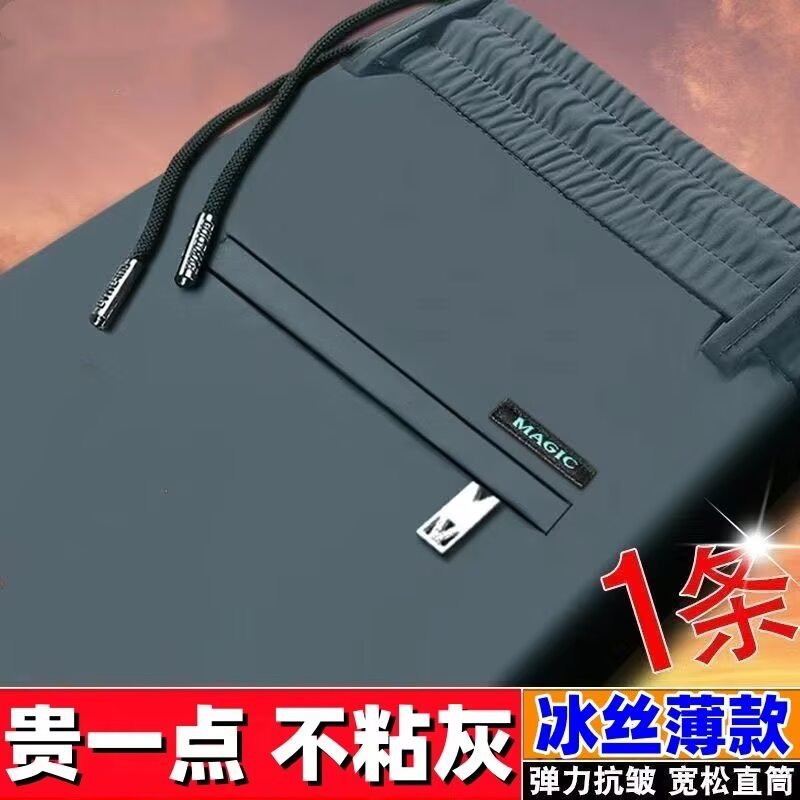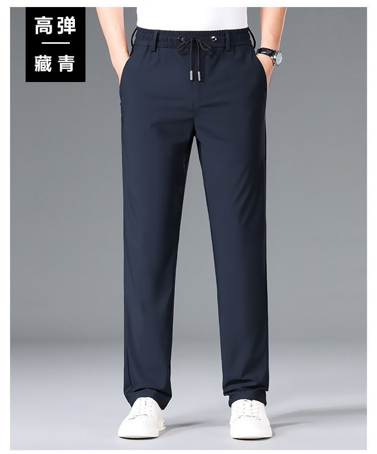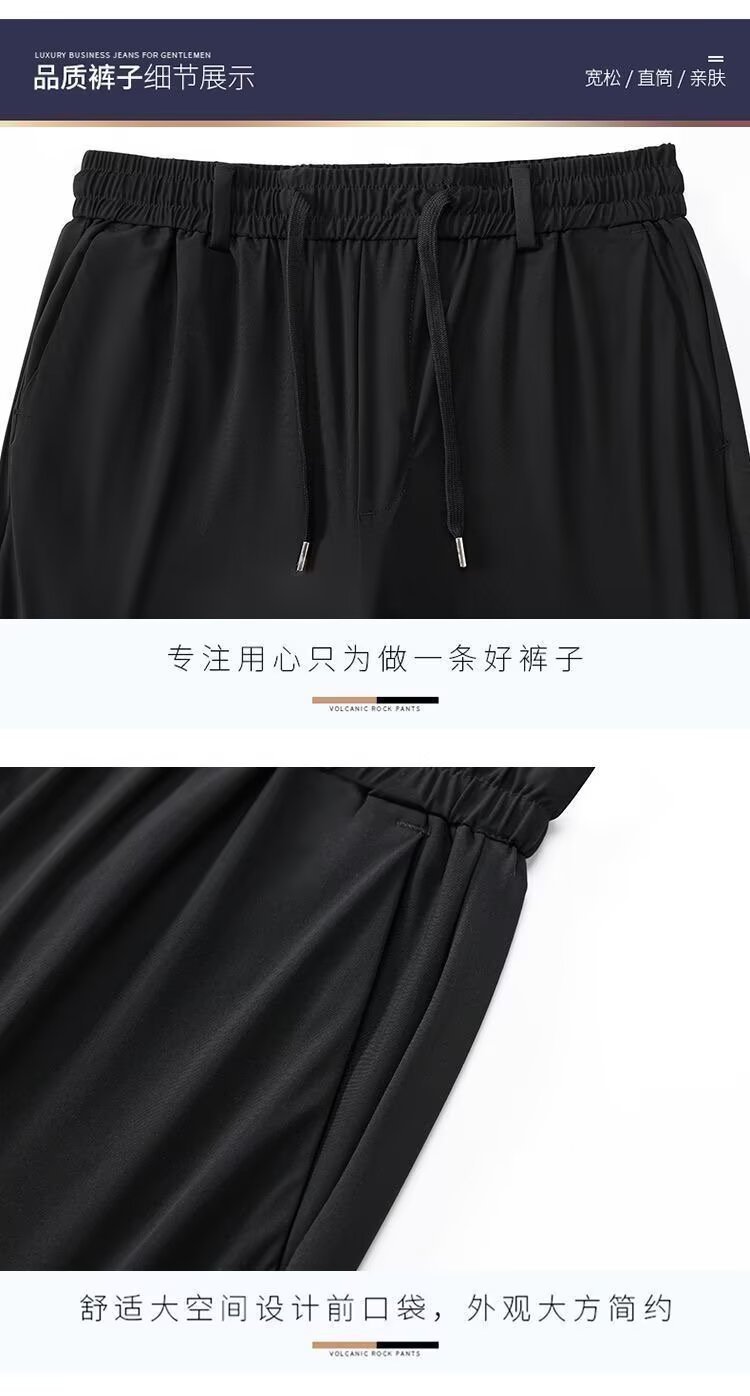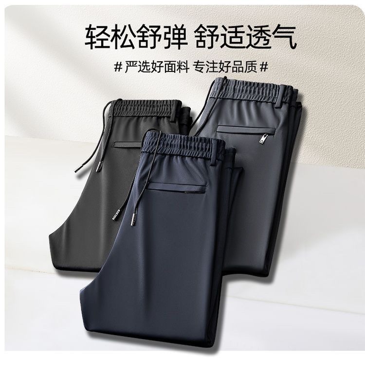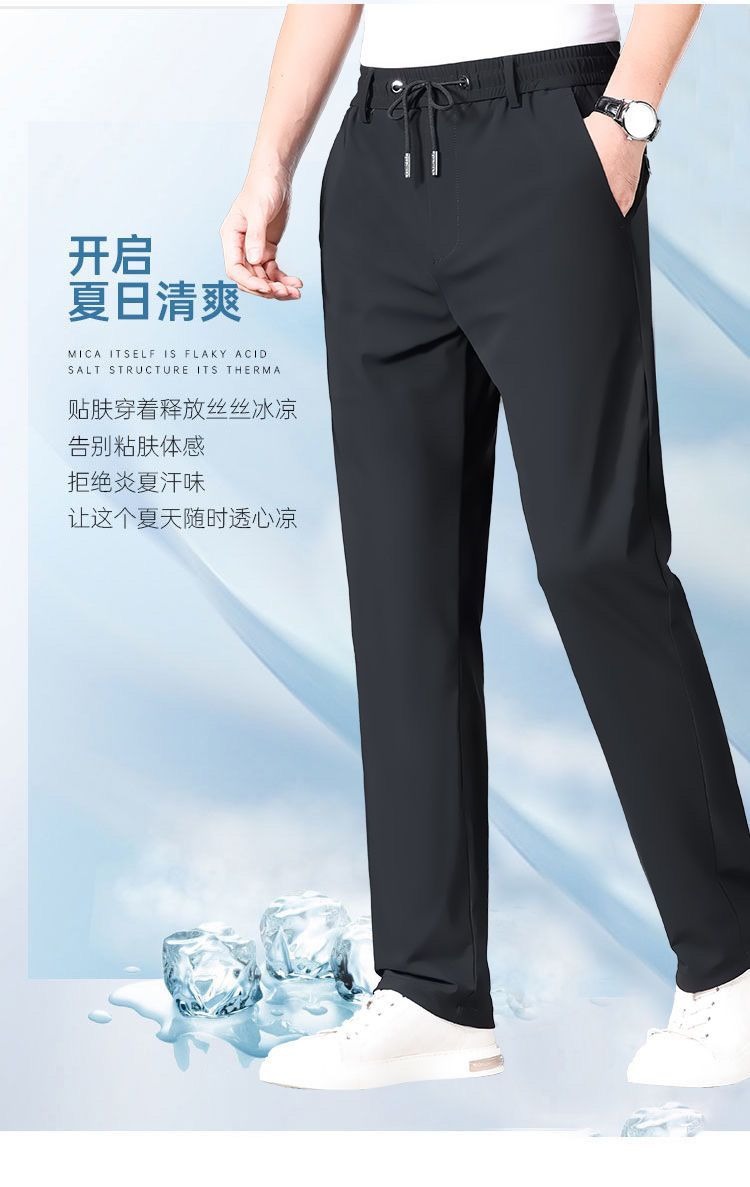 아이스 실크 캐주얼 바지 남성 여름 얇은 대형 느슨한 통기성 스트레이트 비즈니스 바지 탄성 속건 스포츠 바지
