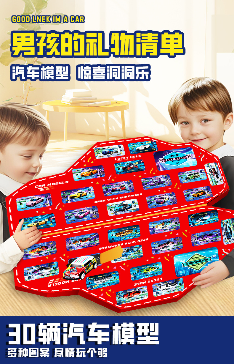 25 새로운 주석 자동차 구멍 구멍 음악 블라인드 박스 장난감 선물 상자 세트 소년 시뮬레이션 자동차 다시 자동차 장난감
