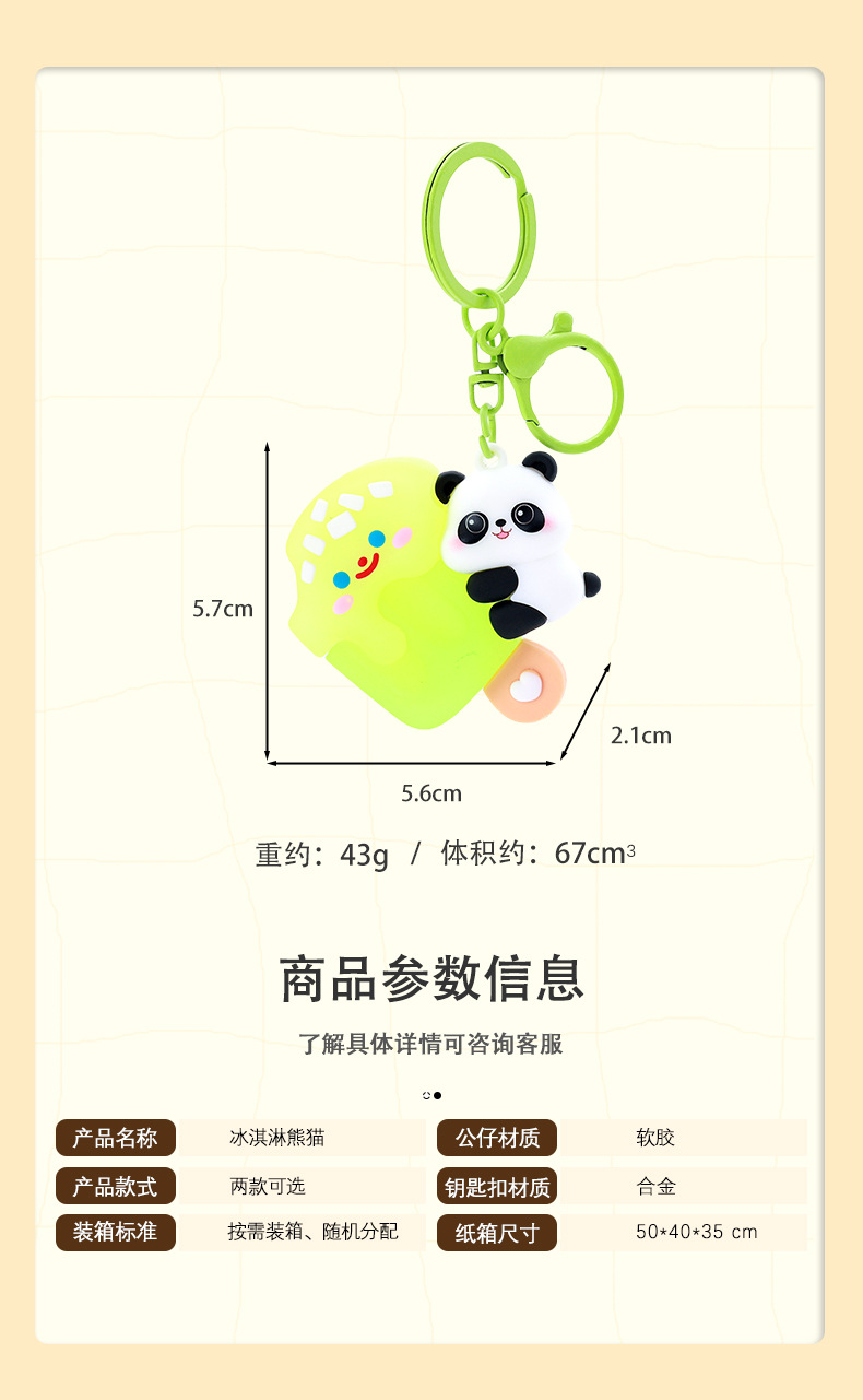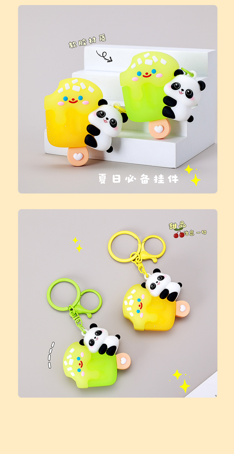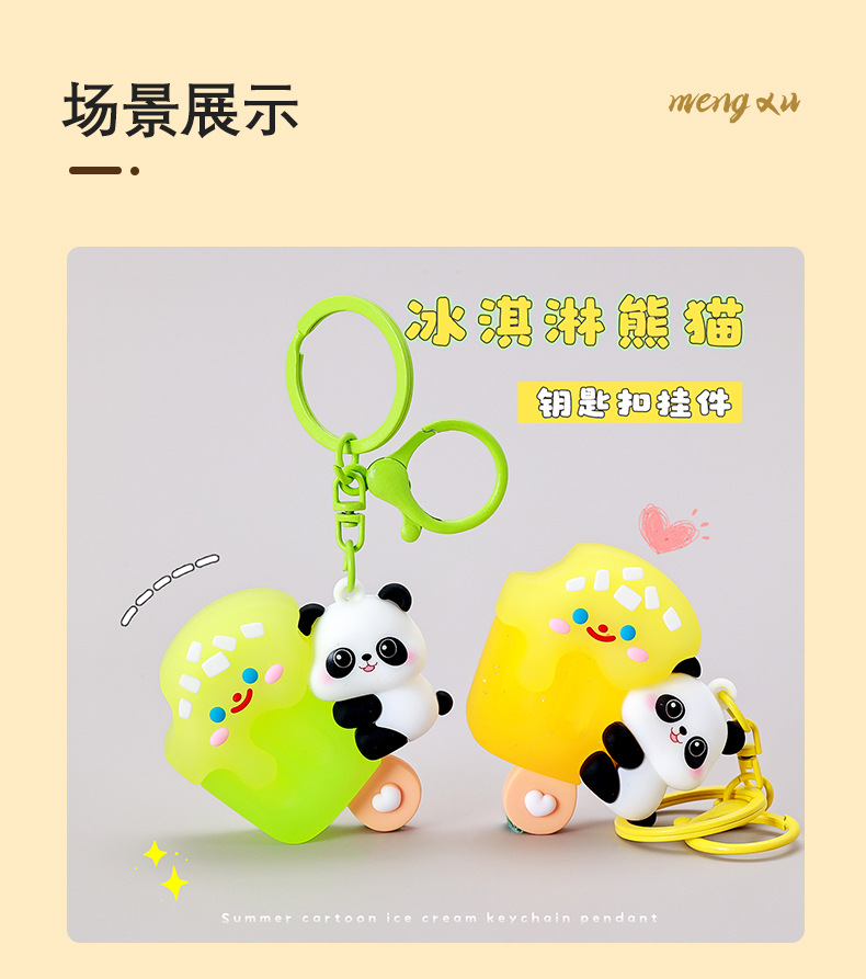 여름 아이스크림 팬더 키 체인 작은 펜던트 창조적 인 선물 커플 Schoolbag 교수형 장식품 잡기 아기 장난감 도매스토어 가기