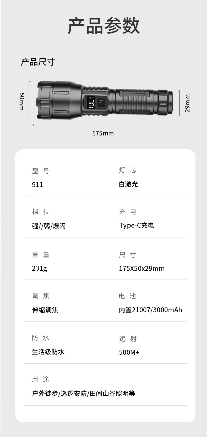 • X911 백색 레이저(내장 21700+ 디지털 디스플레이 출력)
