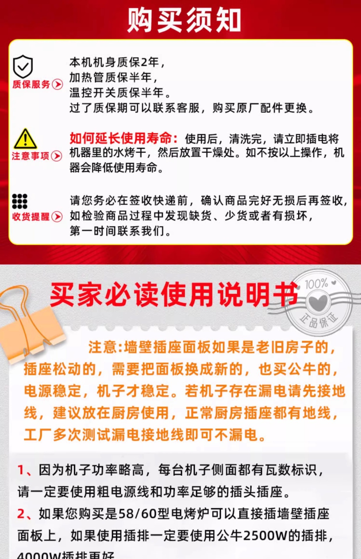 • [업그레이드 및 두꺼워짐] 100형 전기 오븐 6000W 이중선(10A 플러그 2개 포함)