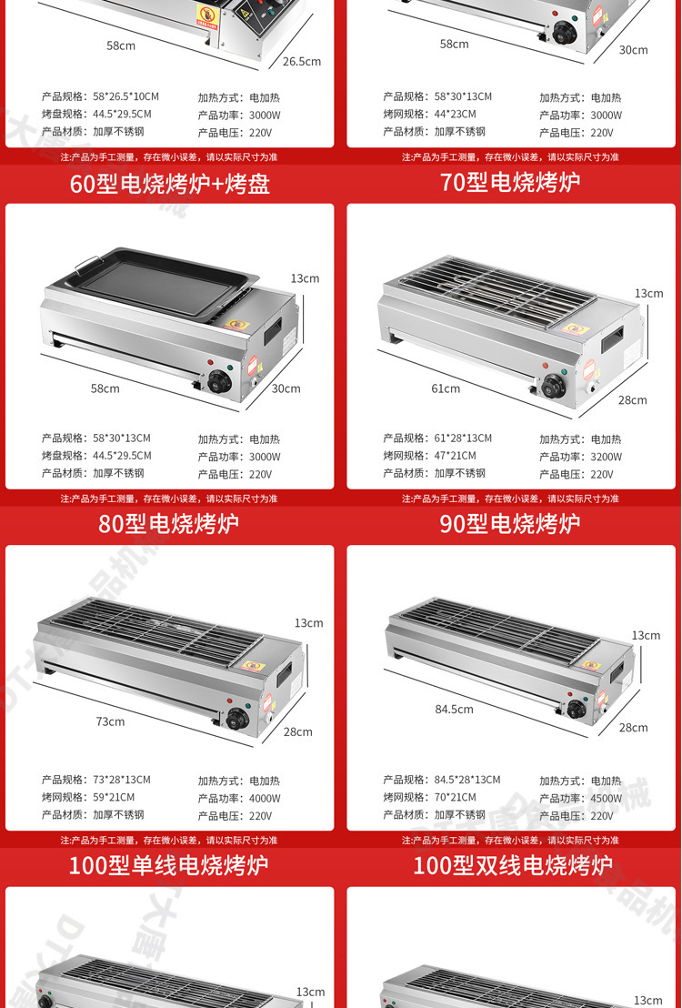 전기 그릴, 상업용 그릴, 무연 실내 양고기 꼬치 굽기, 굴 글루텐 전기 그릴, 스테인레스 스틸 상업용스토어 가기
