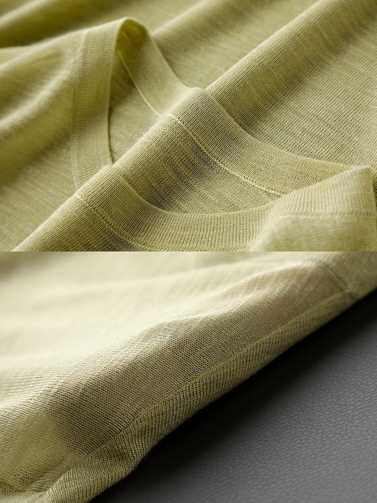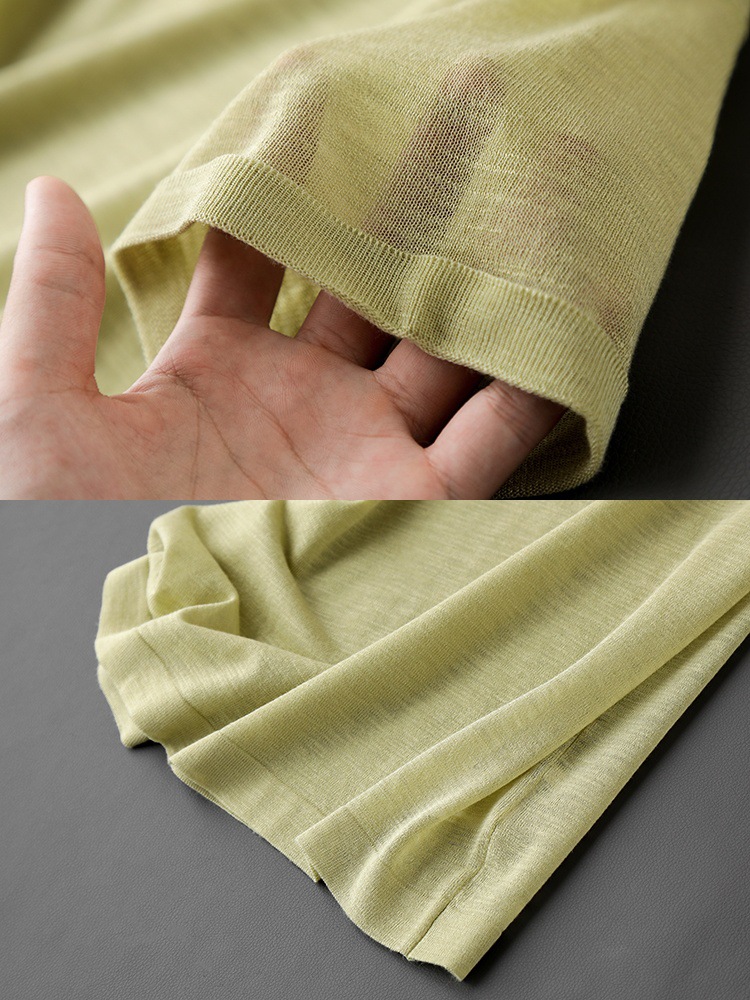 니트웨어 같은 CHAO! 얇은 리넨 텐셀 크루 넥 반팔 니트 티셔츠 여성용 여름 솔리드 컬러 마차 그린 탑