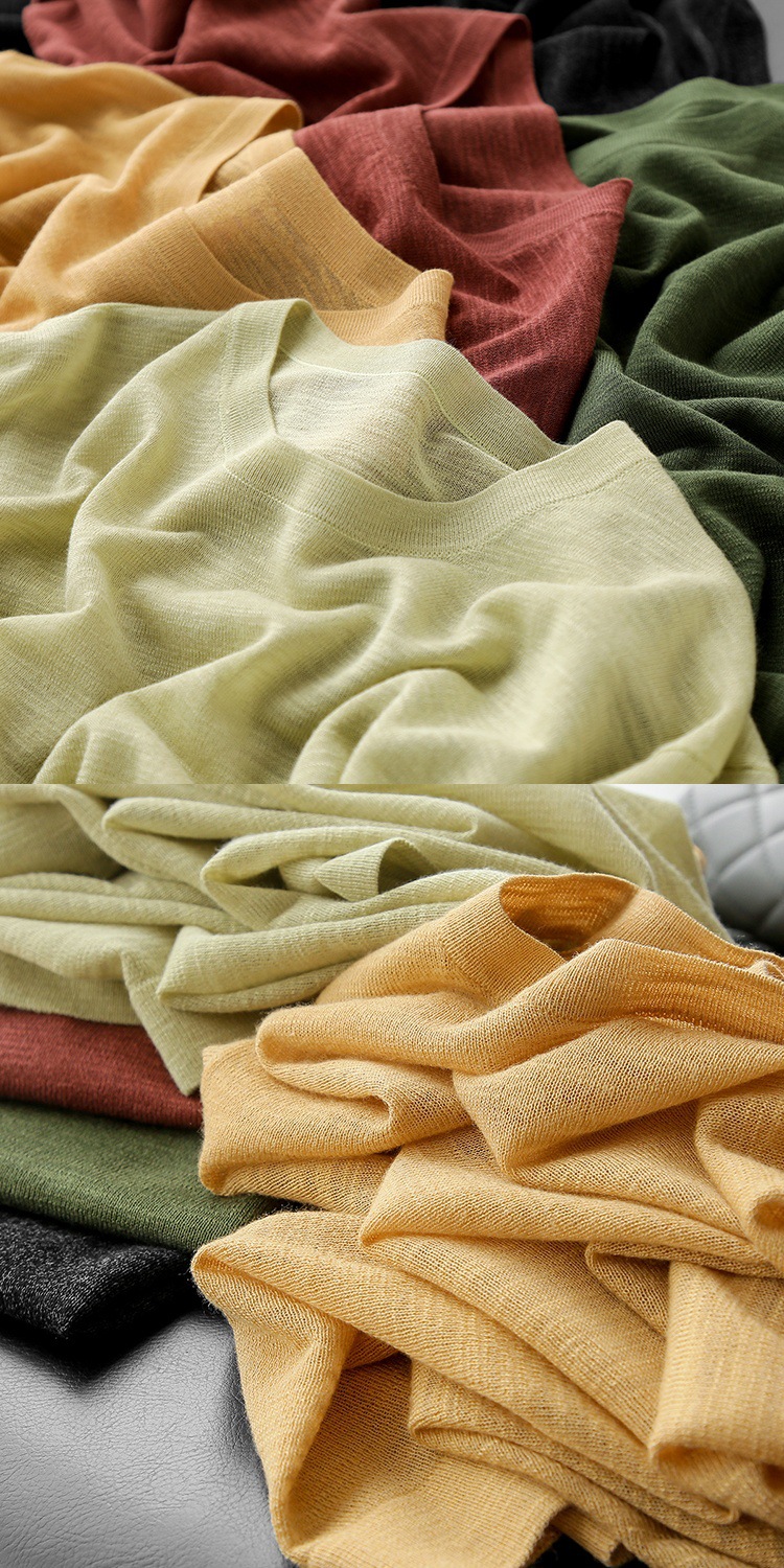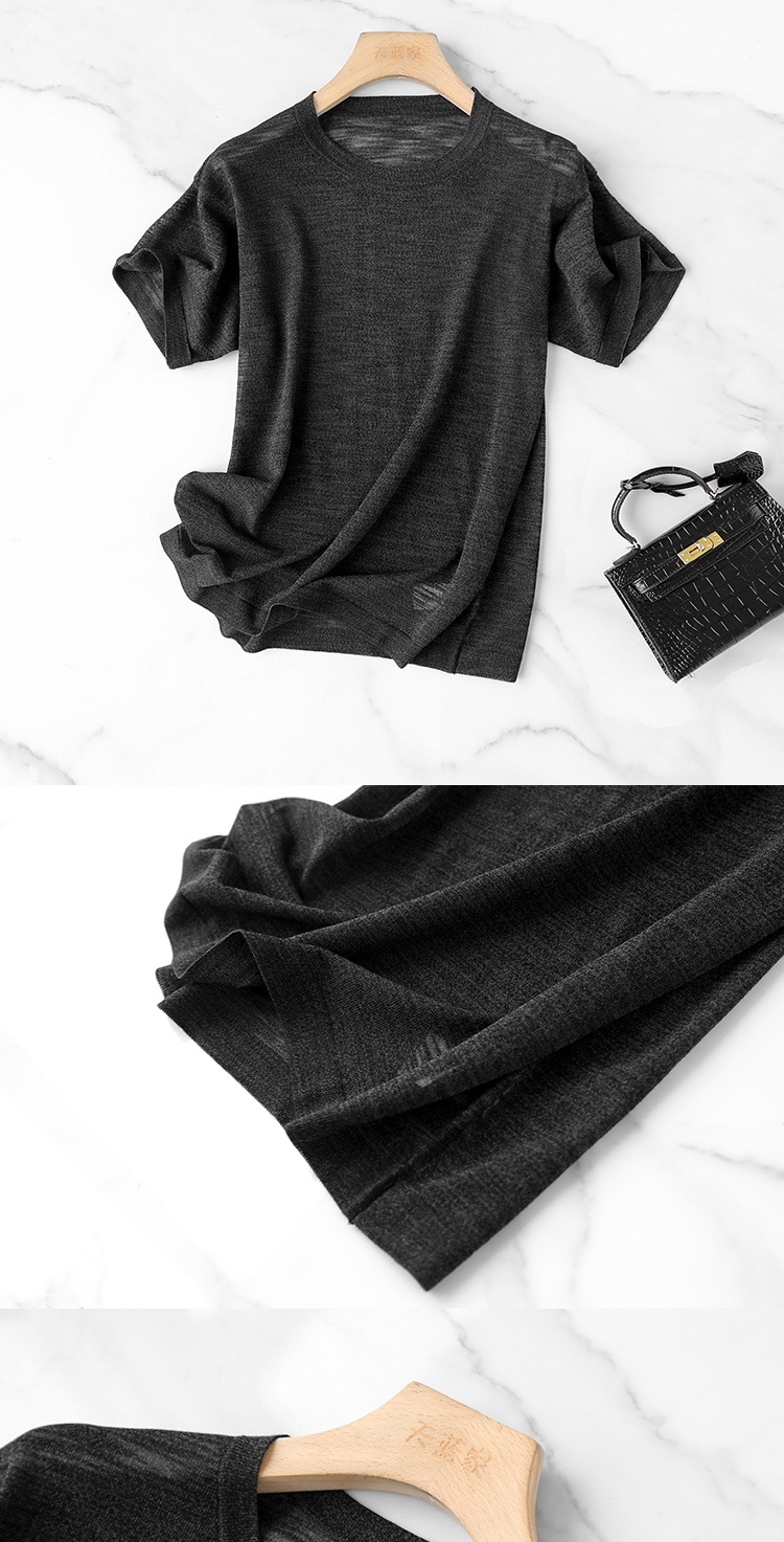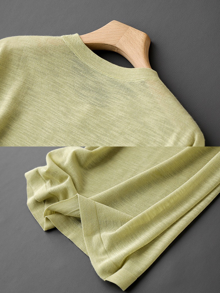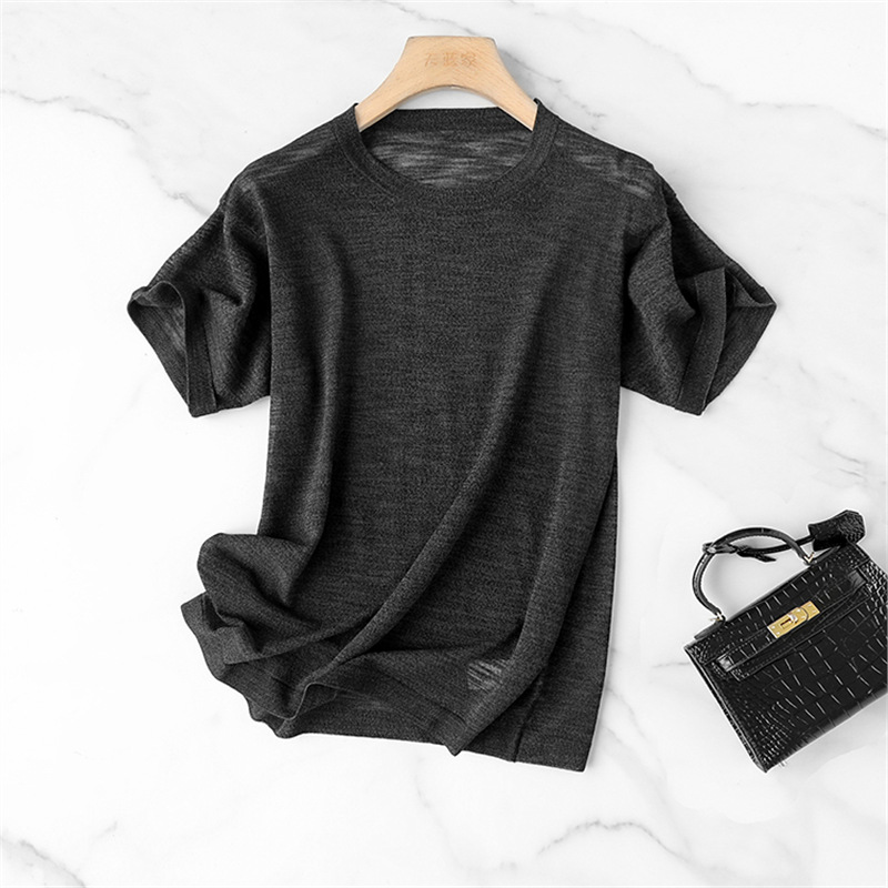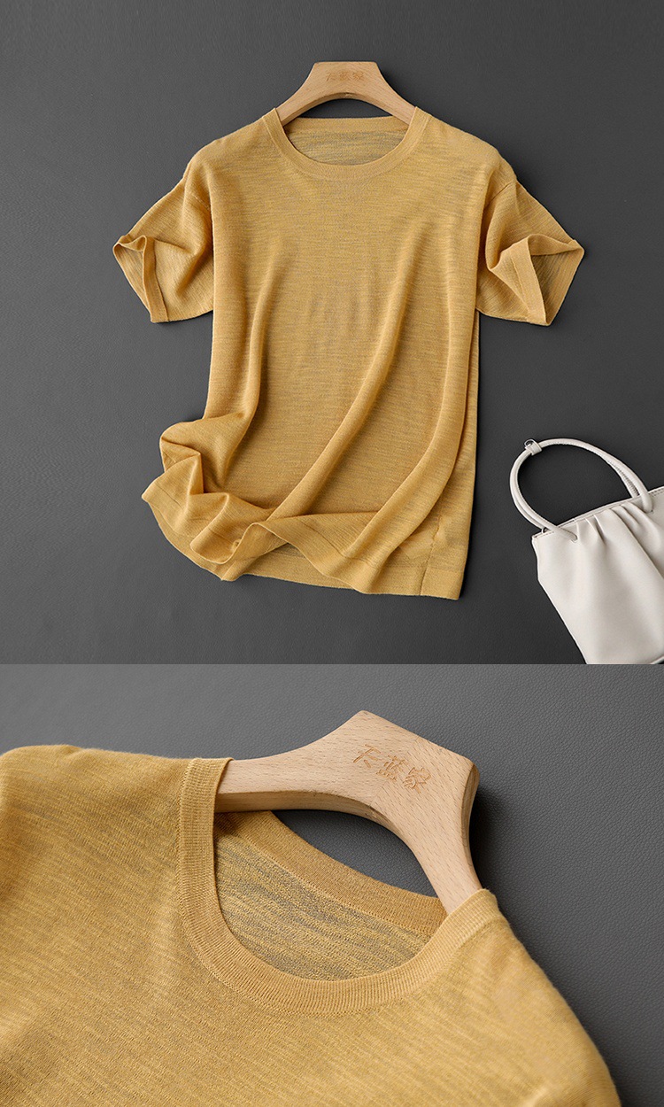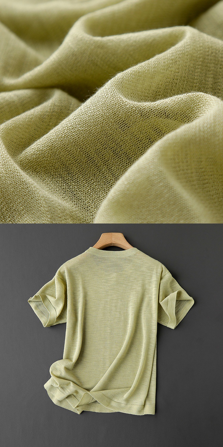 니트웨어 같은 CHAO! 얇은 리넨 텐셀 크루 넥 반팔 니트 티셔츠 여성용 여름 솔리드 컬러 마차 그린 탑스토어 가기