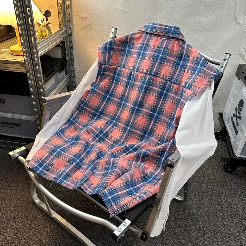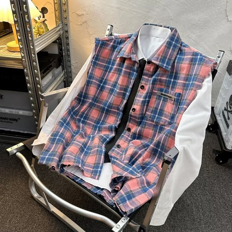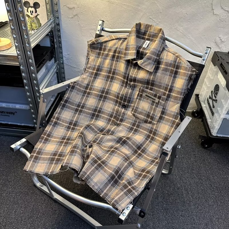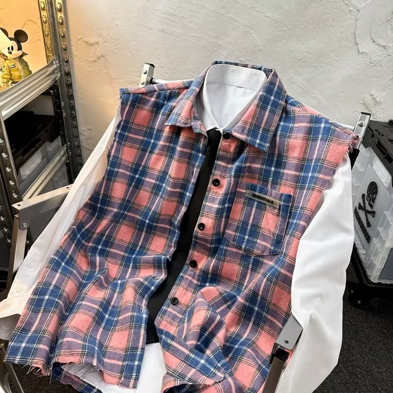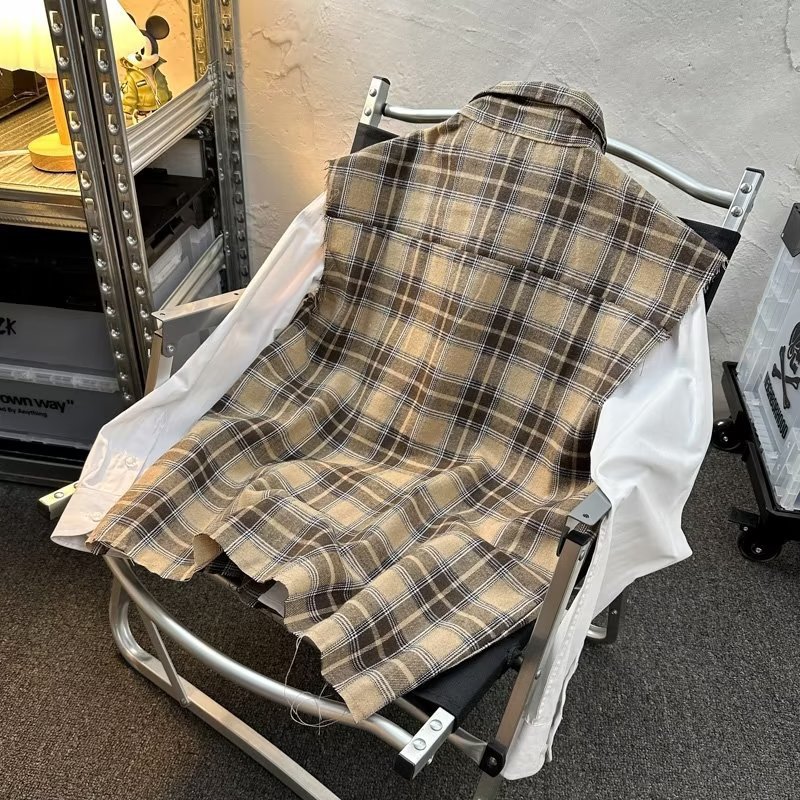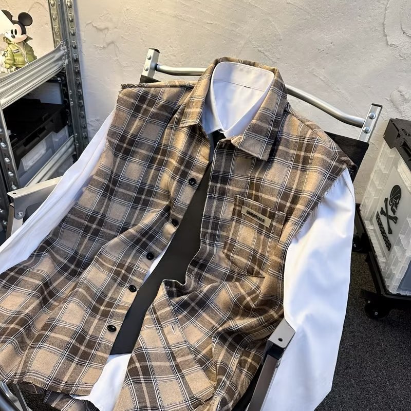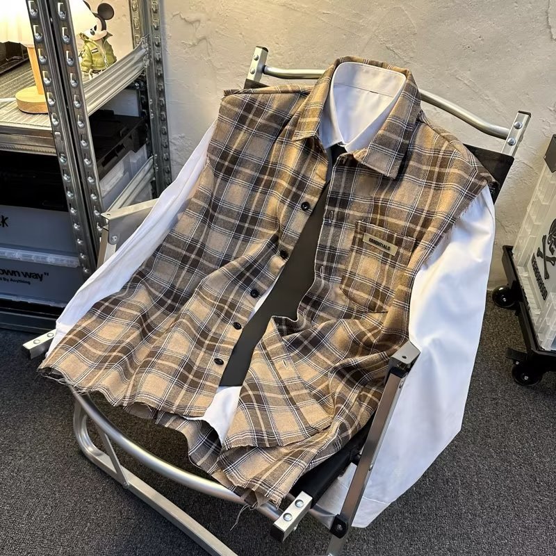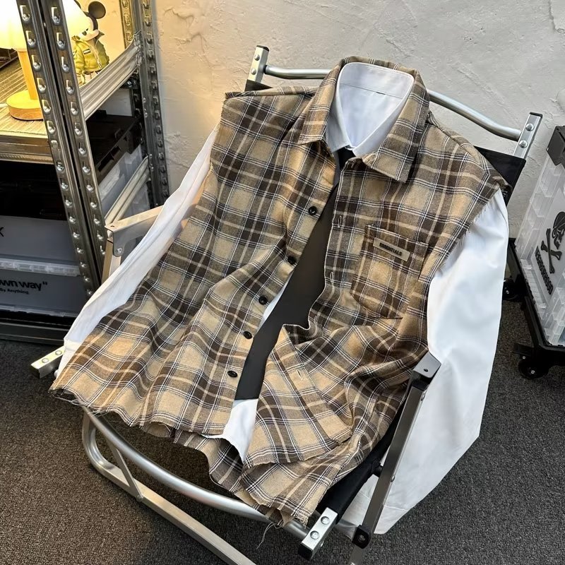 2025 새로운 도착 복고풍 녹색 격자 무늬 셔츠 남자의 봄과 가을 디자인 센스 니쉬 셔츠 재킷 조끼 루즈