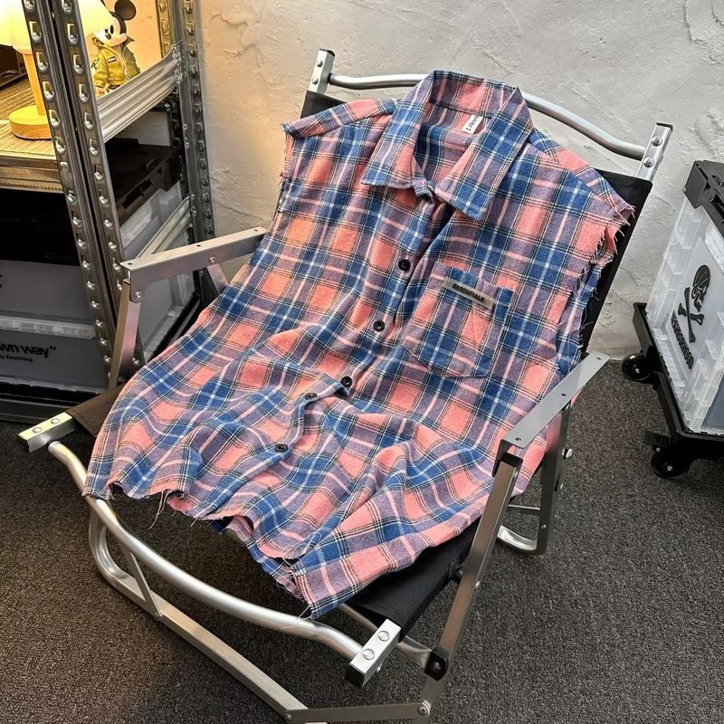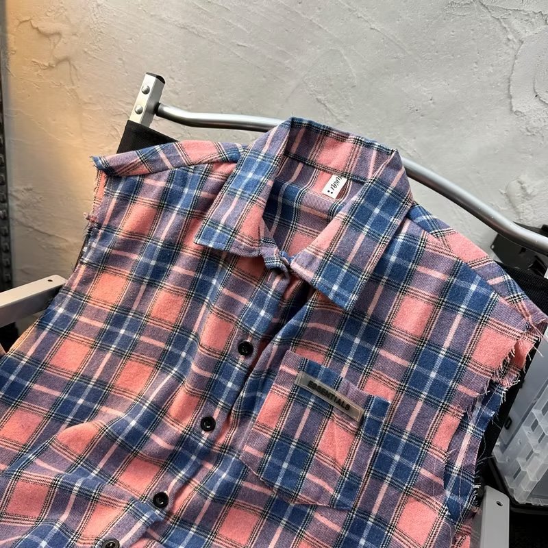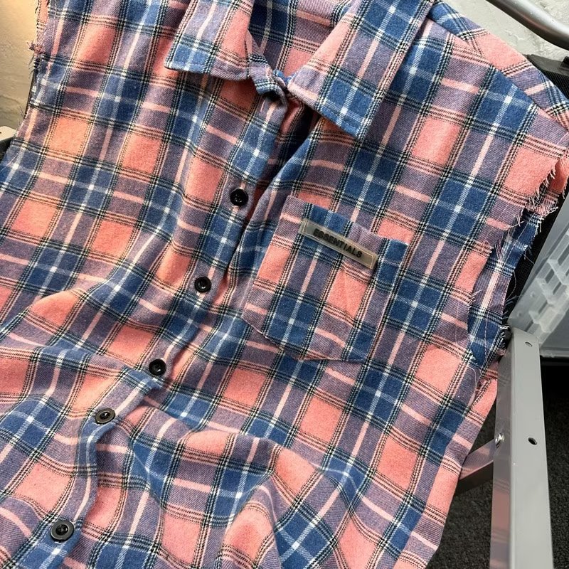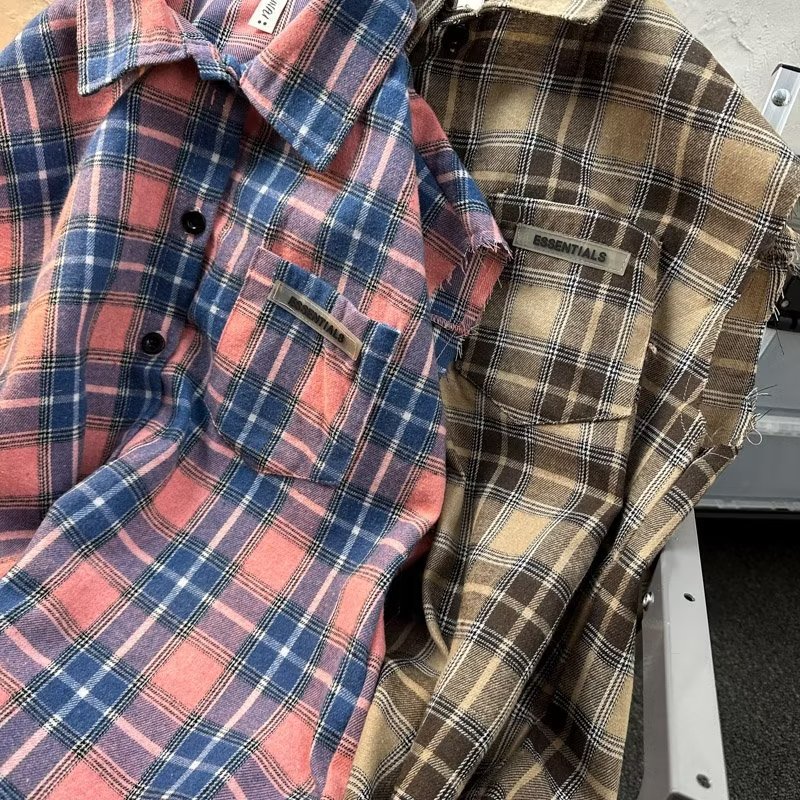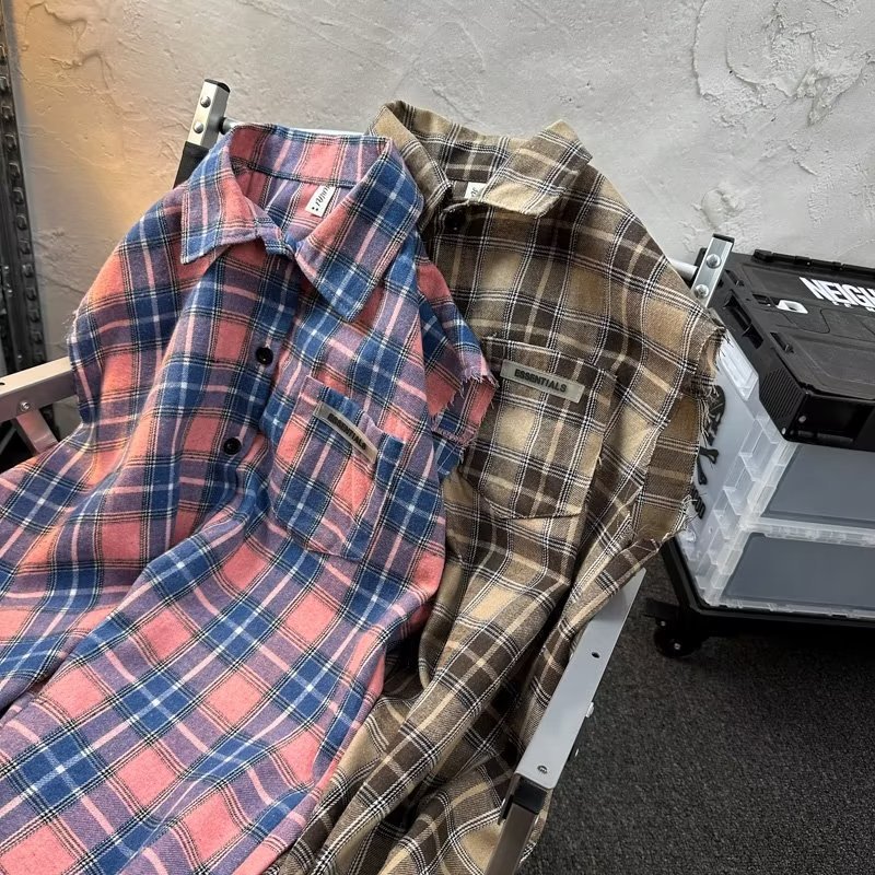 2025 새로운 도착 복고풍 녹색 격자 무늬 셔츠 남자의 봄과 가을 디자인 센스 니쉬 셔츠 재킷 조끼 루즈스토어 가기