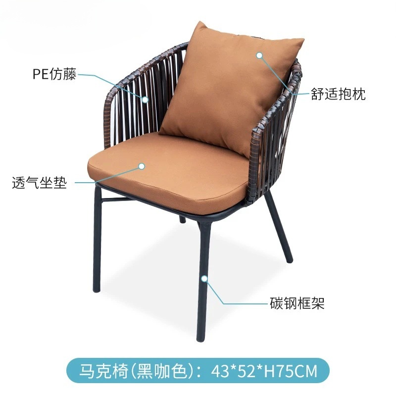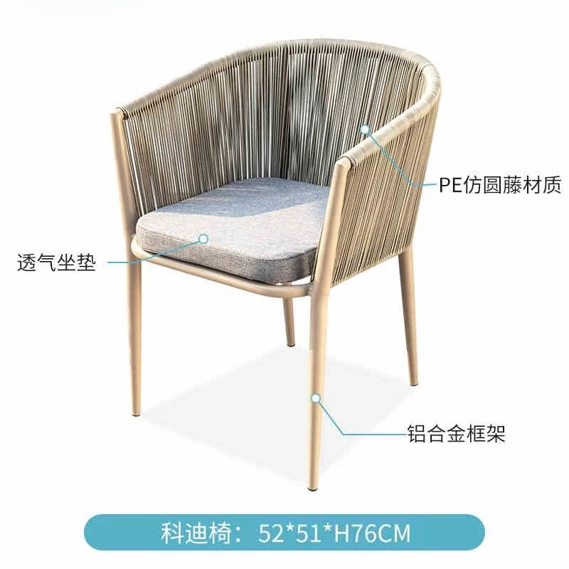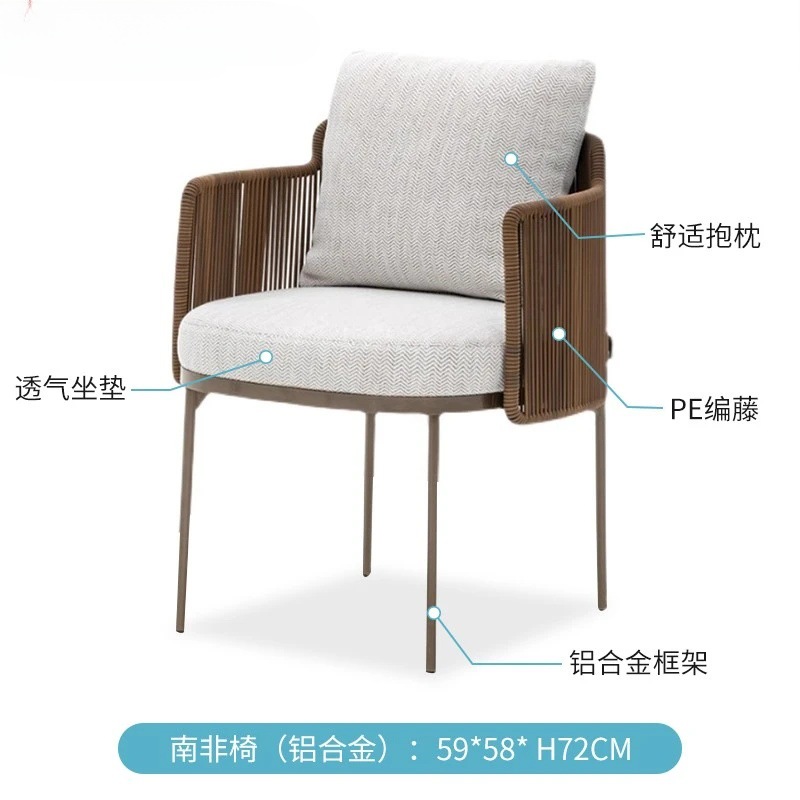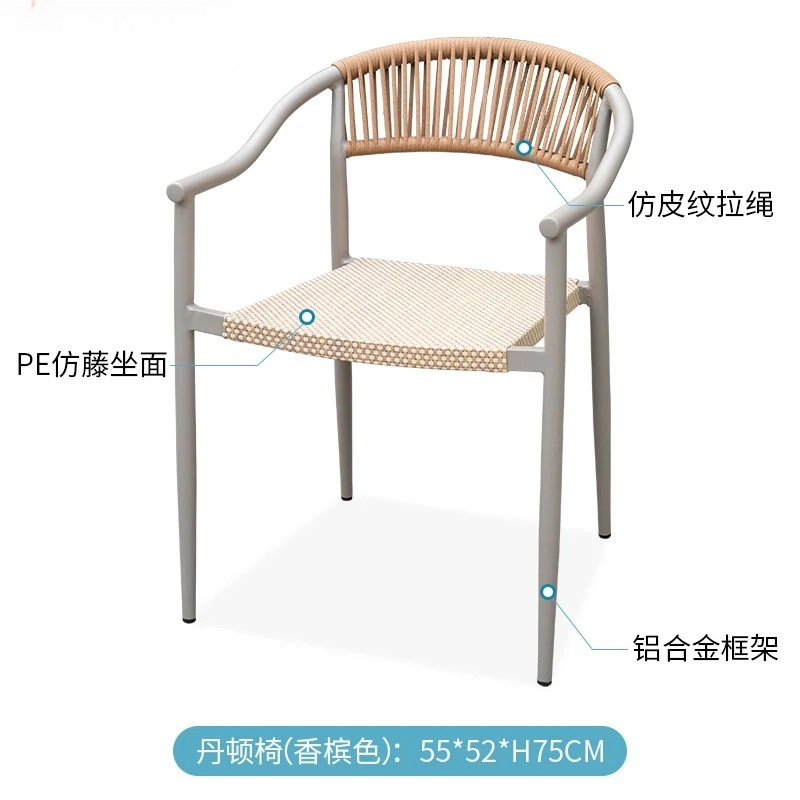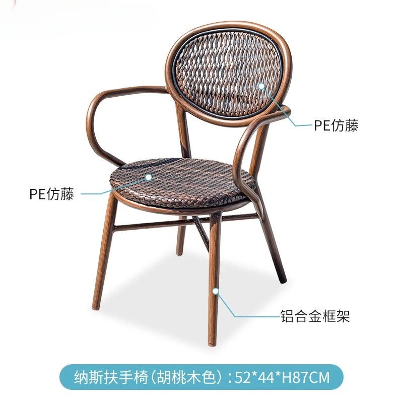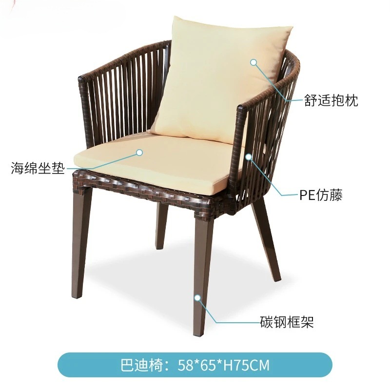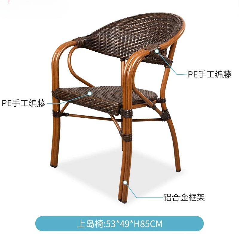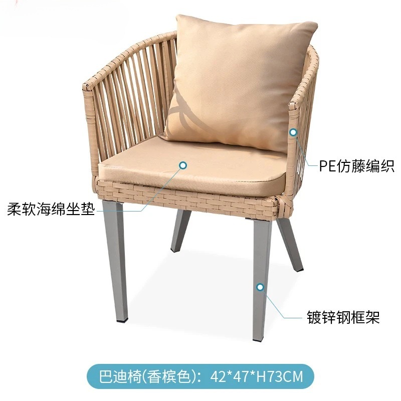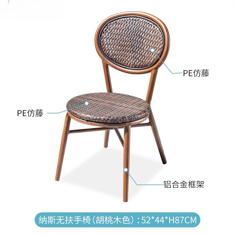 야외 북유럽 레저 등나무 의자 안뜰 야외 우유 차 가게 단일 등나무 의자 방수 태양 방지 식사 의자 등받이 의자