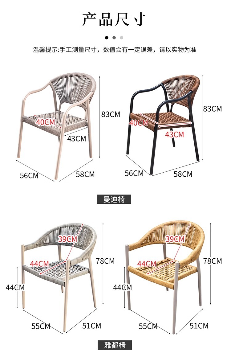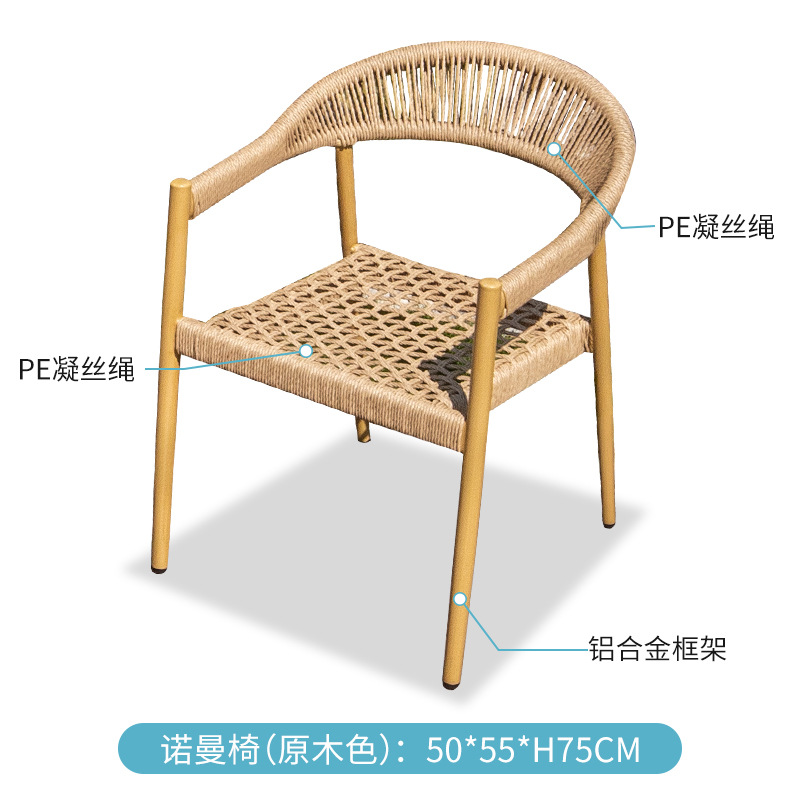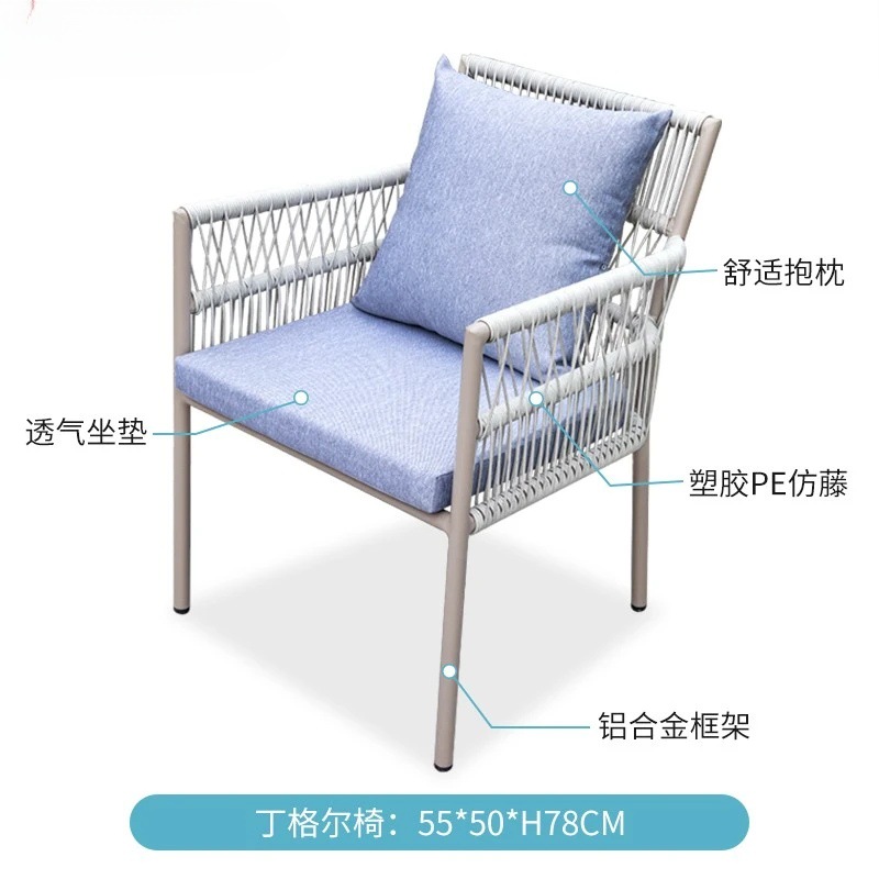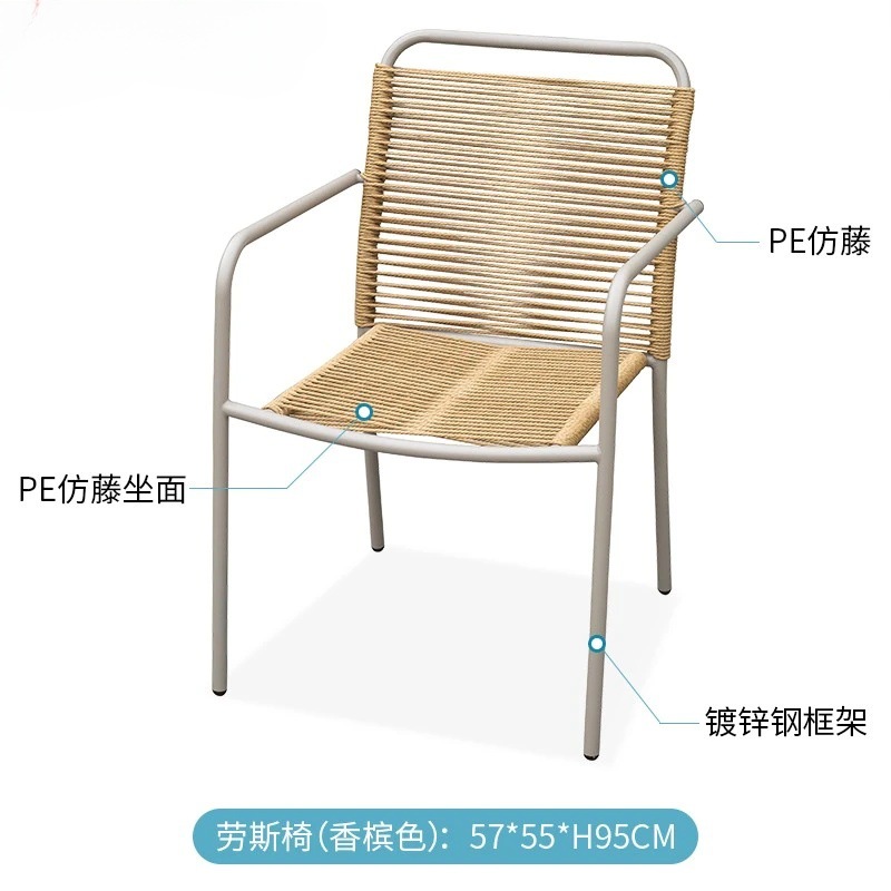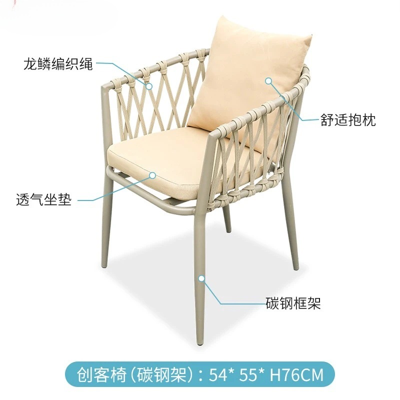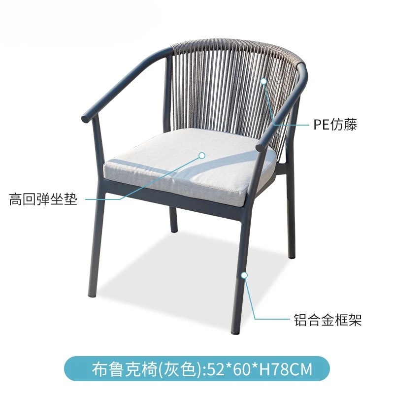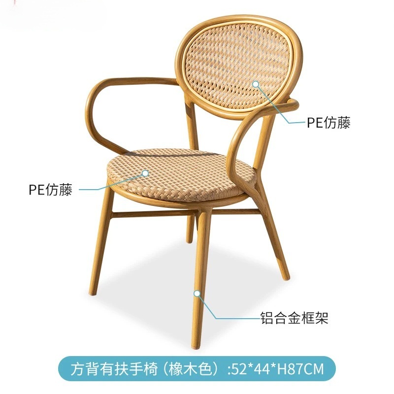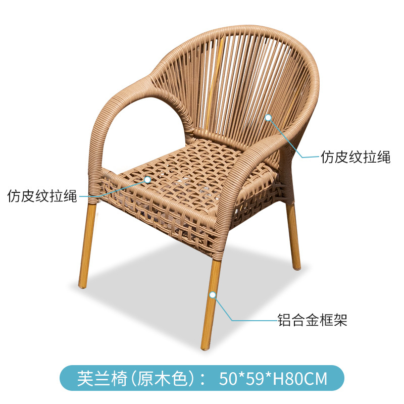 야외 북유럽 레저 등나무 의자 안뜰 야외 우유 차 가게 단일 등나무 의자 방수 태양 방지 식사 의자 등받이 의자