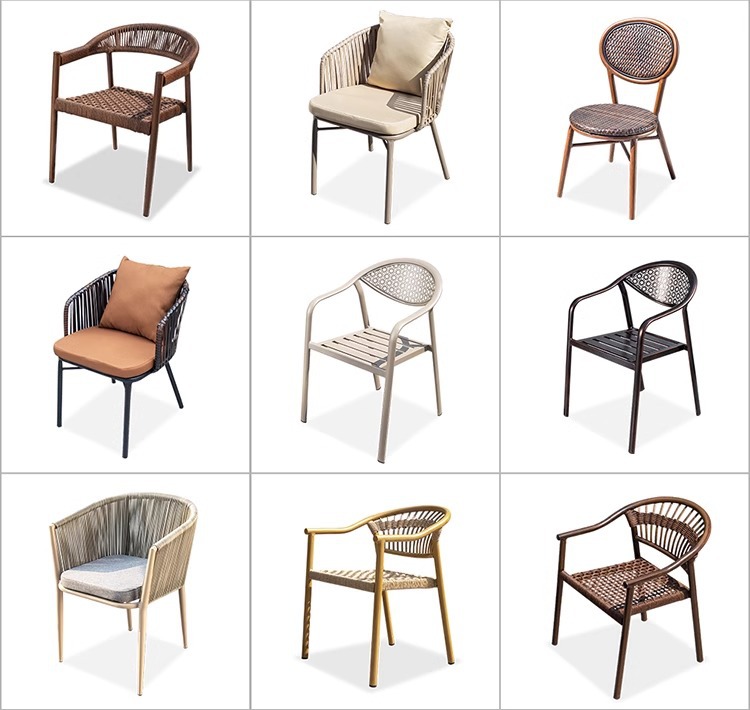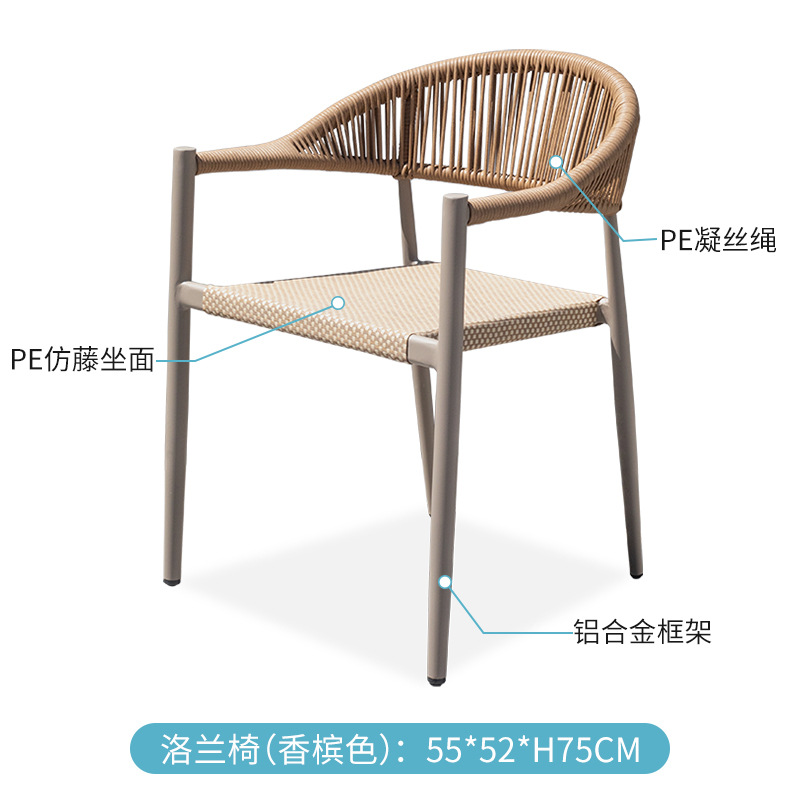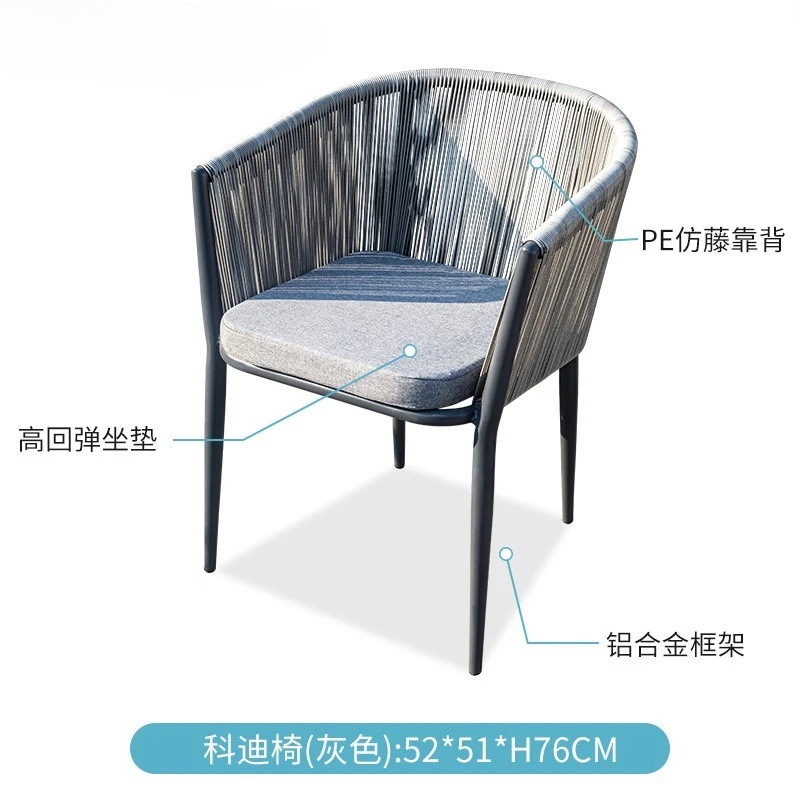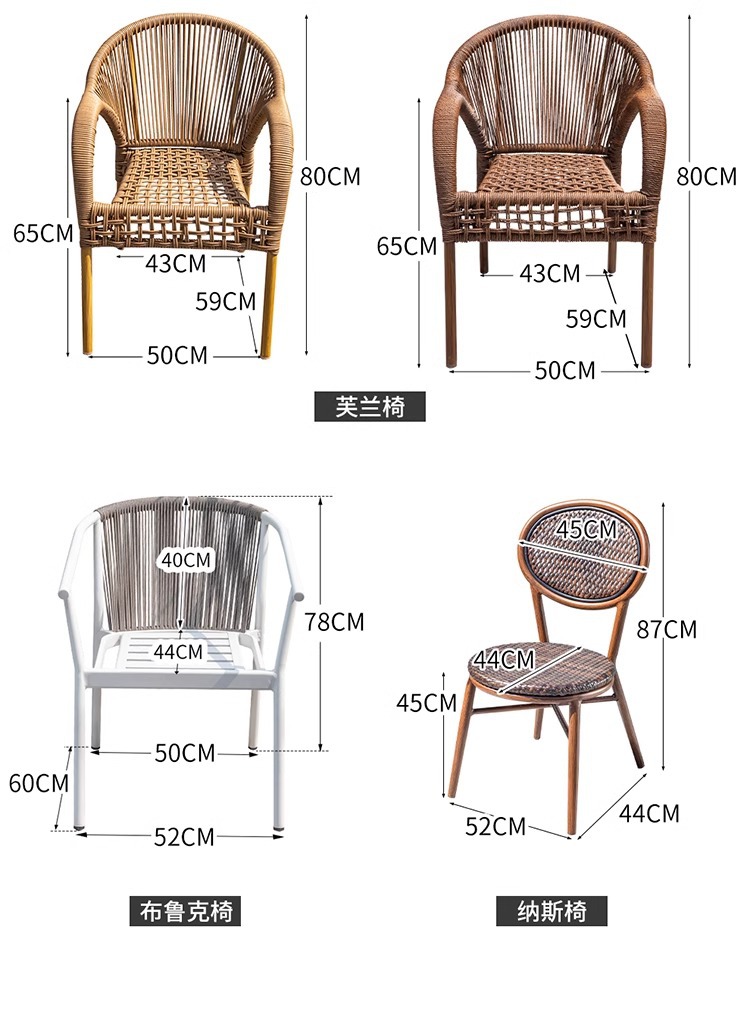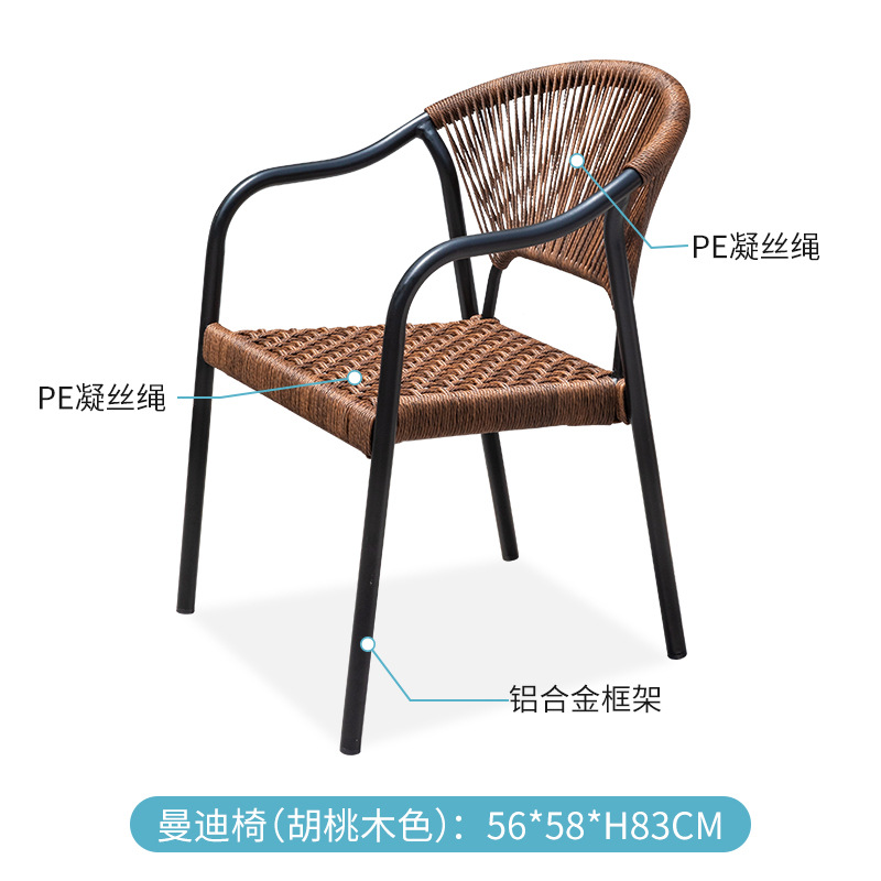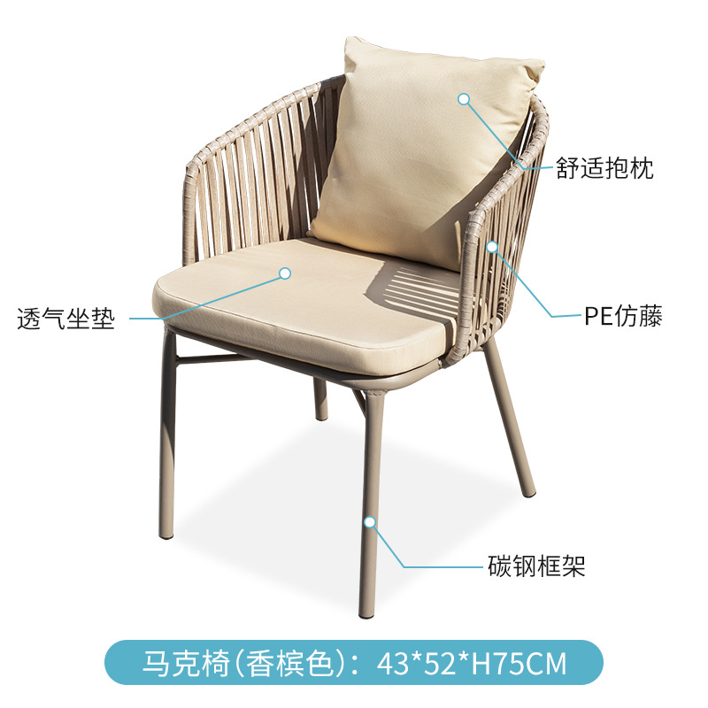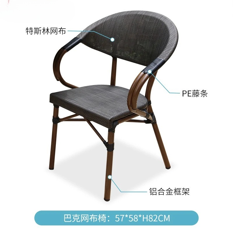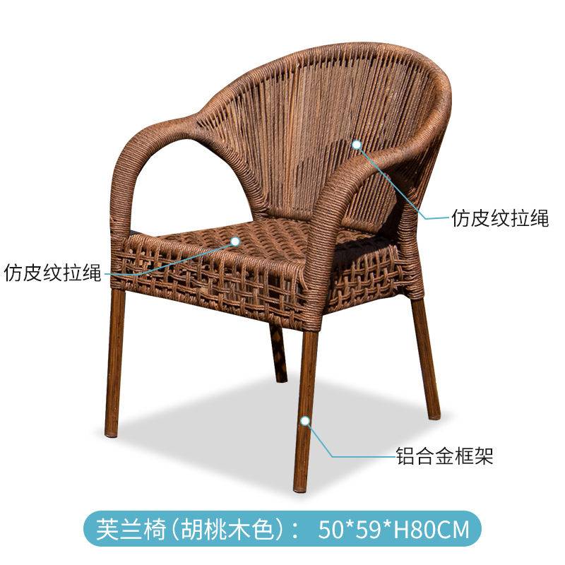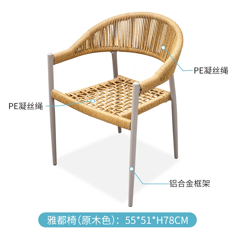 야외 북유럽 레저 등나무 의자 안뜰 야외 우유 차 가게 단일 등나무 의자 방수 태양 방지 식사 의자 등받이 의자