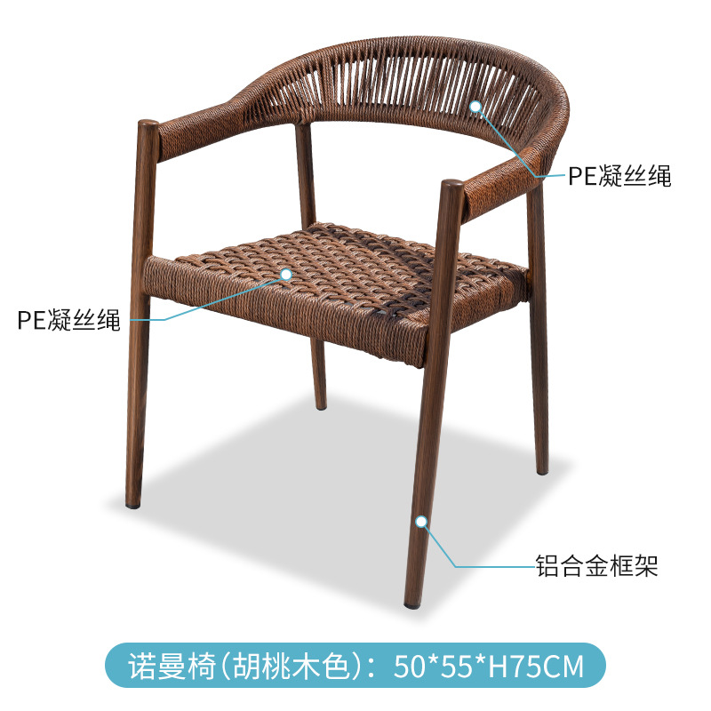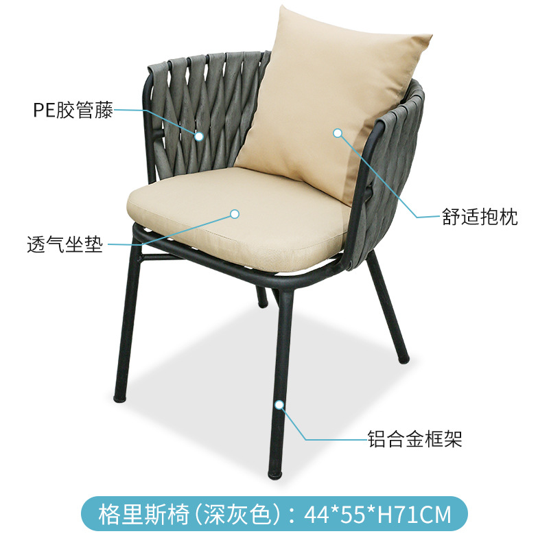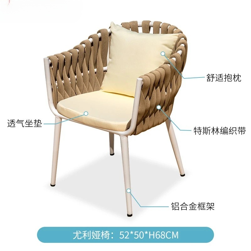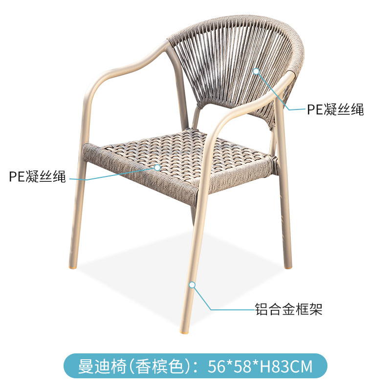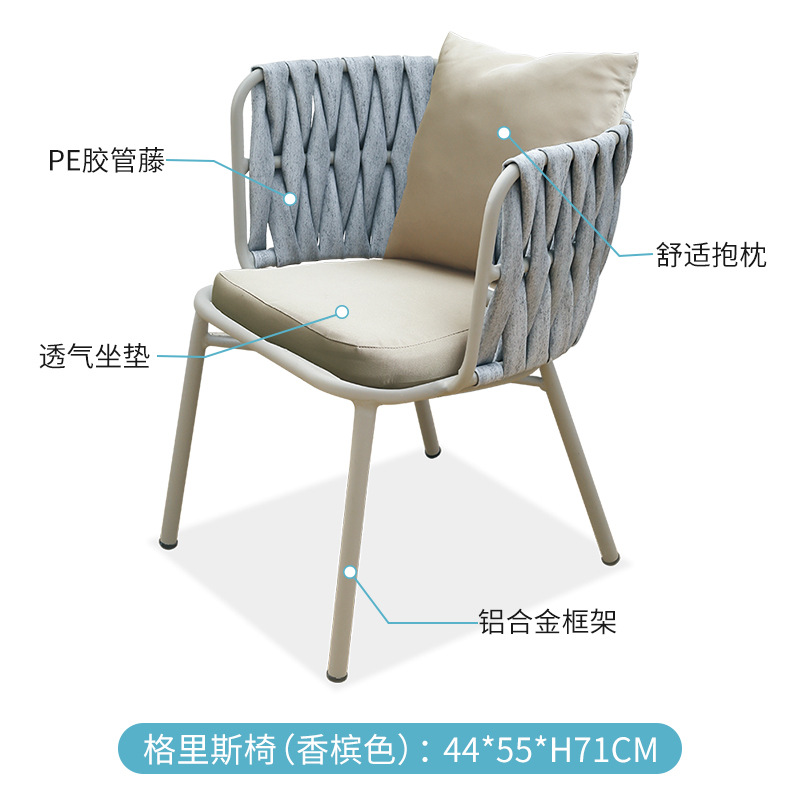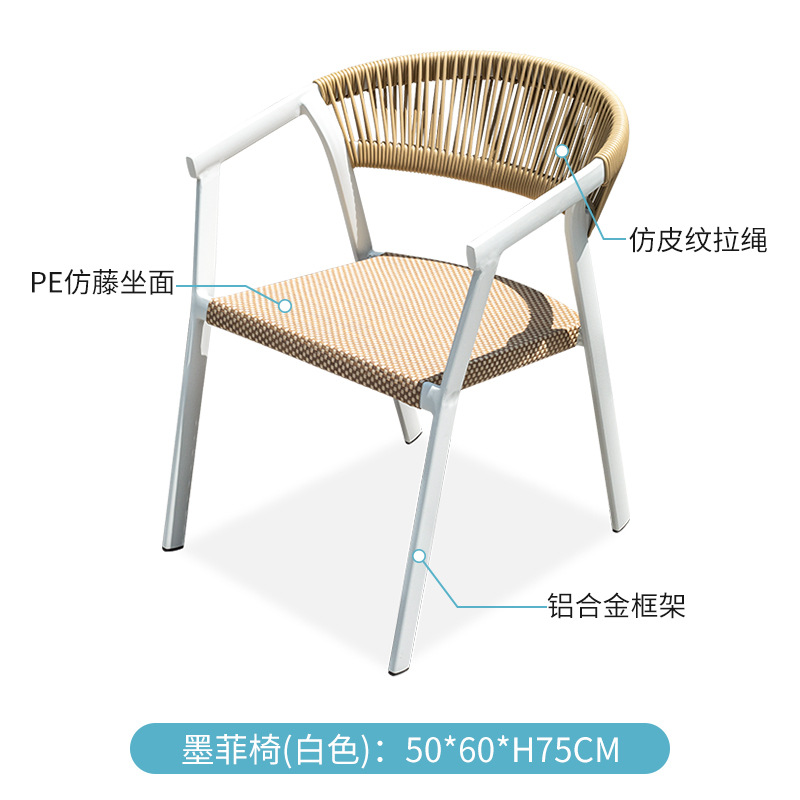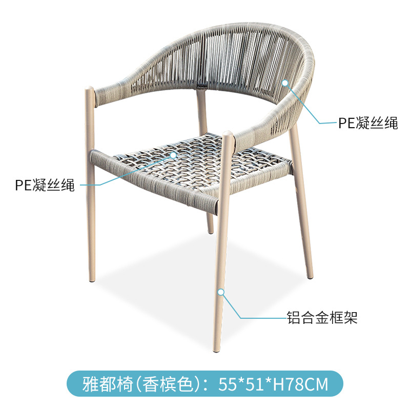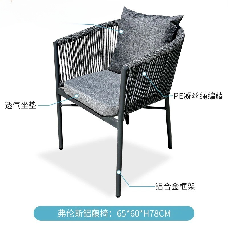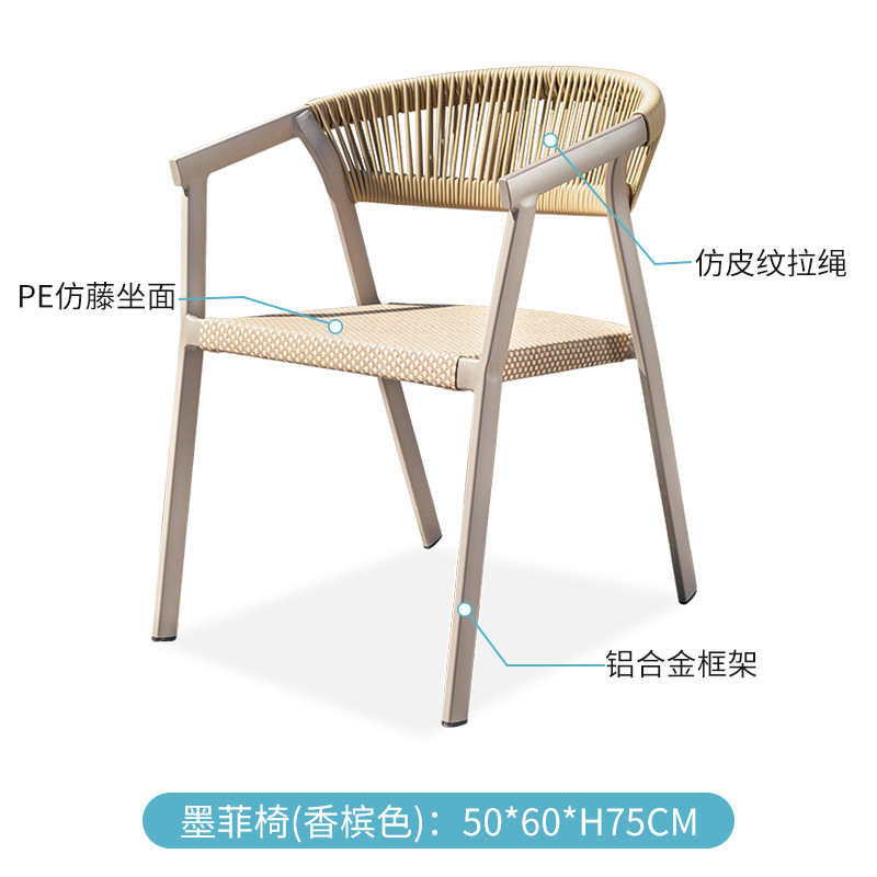 야외 북유럽 레저 등나무 의자 안뜰 야외 우유 차 가게 단일 등나무 의자 방수 태양 방지 식사 의자 등받이 의자