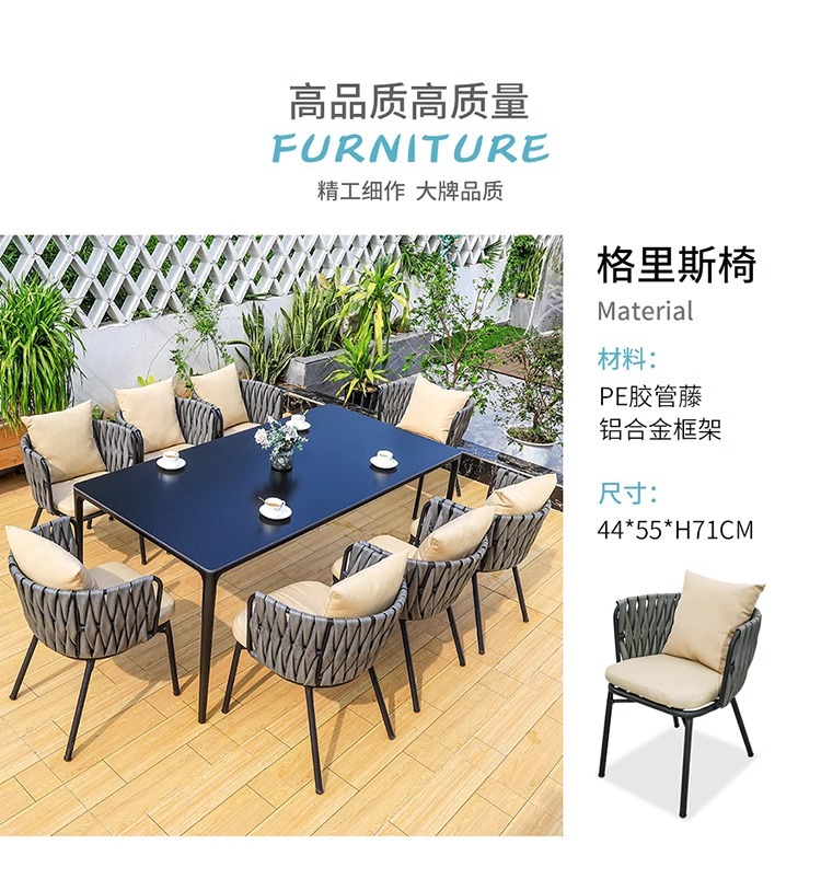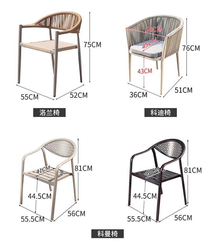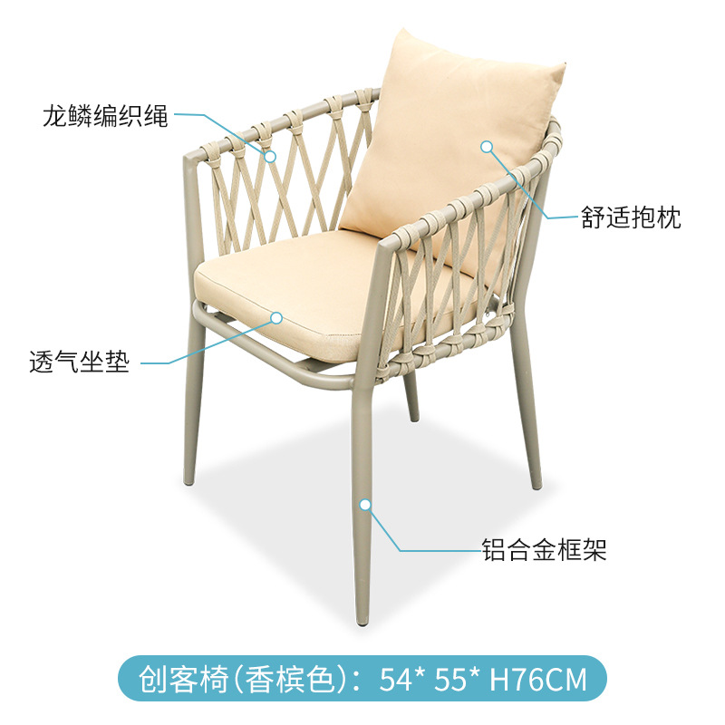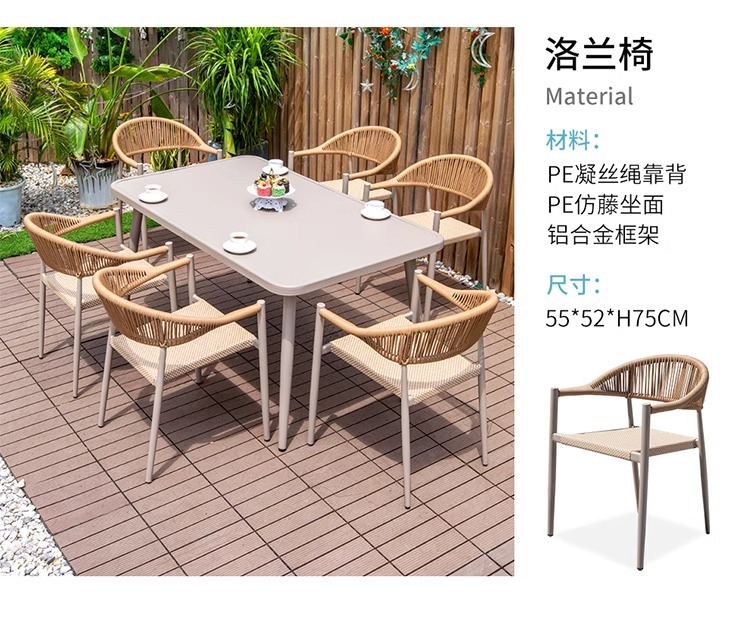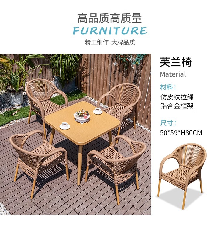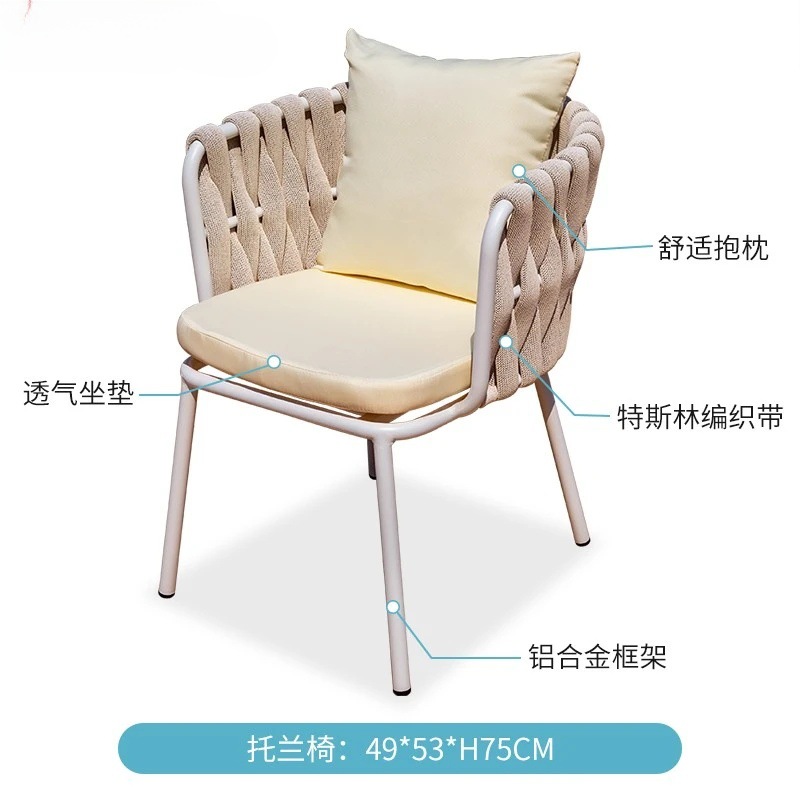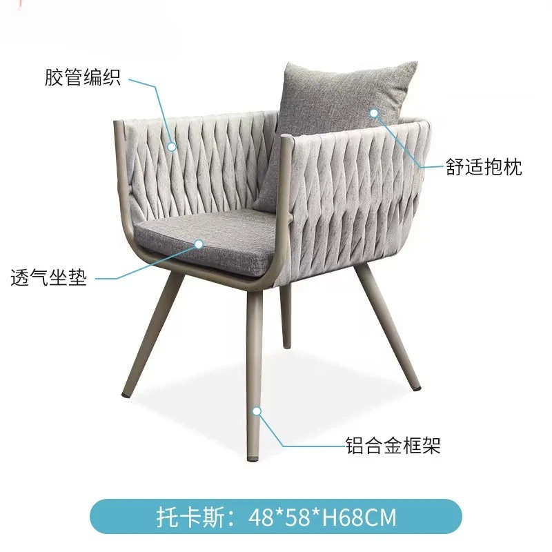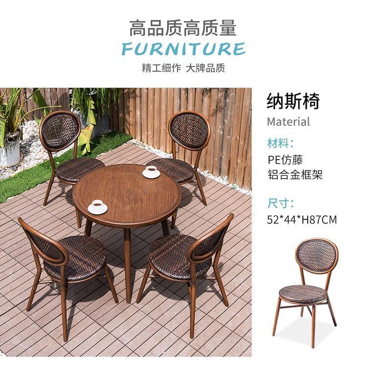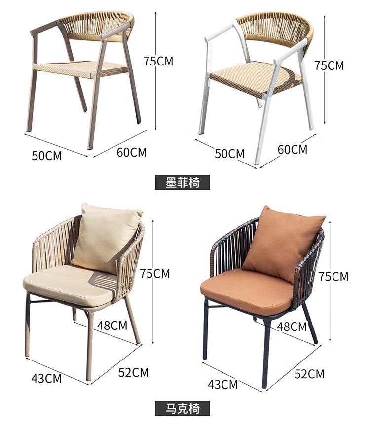 야외 북유럽 레저 등나무 의자 안뜰 야외 우유 차 가게 단일 등나무 의자 방수 태양 방지 식사 의자 등받이 의자