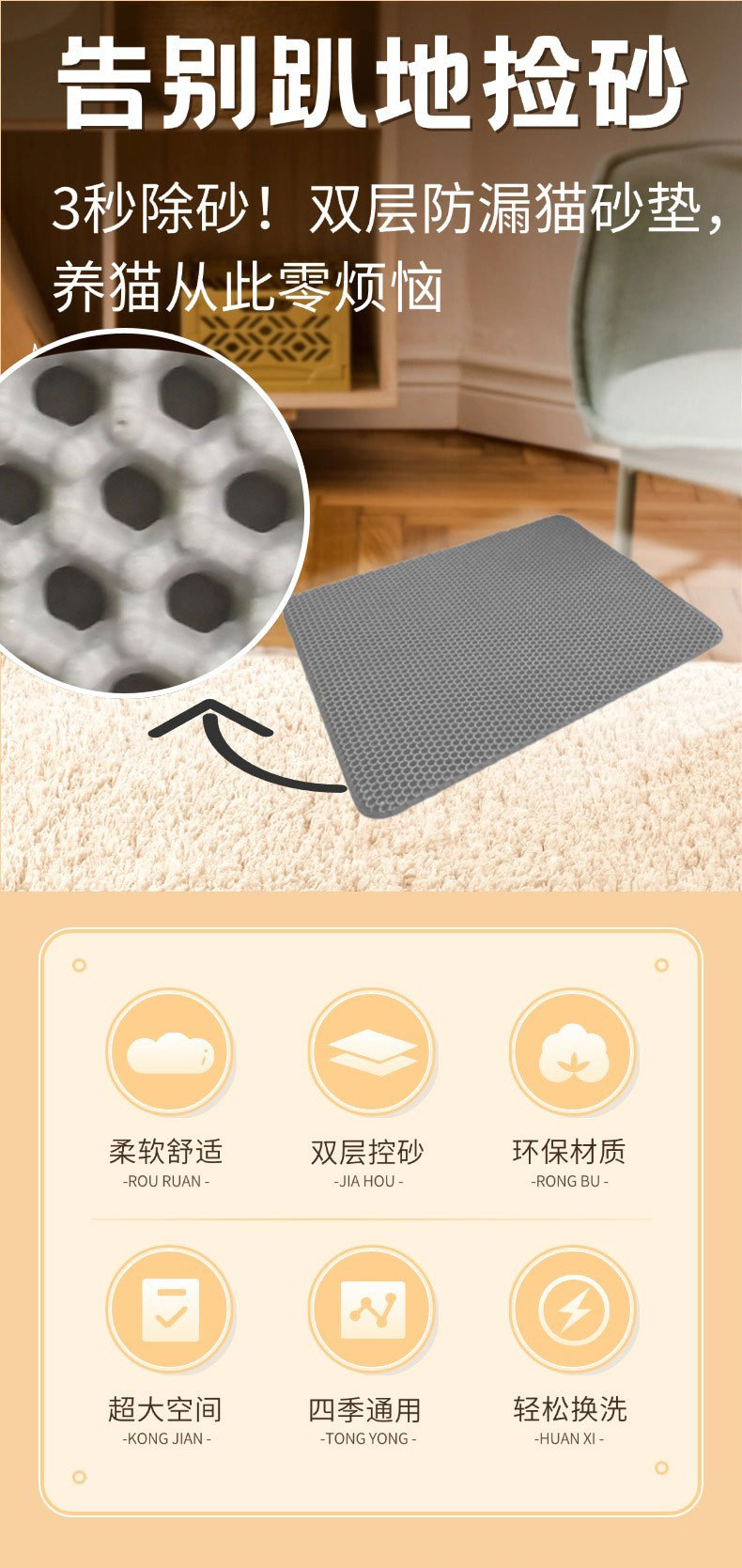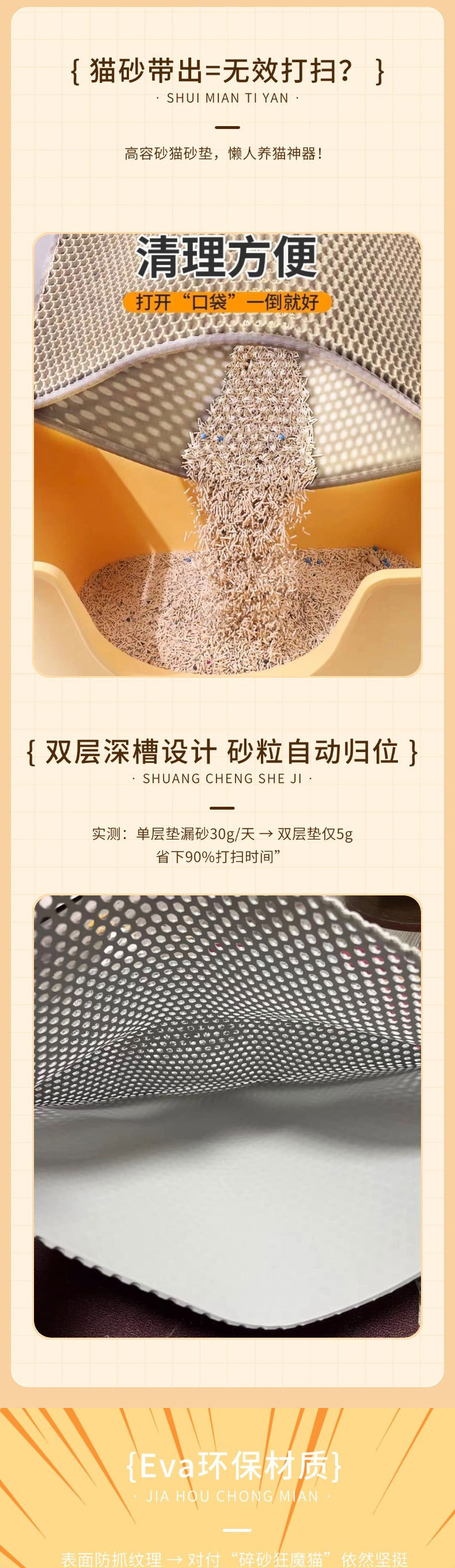 동굴 고양이 쓰레기 매트 반대로 가져 오기 벨크로 모래 조종 매트 고양이 쓰레기 분지 안티 스플래시 매트 고양이 발 매트 안티 스플래시 매트