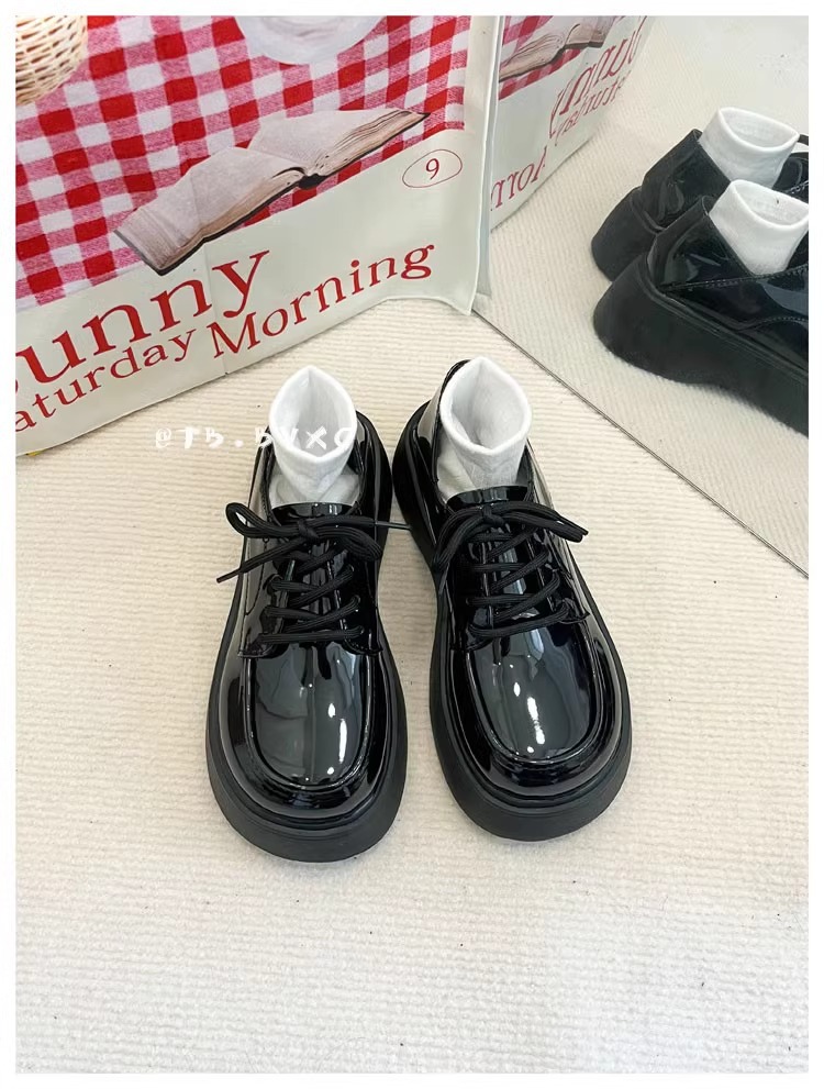 여성을위한 Lunfeng 작은 가죽 신발 2025 봄과 가을 새로운 스타일 플랫폼 두꺼운 밑창 일본식 jk Mary Jane 빅 토 신발