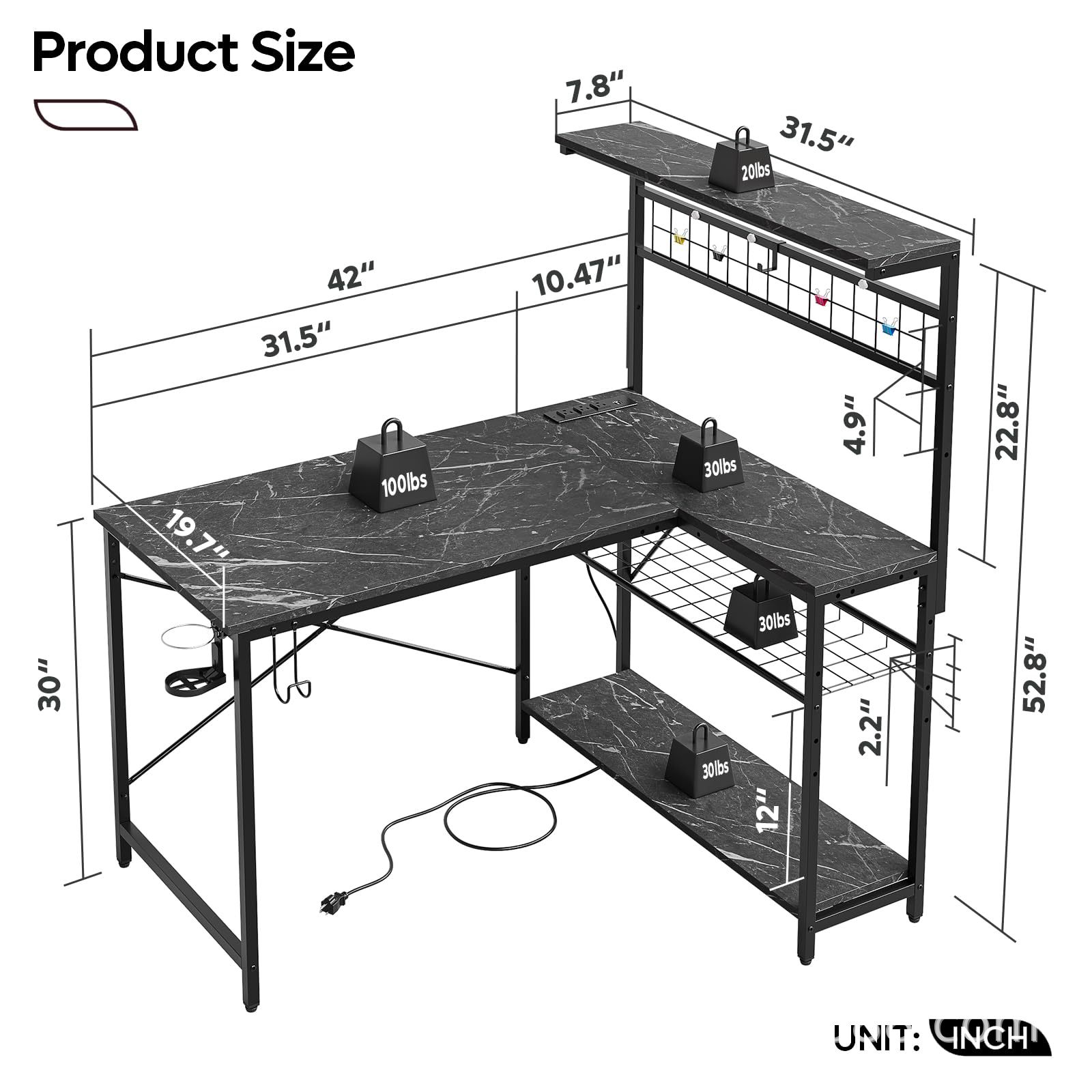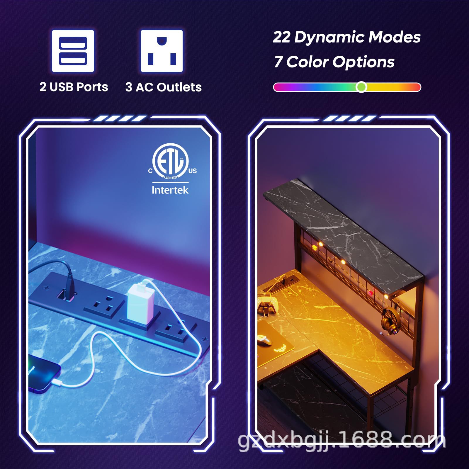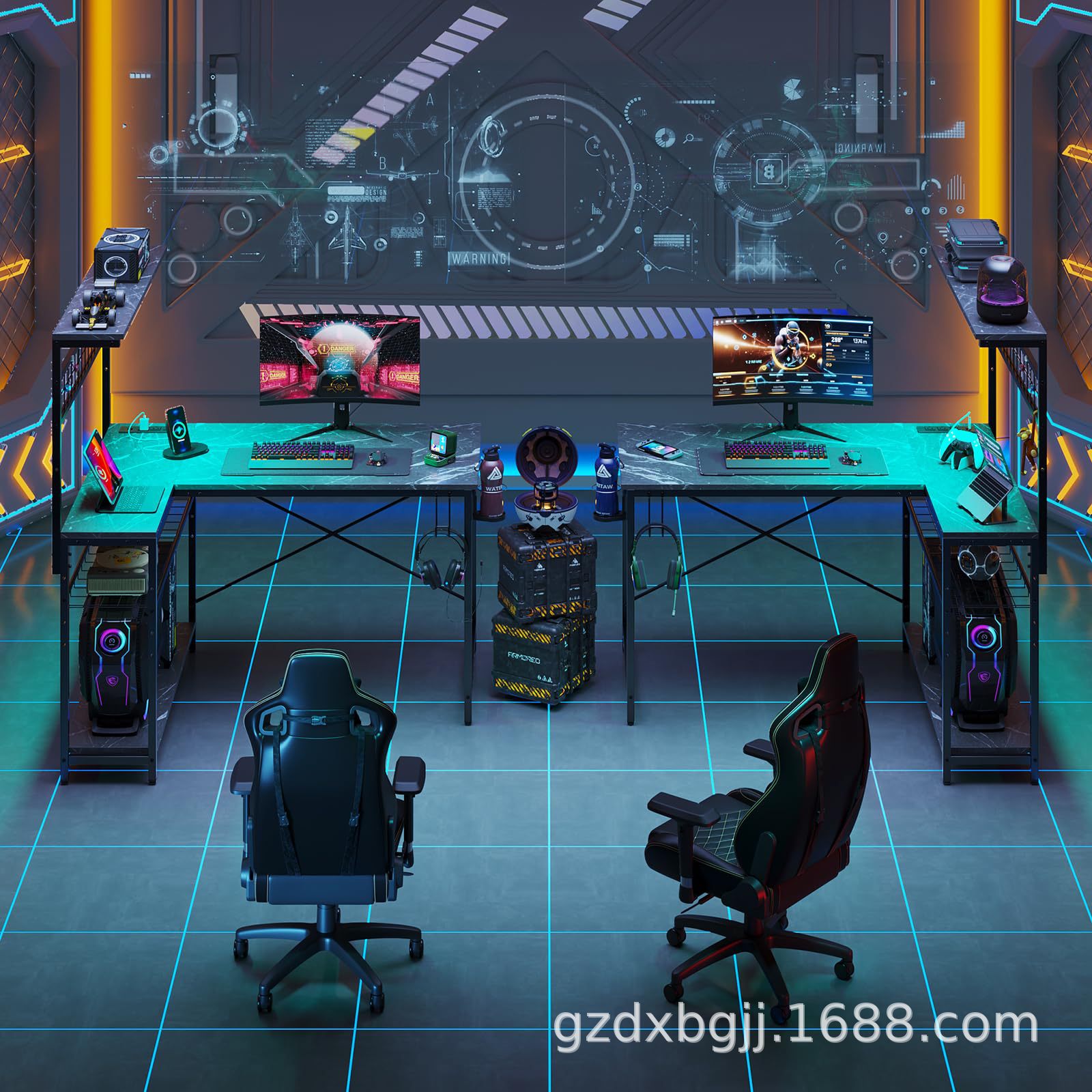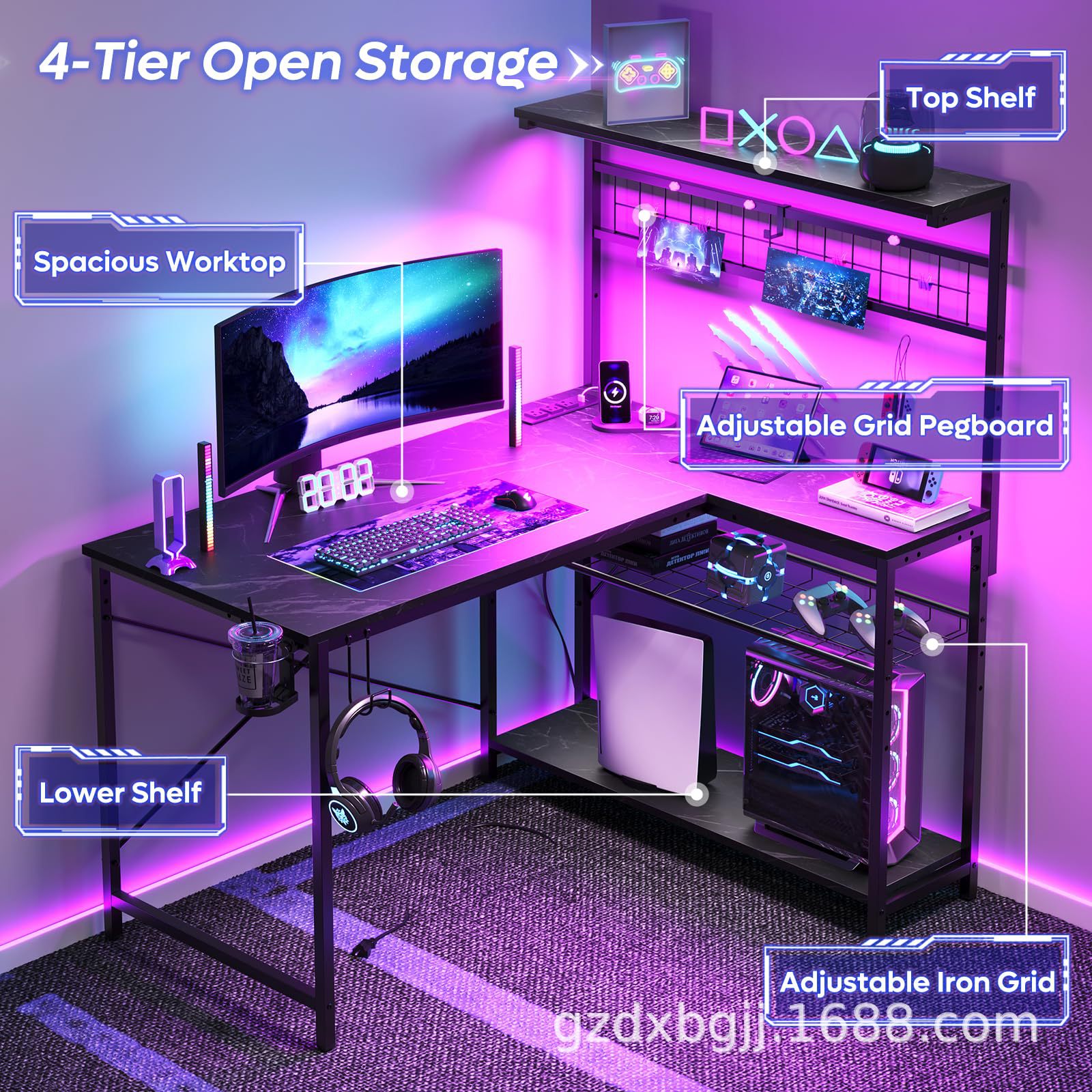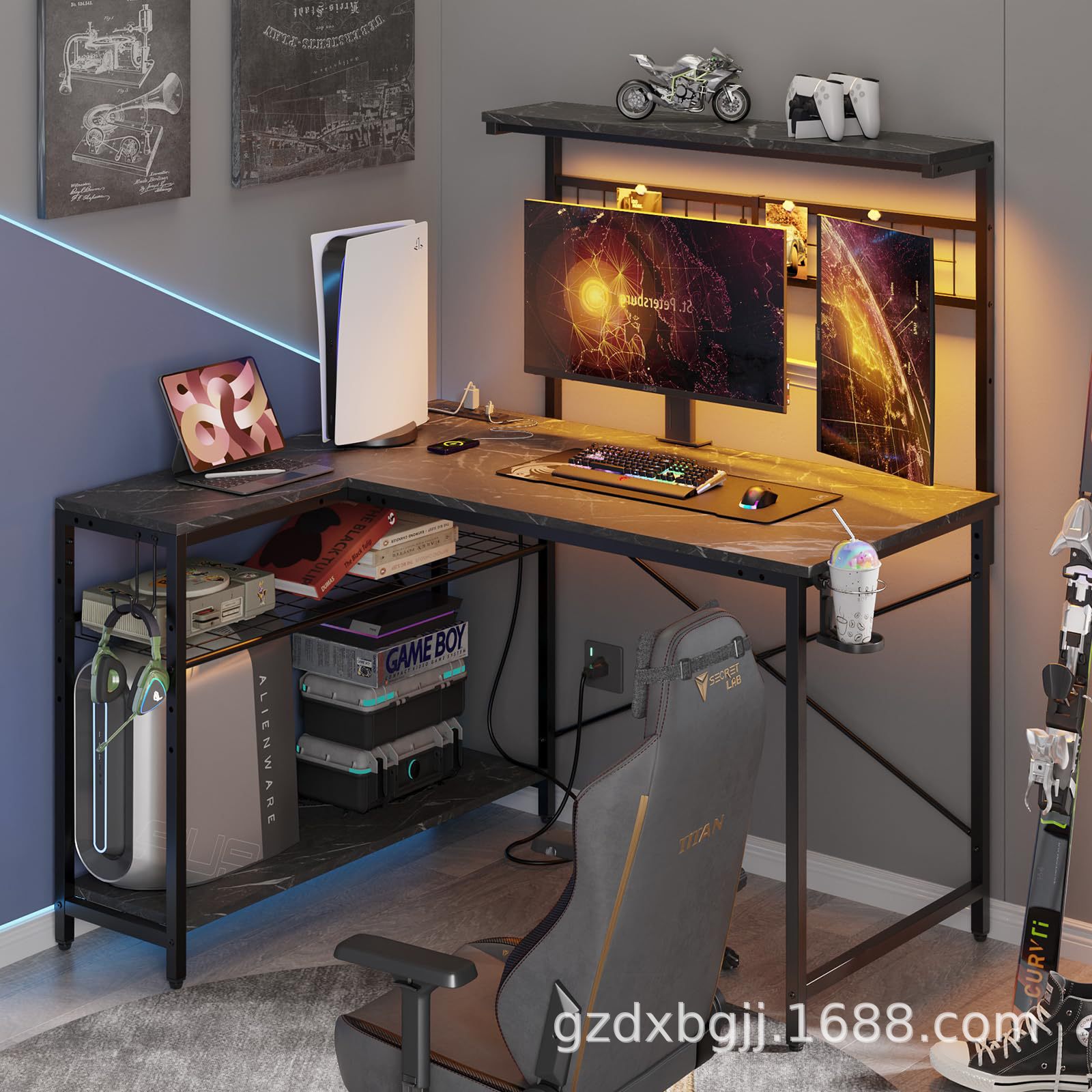 LED 조명이 포함된 업그레이드된 게임용 책상, 디스플레이 스탠드가 포함된 소형 책상, 노트북 책상 전용 국경 간 공급스토어 가기