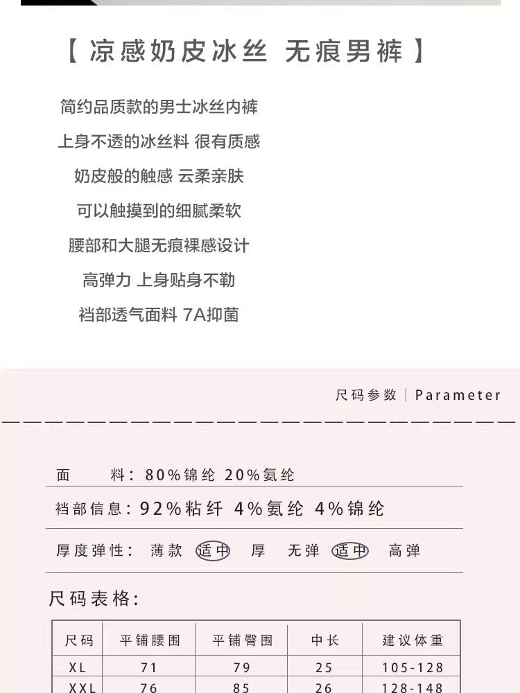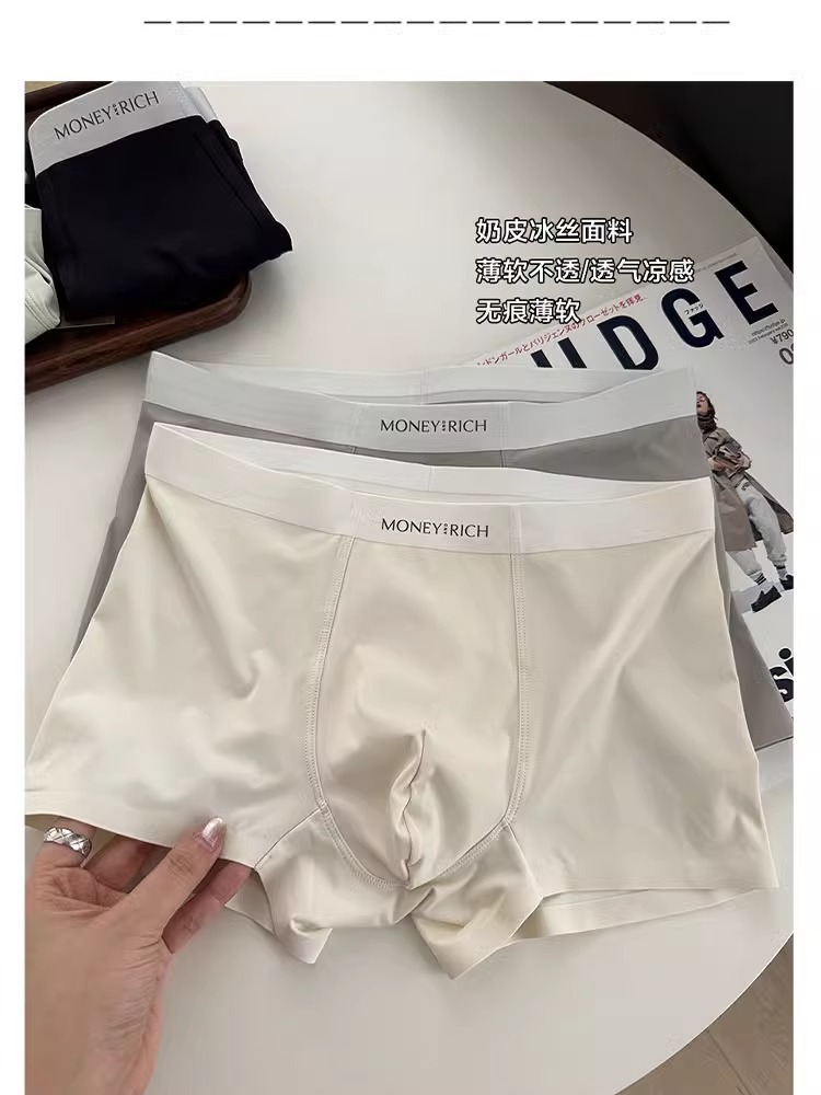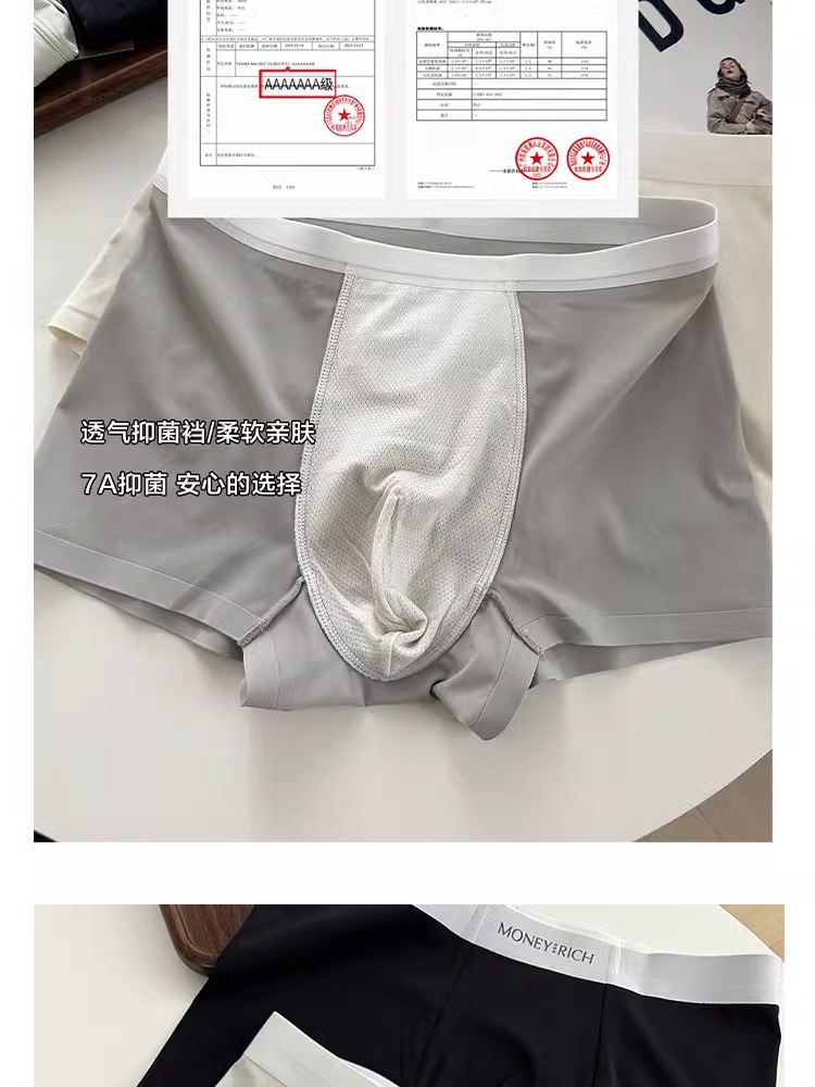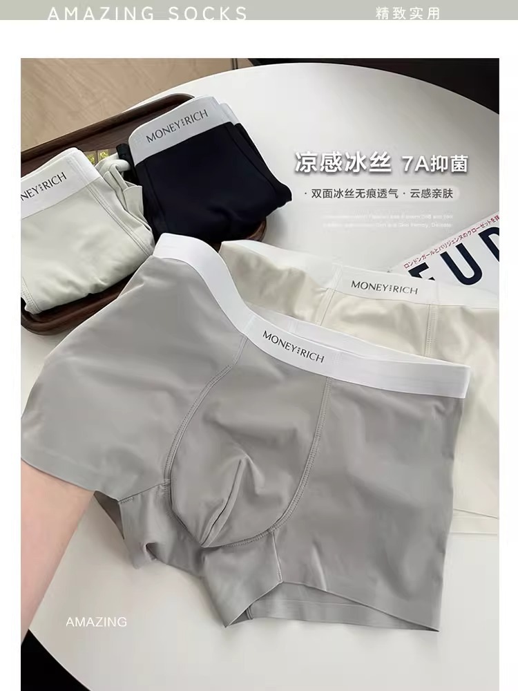 하이 퀄리티 남성 속옷 시원한 느낌 얼음 실크 속옷 7A 항균 가랑이 통기성 우유 가죽 직물 단색 복서