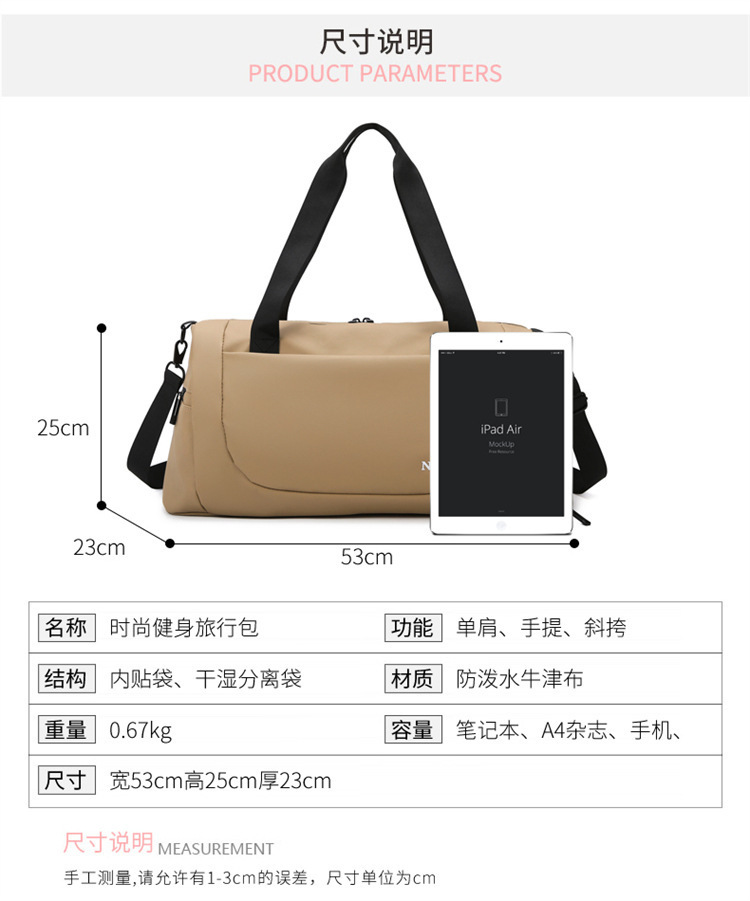 다기능 휴대용 여행 가방, 건식 및 습식 분리, 간단한 운송 피트니스 가방, 대용량, 경량 트롤리 수하물 가방