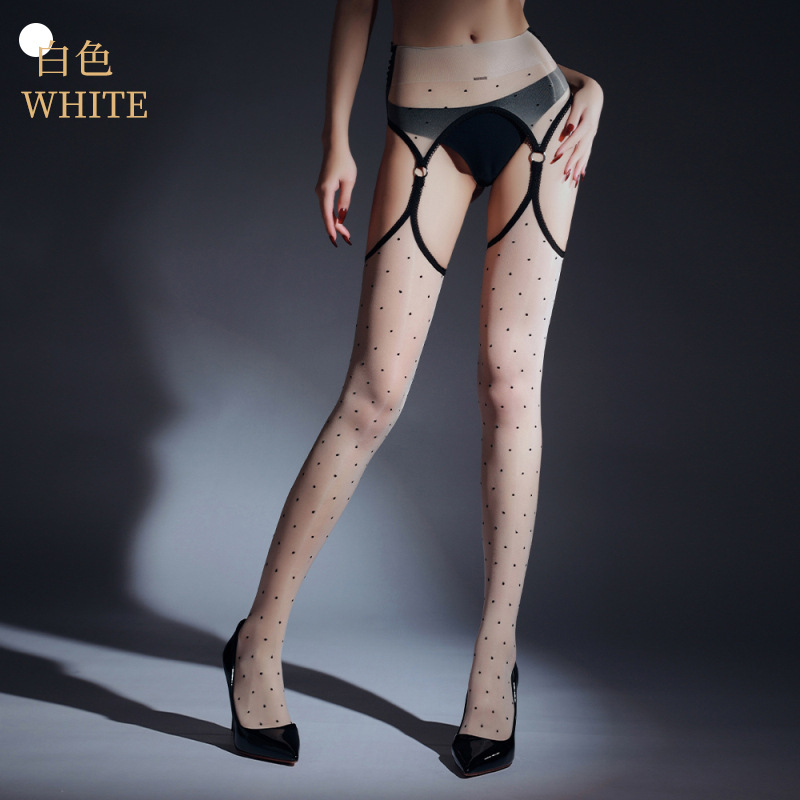 오로라 웨이브 도트 링 서스펜더 올인원 스타킹 유광 여성용 얇은 도트 여름 섹시 유광 블랙 스타킹