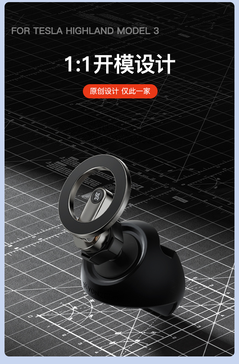 • 새롭게 업그레이드된 3/Y/YL - 무광 블랙 중력 센서 거치대 + 반구형 유성 베이스