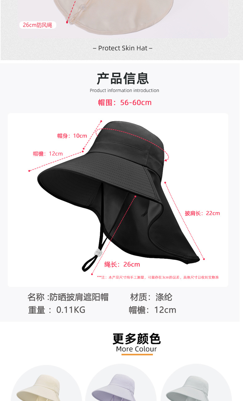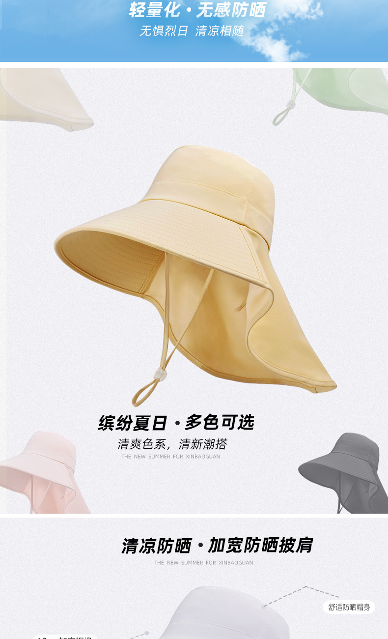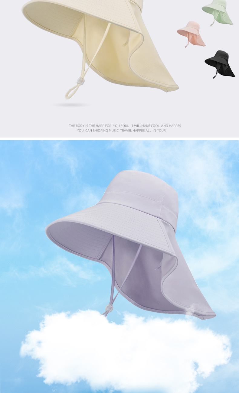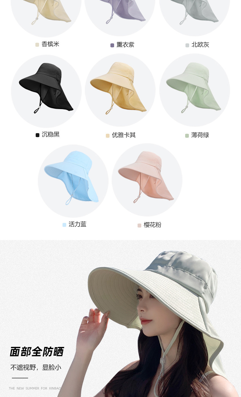 여름 그늘 목도리 썬 스크린 모자 솔리드 컬러 목 보호 큰 브림 야외 패션 태양 모자 얼굴 작은 어부 모자