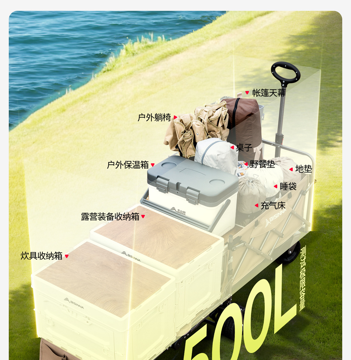 Beishanlang 캠핑카 트롤리 야외 캠핑 접이식 트롤리 피크닉 캠핑 휴대용 트롤리 트롤리