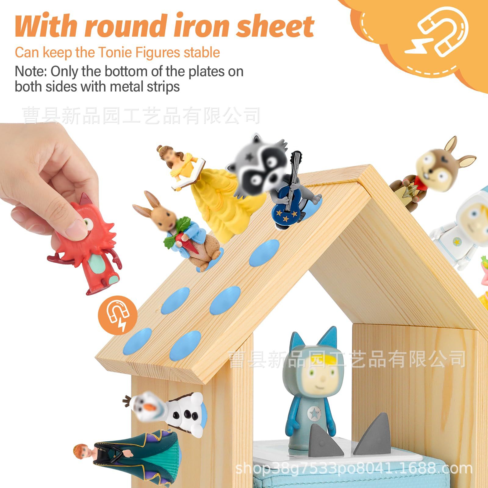 나무 어린이 방 손으로 만든 스토리지 랙 단단한 나무 집 모양 오디오 장난감 스탠드 나무 자기 스토리지 랙