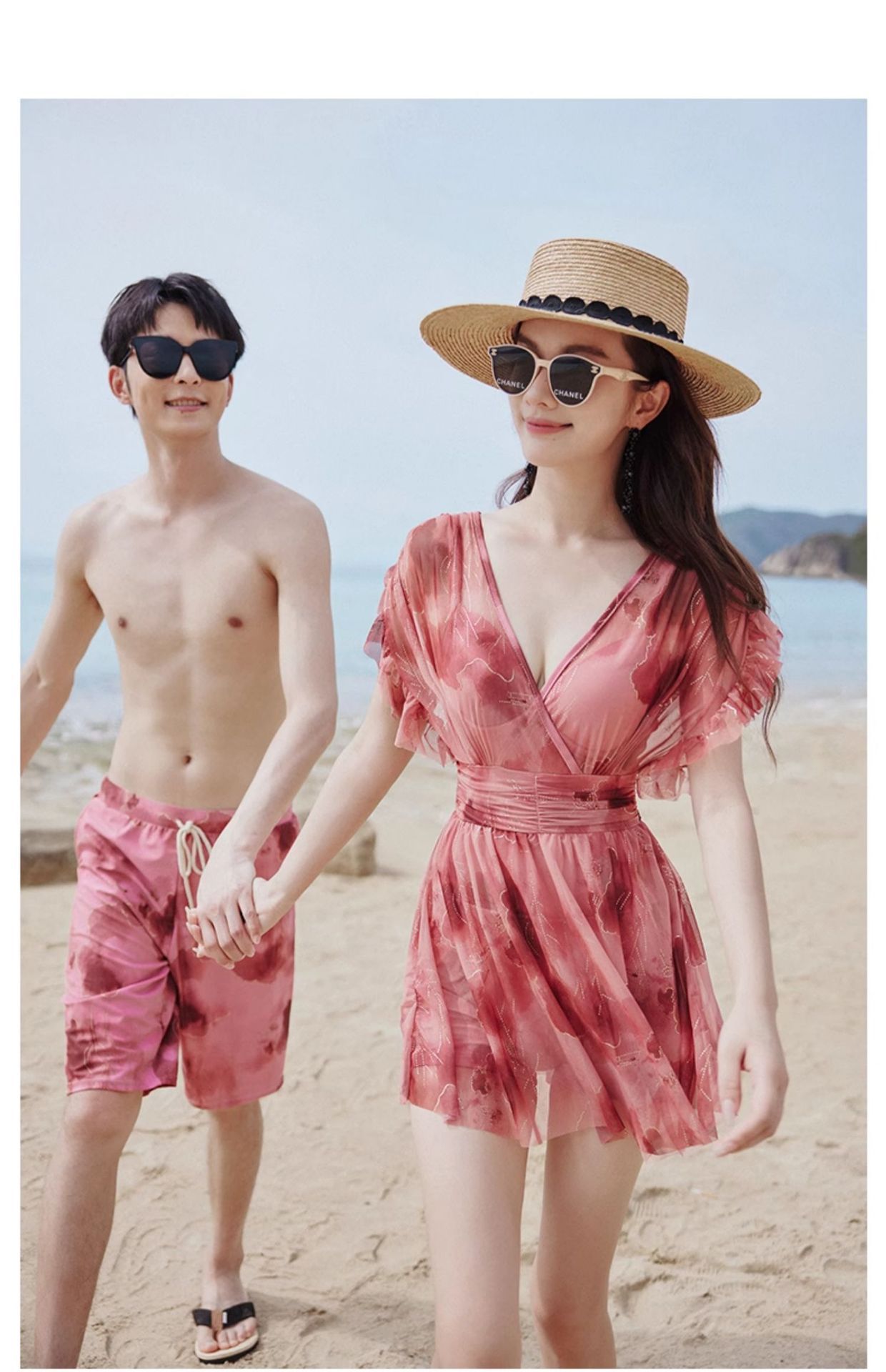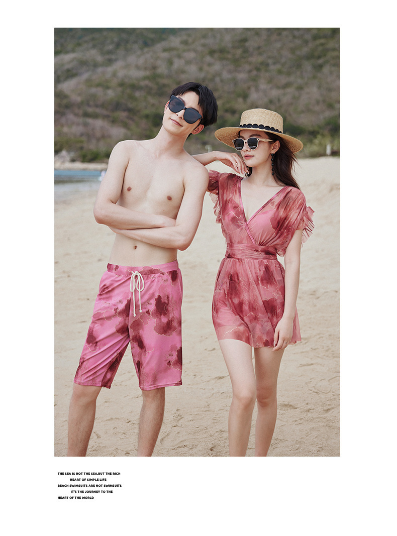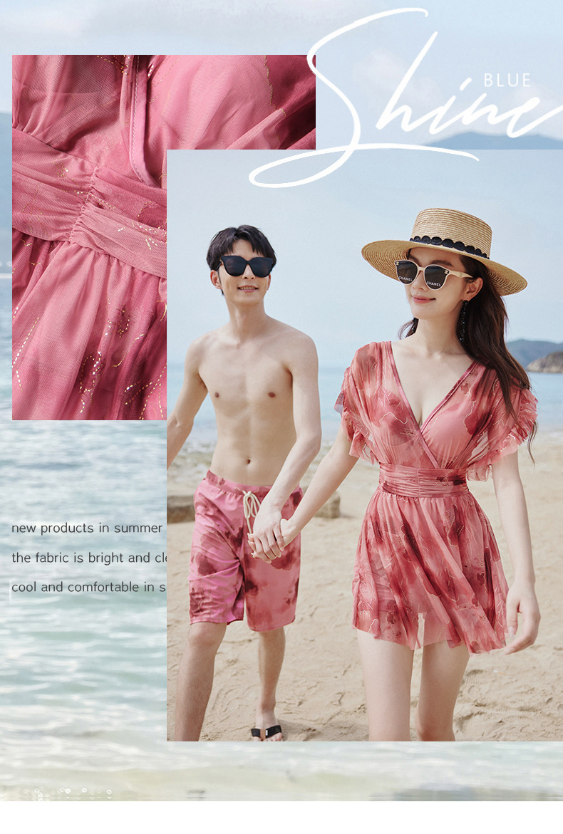 커플을위한 공장 직접 판매 원피스 여성 수영복 2024 새로운 보수적 인 대형 지방 mm 수영복 남성 비치 바지스토어 가기