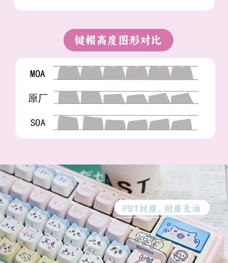 세 마리의 고양이 머리 모양 MAO 키캡, 창의적인 PBT 맞춤형 열승화 공장, 해외 도매 키보드 방수