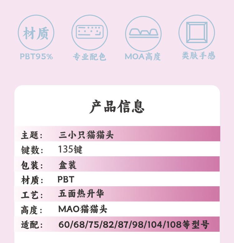 세 마리의 고양이 머리 모양 MAO 키캡, 창의적인 PBT 맞춤형 열승화 공장, 해외 도매 키보드 방수스토어 가기