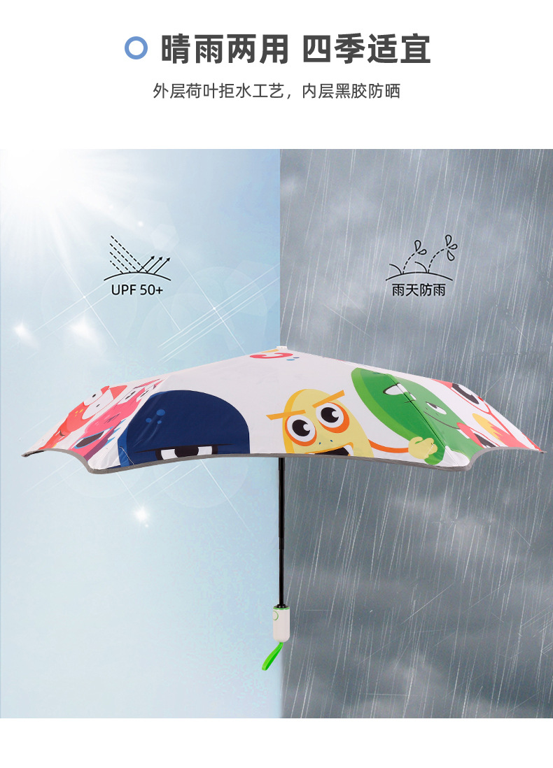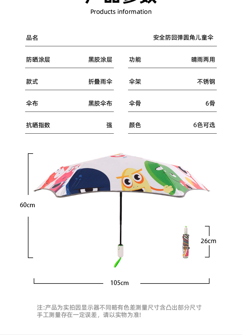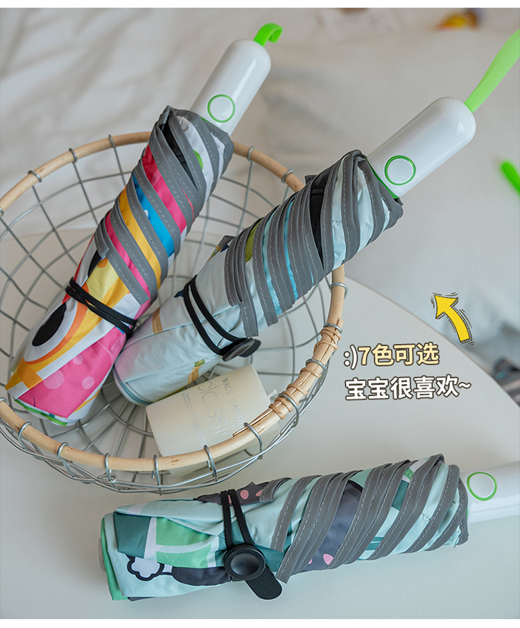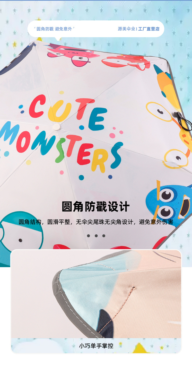 귀여운 패턴이 가득, 반동 방지, 점진적 안전, 둥근 모서리, 야간 반사 스트립 디자인, 학생 및 어린이 우산