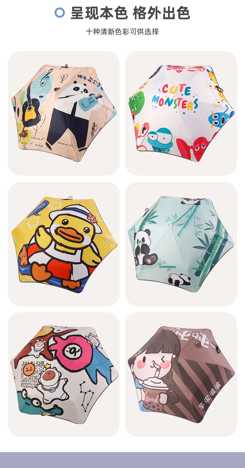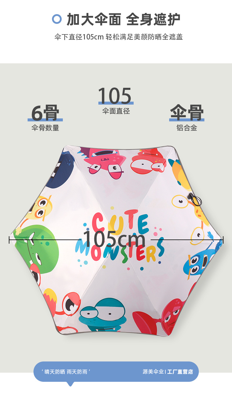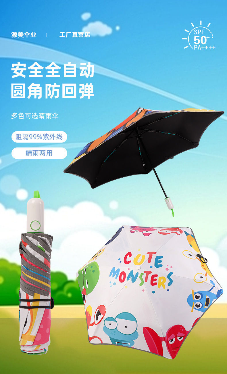 귀여운 패턴이 가득, 반동 방지, 점진적 안전, 둥근 모서리, 야간 반사 스트립 디자인, 학생 및 어린이 우산