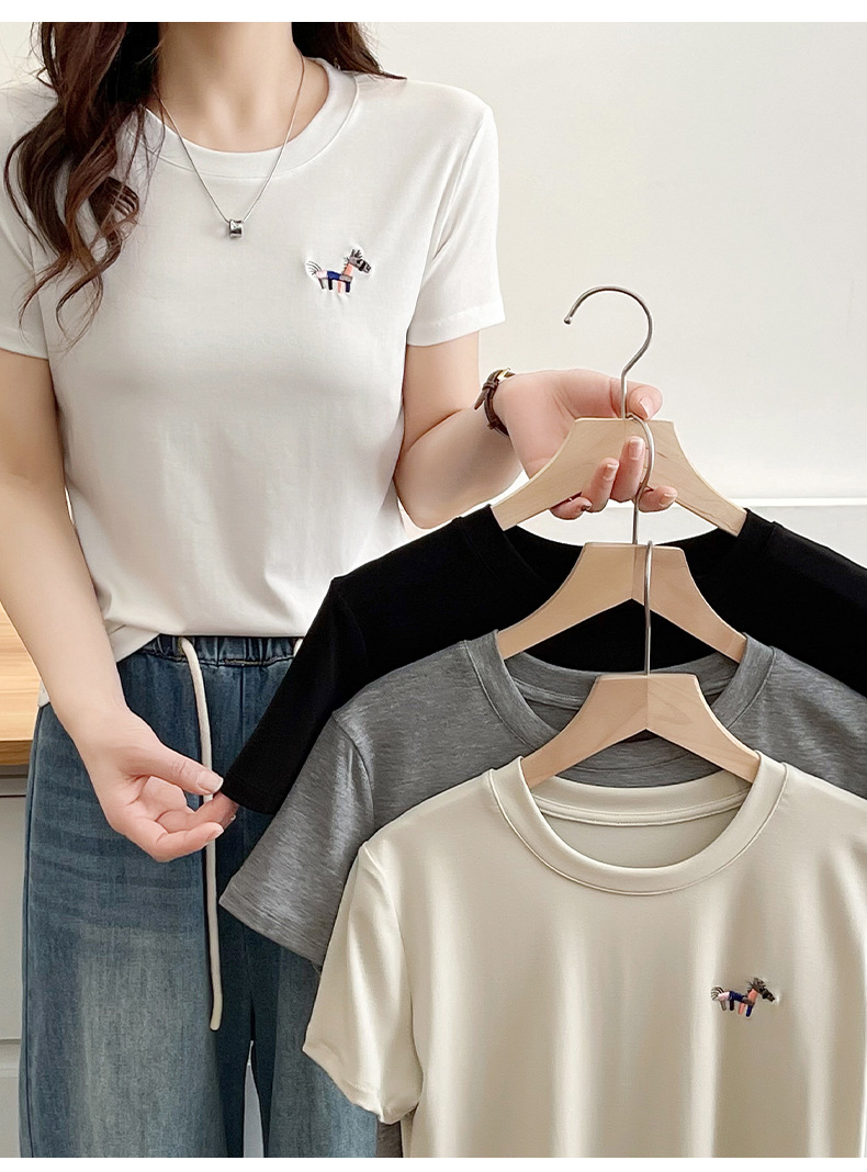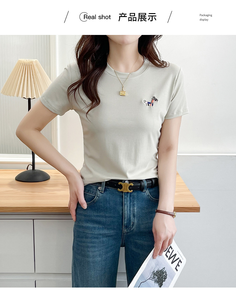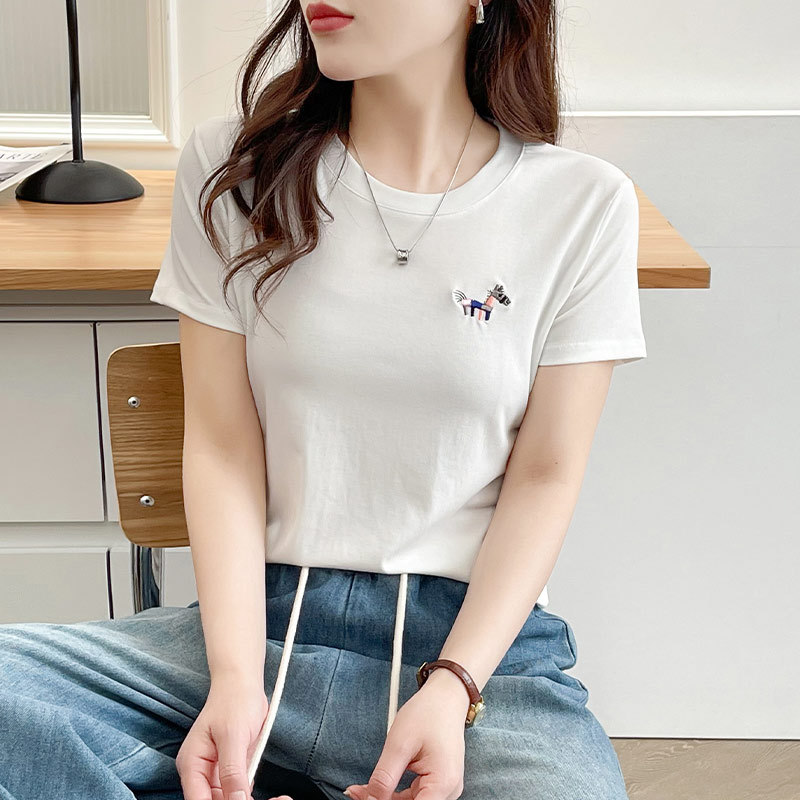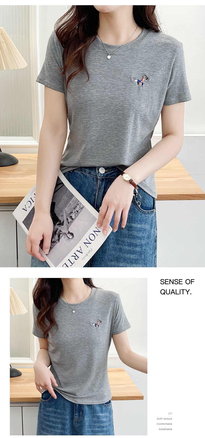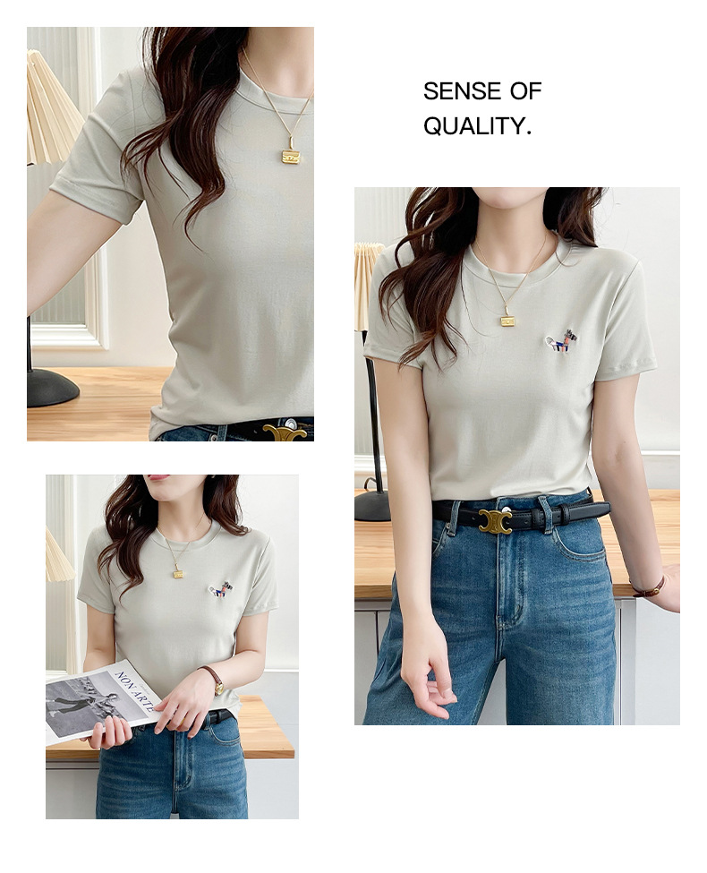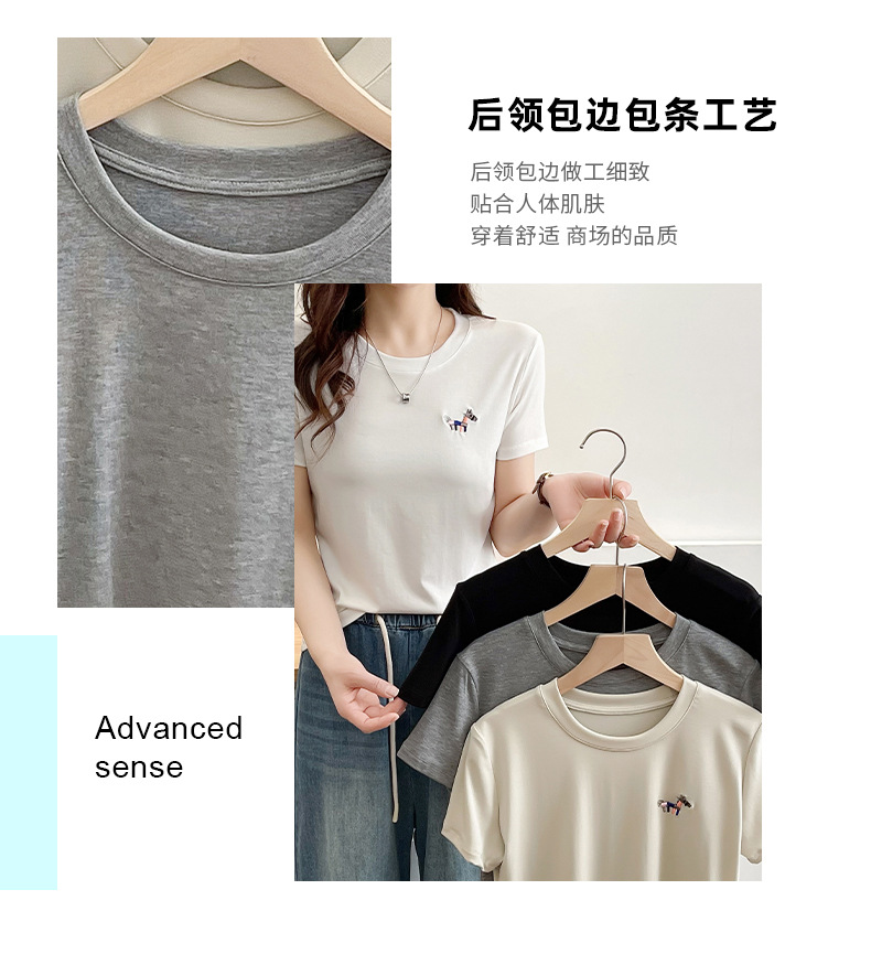 Tencel Lyocell 다목적 탑 반팔 여성 티셔츠 새로운 스타일 오른쪽 어깨 여성 슬림 자수 여성 의류 여름 하이 엔드스토어 가기