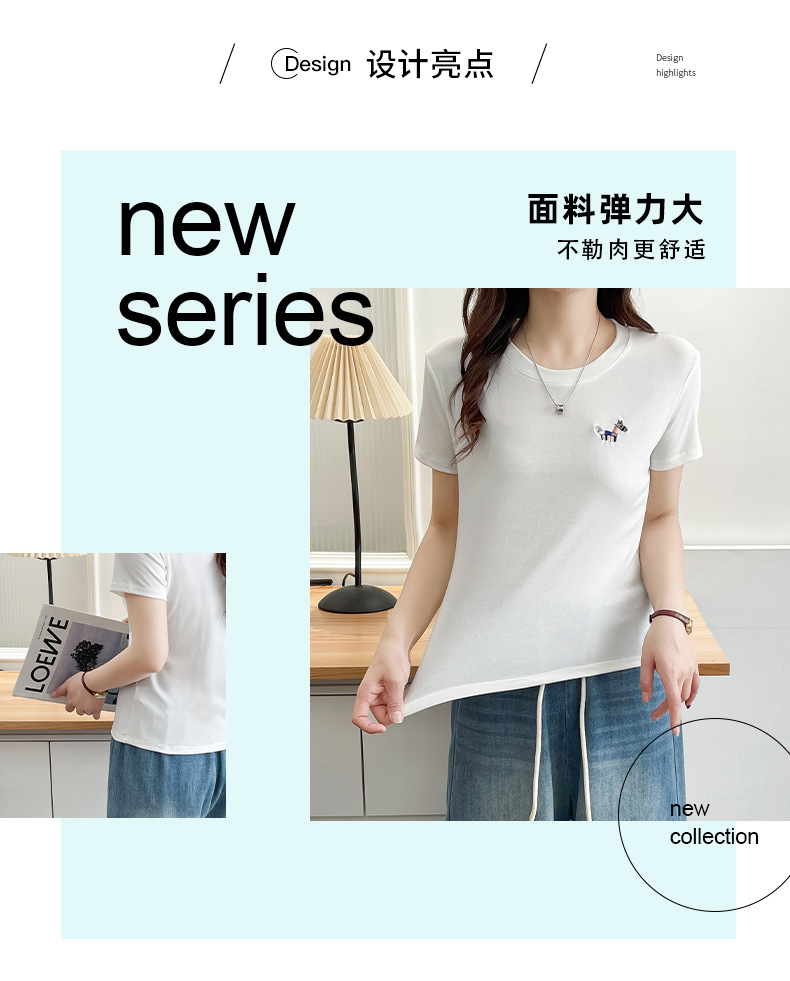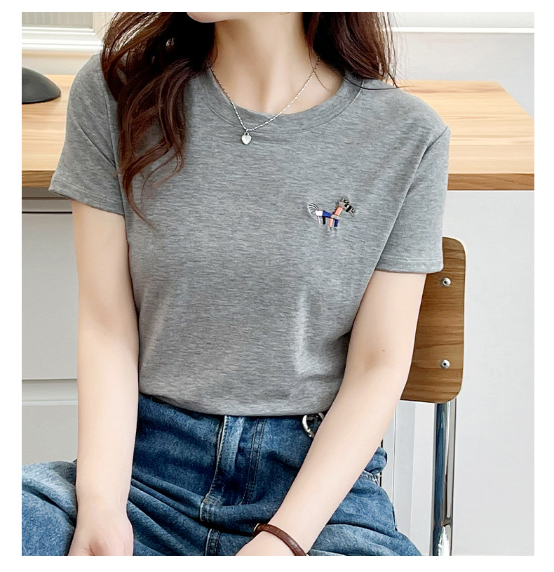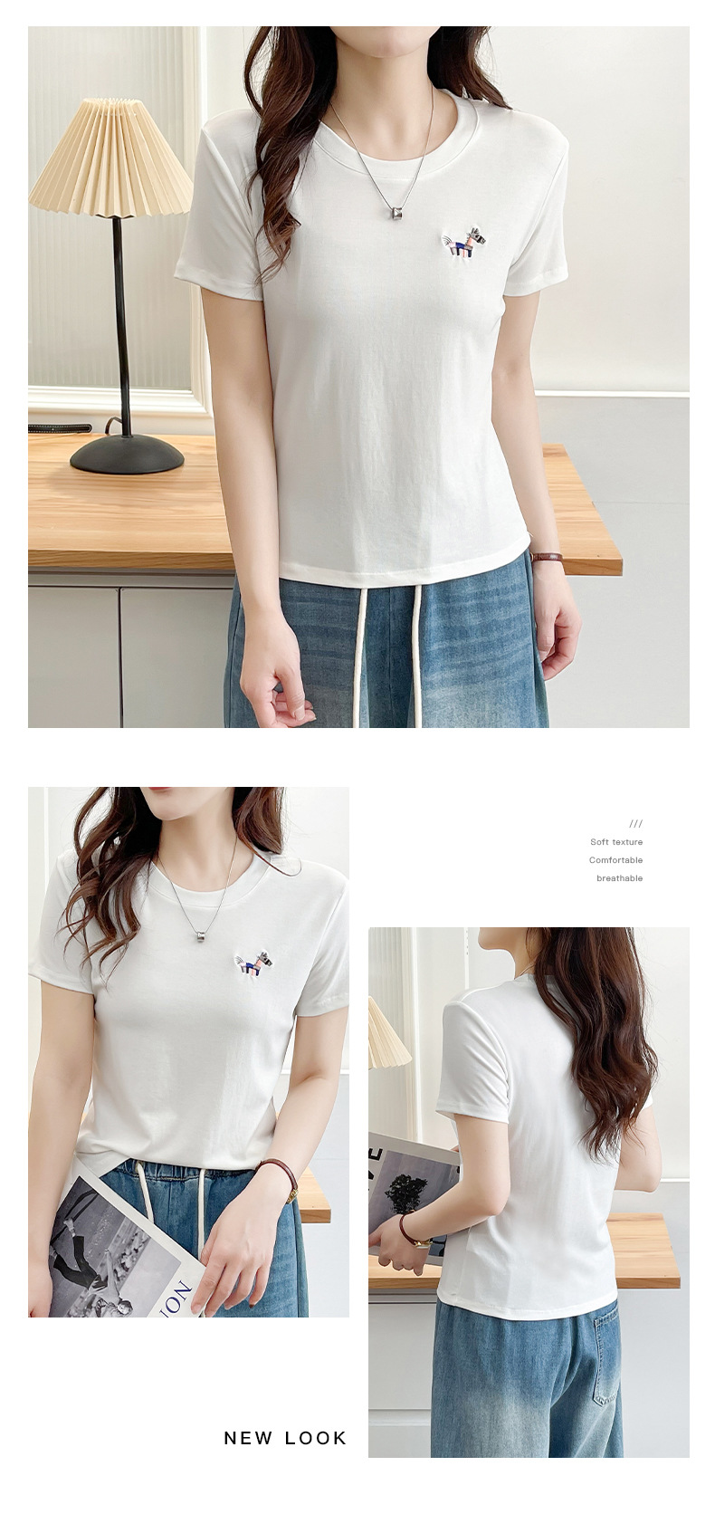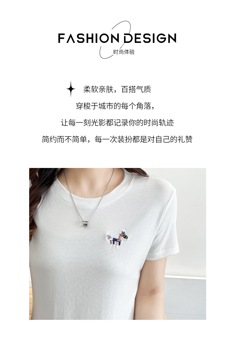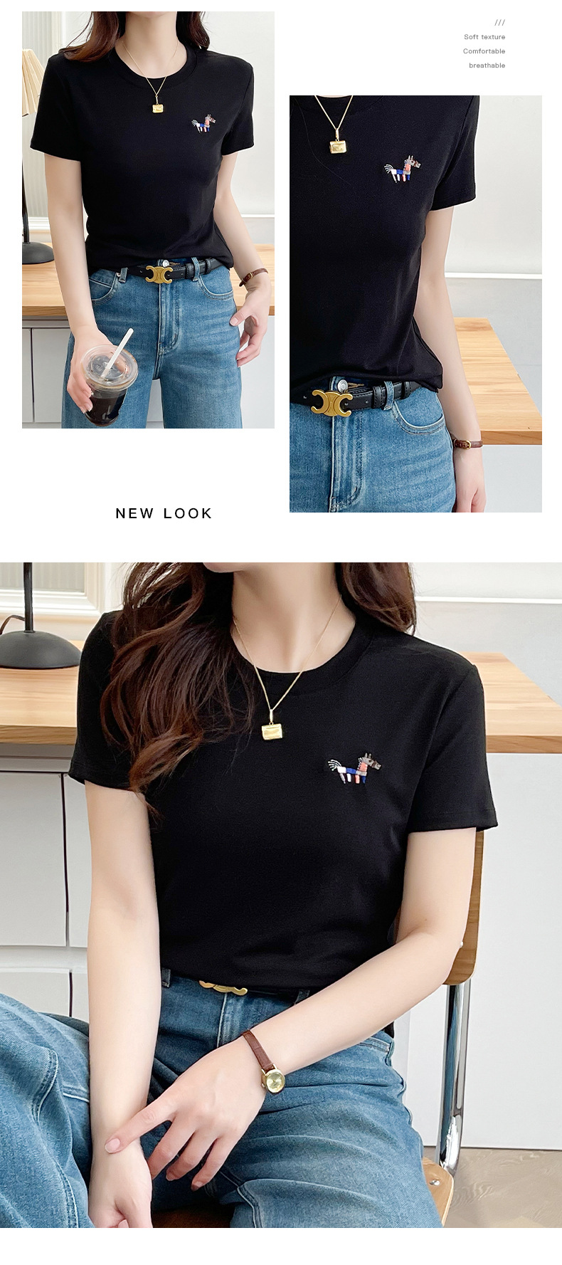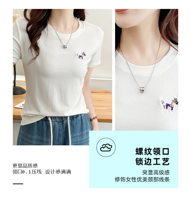 Tencel Lyocell 다목적 탑 반팔 여성 티셔츠 새로운 스타일 오른쪽 어깨 여성 슬림 자수 여성 의류 여름 하이 엔드스토어 가기