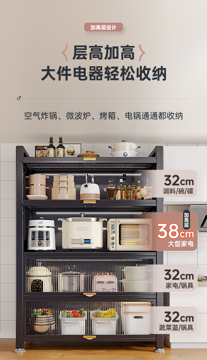 주방 수납장, 다층 수납장, 전자레인지용 가정용 도어형 다기능 캐비닛, 방진 수납장
