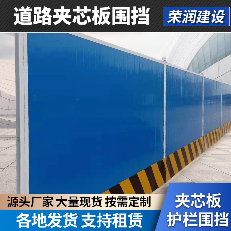 지하철 도로 폼 샌드위치 패널 울타리 건설 현장 건설 안전 파란색 가드레일 강판 샌드위치 패널 울타리스토어 가기