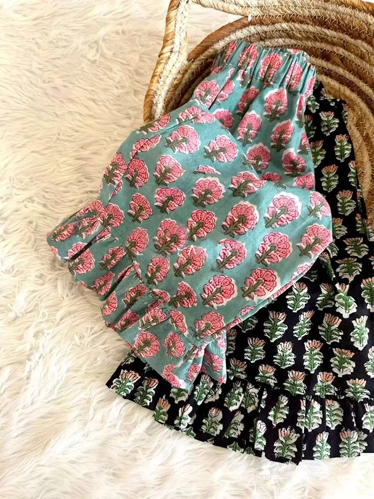 어린이 모기 미끄럼 방지 바지 2025 여름 꽃 전체 인쇄 바지 여성 아기 슬림핏 서양식 캐주얼 아우터 바지