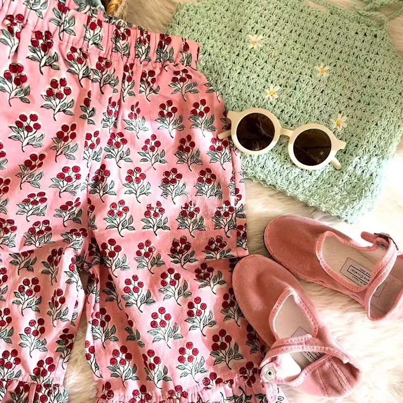 어린이 모기 미끄럼 방지 바지 2025 여름 꽃 전체 인쇄 바지 여성 아기 슬림핏 서양식 캐주얼 아우터 바지스토어 가기